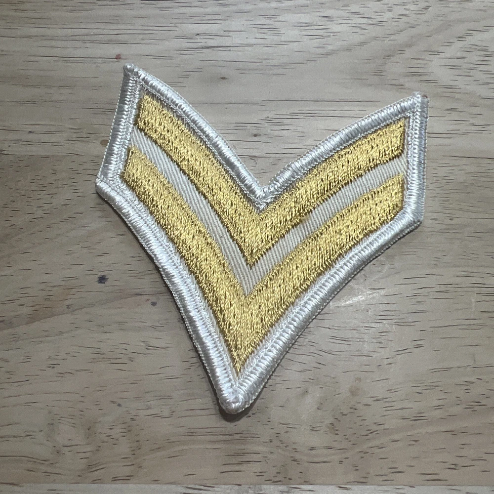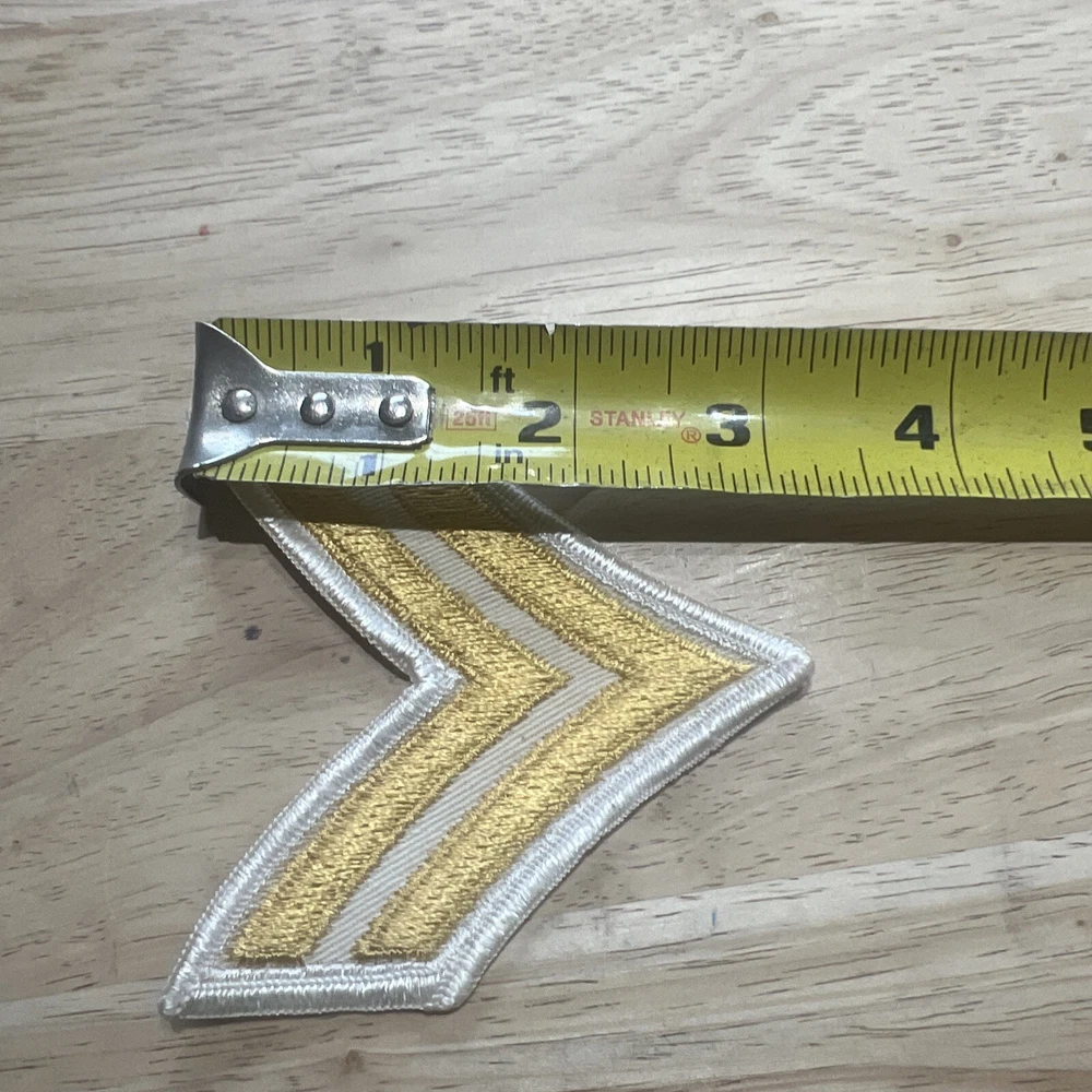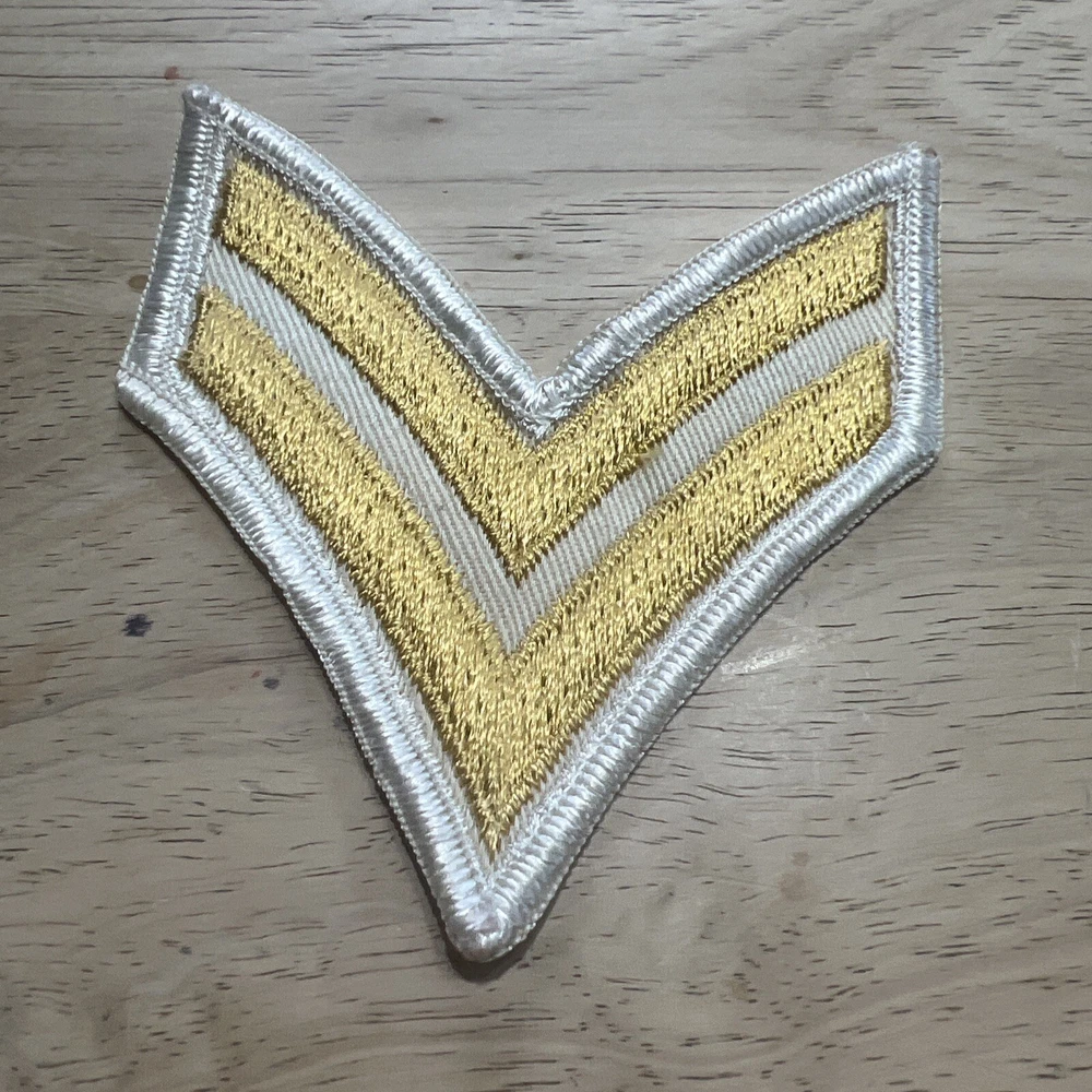 This Corporal Rank Chevron Patch of the US Army Navy is a great addition to your collection. The patch features gold stripes on a white background, making it a unique and eye-catching item. It is perfect for those interested in militaria or those looking to add a touch of history to their collection. The patch is ideal for display on bags, hats, or clothing, and is sure to make a statement. It is a genuine item from the US Army Navy and is perfect for collectors looking for a unique and authentic piece. Add this Corporal Rank Chevron Patch to your collection today! Lot 4219