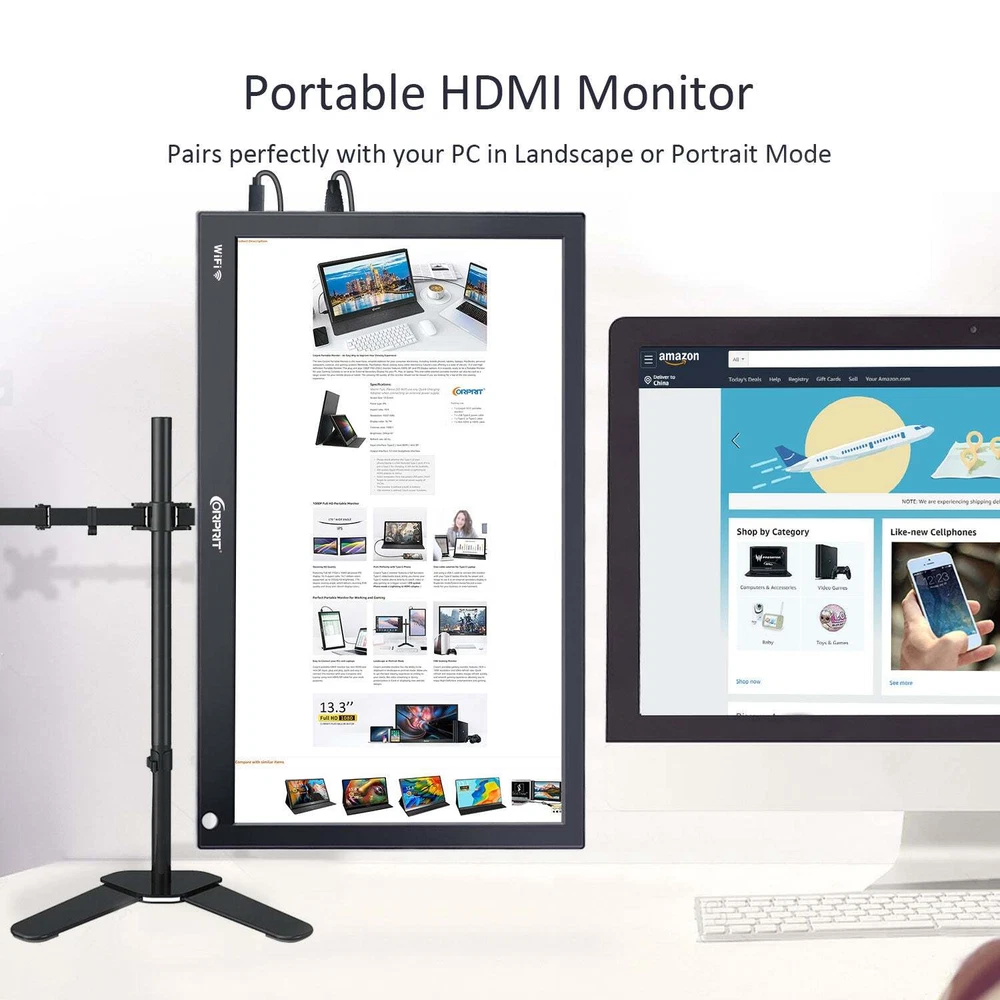 You may also like TOGUARD Dual Dash Cam 1080P+1080P Front and Inside Car Driving Camera 64GB Card 52.69 USD Free shipping TOGUARD 4K Dual Dash Cam UHD 2160P+1080P Front Rear Car DVR Camera night vision 67.59 USD Free shipping TOGUARD 12" Mirror Dash Cam 4K GPS Backup Camera Front and Rearview DVR Recorder 78.99 USD 89.29 USD Free shipping 12% off TOGUARD 3 Channel 4K GPS Dash Cam Car Recorder Camera Night Vision G-Sensor 59.59 USD 69.41 USD Free shipping 14% off 9"2.5K Dash Cam Car Stereo Radio Wireless Apple Carplay&Android Auto+Rear Camera 89.21 USD Free shipping TOGUARD Front and Inside Dual Dash Came FHD 1080P+1080P Car Camera Night Vision 52.99 USD Free shipping Corprit Portable Monitor 15.6 Inch FHD 1080P Laptop Monitor USB C Mini HDMI Gaming Computer Screen Ultra-Slim IPS Display External Monitor for Laptop PC Phone Mac Xbox PS5/PS4 Switch Black USA Warehouse! Fast delivery, fast received! Key Word: 【1080P FHD Monitor】 This portable computer monitor features a 1920 x 1080 resolution,16.7 million colors, 60Hz refresh rate, advanced eye protection IPS display, and 178° viewing angle. It delivers sharp and vibrant display colors, allowing you to enjoy High-Definition entertainment and a smooth gaming experience. 【Durable and Portable Design Monitor】 This travel monitor is a 15-inch screen and weighs about 4 lbs. This slim and lightweight design is easy to throw in your bag and go. It's very suitable for indoor entertainment or outdoor work. 【Versatile Digital Connectivity】 Mini HDMI & dual USB Type-C ports design makes this portable gaming monitor more convenient to connect your laptop, smartphone, PC, PS3, PS4, XBOX ONE, Switch, etc. It's ideal for extending your screen or playing games on a business trip, traveling, or for home entertainment. 【Smart Cover as a Stand】 This laptop screen extender comes with a durable PU leather cover, which can fold into different positions flexibly to create a stand for the monitor. 【Lightweight but Powerful】 This external monitor for a laptop can work in both landscape and portrait mode and can be used as a pc monitor, or screen extender for a laptop or phone. It has a uniquely designed Premium Black metal appearance, 2 built-in speakers to play audio, and supports HDR mode. What's in the Box? 1 x USB-C Portable Display 1 x Mini HDMI to HDMI cable 1 x USB-C to USB-C cable 1 x USB-C to USB-A cable (Power Supply) 1 x Smart Cover 1 x User Guide Specifications: Screen: 15.6" IPS Resolution: 1920*1080 Aspect ratio: 16:9 Brightness: 300cd/m² Color Gamut: 100% sRGB Contrast ratio: 1000:1 Interface: 2*USB-C, 1*Mini HDMI, 1*3.5mm Jack Full HD 1080P IPS Display Corprit upgraded portable monitor is featured with a 15.6-inch Full HD (1920 x 1080) advanced IPS display, 100% color gamut, up to 300cd/m2 brightness, HDR & DCR technology, which delivers stunning FHD quality and sharp and vibrant colors display. 178° Full Vision Angle Corprit monitor provides a 1000:1 contrast ratio, 16: 9 aspect ratio, 178° full Viewing Angle, which makes the picture clearer and sharper, let colors be more saturated and natural. Give you a resulting in a more comfortable viewing experience. The Real Game Partner Corprit portable monitor is a great idea to connect it directly to your phone, Xbox/PS4/Switches, or raspberry pi entertainment center when you're at home or traveling as an extra gaming monitor to improve viewing experience to enjoy watching. Return 1.This item comes with one year replacement warranty. We tested every piece just before shipped it to you 2. You have 14 days to contact us and 10 days to return it from the date it was received. Please contact us to ask RMA number before do return 3. Return must be in the original package. and with ALL original accessories if you return for refund. if you return for replacement. just return defective part to save postage 4. We will refund YOUR FULL WINNING BID AMOUNT. upon receipt of the item in its original condition and packaging with all components and accessories included. AFTER BOTH Buyer and Seller cancel the transaction from eBay. OR. you may choose to have a replacement 5. Return shipping is to be paid by the Buyer. We will pay the mailing cost of the replacement to buyer Shipping Fast shipping by USA LOCAL FAST SHIPPING , Mostly, all of the products will be shipped out within 1 working day after we received the payment and your contact phone number, We always ship to your paypal address, so if your shipping address is not matched with it, please note the address you want us to ship in paypal Why Choose the USA Stock ? 1. USA Local Shipping, No Extra Customs Cost to the USA 2. Fast Delivery: 2-7 Working days Delivery 3. Best After-Sales Service!! Feedback Please leave five stars positive feedback positive comment and Five-Stars . Contact us if you have any question, Give us a chance to serve you, negative feedback could not solve anything . Communication Please! 9.26" Touch Screen Car Stereo Radio For Wireless Apple Carplay/Android Auto GPS 59.99 USD Free shipping 2 IN 1 Wireless Carplay Android Auto Adapter, USB Type C Plug & Play Car Dongle 35.99 USD Free shipping 9.26" 4K Front Dash Cam Portable Wireless Apple Carplay Android Auto Car Stereo 105.29 USD Free shipping 2 in 1 Android Auto Wireless Adapter Wireless CarPlay Adapter Plug Play Radio 34.19 USD Free shipping 9"Touch Screen Portable Car Stereo Radio Wireless Apple Carplay/Android Auto GPS 65.36 USD Free shipping 9"Portable Car Stereo Radio Wireless Apple Carplay&Android Auto GPS+Rear Camera 68.99 USD Free shipping 9in Wireless Apple Carplay with 1080P Reverse Camera GPS Touch Screen Car Stereo 69.29 USD Free shipping Wireless Carplay Adapter USB Dongle Plug & Play For Apple Carplay Android Auto 33.59 USD Free shipping Wireless Car Stereo Apple Carplay with 2.5K Dash Cam+1080P Camera GPS Navigation 90.99 USD Free shipping 8" Portable Car Stereo Radio Wireless Apple Carplay/Android Auto Touchscreen GPS 48.99 USD Free shipping 10.26 Inch 