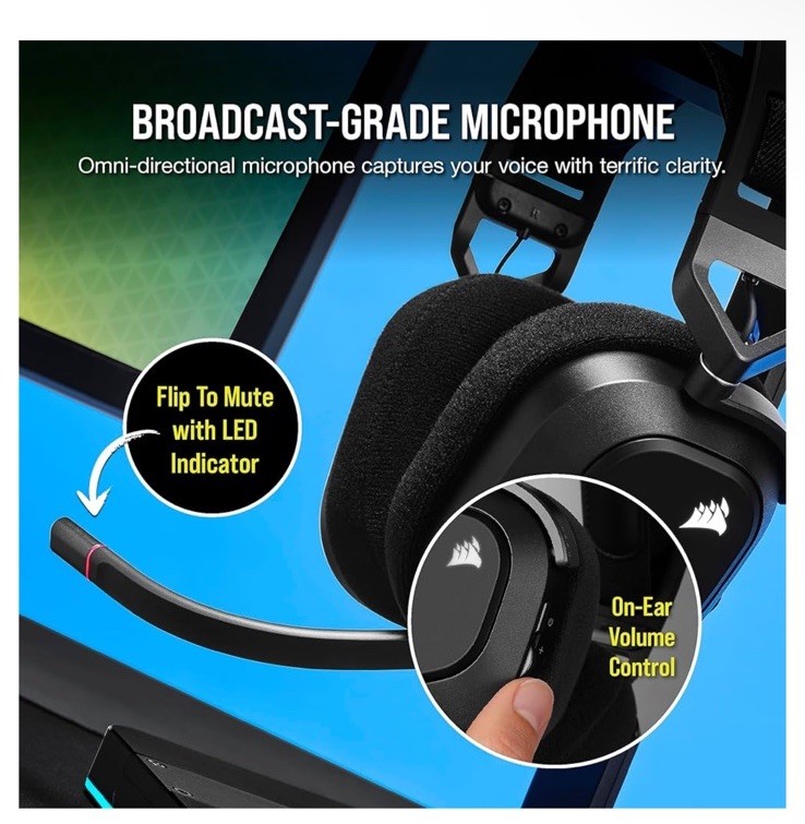 Live the Game: The HS80 RGB WIRELESS merges iconic CORSAIR design, superb audio quality, industry leading wireless technology, and durable build quality. Hyper-Fast SLIPSTREAM WIRELESS: Extremely low-latency, high-quality audio so you can hear every shot, step, and shout as it happens. Immersive Dolby Atmos on PC: Places the sounds of the game all around you with three-dimensional precision, so you can react faster and more accurately. Catch Every Sound: From a faint whisper to a resonating blast, a pair of custom-tuned 50mm high-density neodymium audio drivers deliver sound in exquisite detail with an expanded frequency range of 20Hz-30,000Hz.