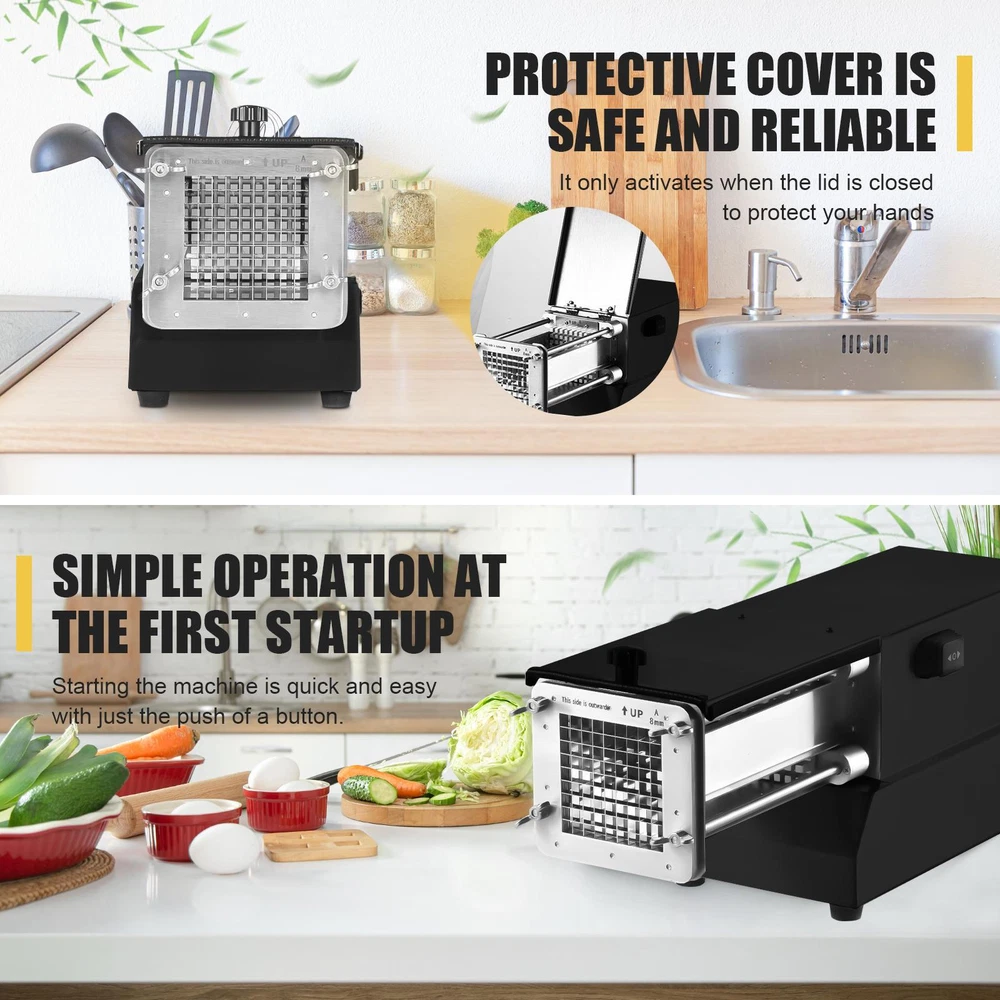 Store category Sign Up Now ! You may also like Product Description Bullet Points: Large Storage Room: With a large capacity, our electric French fry cutter is suitable for both commercial and home use. It helps you quickly cut potatoes into French fry shapes, saving time and effort. Say goodbye to tedious cutting and slicing and hello to perfectly shaped fries. Last for a Long Time: Manufactured with thick stainless steel, this Electric French Fry Cutter boasts good durability against deformation and rust. Its stainless steel shell ensures long-lasting use, making it a good and robust addition to your kitchen. Widely Applicable: Using 4 stainless steel interchangeable cutters, this Electric French Fry Cutter creates versatile 1/2", 1/3", 3/8", or wedge-shaped strips/cubes. Each cutter is replaceable and delivers extended service life, perfect for slicing potatoes and more. Easy to Use: Have crispy fries in no time with our Electric French Fry Cutter. Simply open the lid, load ingredients and press start. Easily push out fries with 1 button. Safe Usage: The electric French Fry Cutter is equipped with a secure lid made of rust-proof stainless steel. The machine is designed not to operate unless the lid is properly in place, ensuring maximum safety. Effortlessly cut a large capacity of thick fries with the Electric French Fry Cutter. The included lid ensures safety while easily pushing out fries to meet your different needs. Specification: Product size: about 6.3x8.1x19 inches/16x20.57x48.26cm Material: Stainless steel Recommended use: Vegetables Product care instructions: Hand wash only Cutter material: Stainless steel Cutter shape: Rectangular Using mode: Automatic Color: black, silver Packing List: 1* Electric Potato Machine 4* Cutters Payment Delivery details Terms of sales About us Feedback & DSRs Payment Before you palce an order, please kindly make sure that you have a paypal account. We accept PAYPAL payment only. Payment should be completed within 2 days after auction closed, or unpaid dispute will be filed for an closing auction. An unpaid case will be filled after 4 days. Delivery details We ship to your eBay address. Each package will be shipped to US by UPS Regular Parcel with tracking number. Please check your shipping address carefully before checkout, it can't be changed if order completed. All items will be shipped within 1-2 business day upon receipt of payment.Orders placed on weekend will be shipped within 3 days. If you do not receive your item in 7-10 business days.please contact us immediately for further assistance. We will be responsible for any damages or losses incurred in the shipping process. About us We maintain high standards of excellence FIVE STAR and strive for 100% customer satisfaction! Positive Feedback is very important to us. We hope that you contact us immediately Before you give us neutral or negative feedback, so that we can satisfactorily address your concerns. We promise to offer the lowest price and high quality produce. Our working time: From Monday to Friday(9:30 am to 18:00pm), we don't working on holidays ,hope you can understand and know that , thank you. Please always talk to us via ebay Message. We appreciate your business and look forward to growing our e-Bay sales with satisfied customers. Feedback Contact us If you have any questions, please feel free to contact with us by ebay Message during our business hours ( 9:30a.m. to 5:30 p.m.), or email us through eBay, we will try our best to help you to resolve it. For any presale or after-sale questions,please do feel free to email us! Due to the time difference, each email will be replied within 1 working day,and weekend will be delayed a bit. Feedback