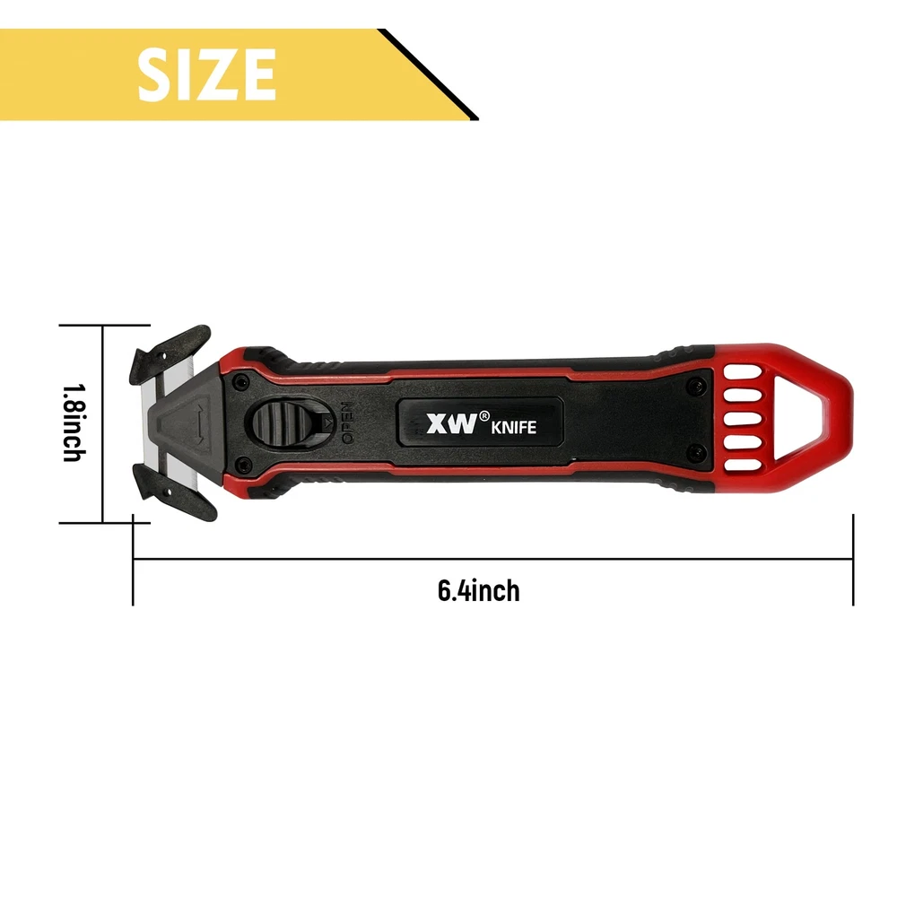 COMFORTABLE: Ergonomic ABS plastic handle with TPR rubber provides a firm and comfortable grip. SAFETY: The design of recessed blade offers safe cutting. It eliminates injuries or product damage during use. QUICK BLADE CHANGE: Pull back the button to release the blade and insert a new one. SHARP & EXTRA BLADES: The special blades are sharp and durable. 5 replacement blades are included for long time use. MULTI-FUNCTIONAL: Great tool for cutting carton, box, cardboard, film, banding strap or shrink-wrap package.