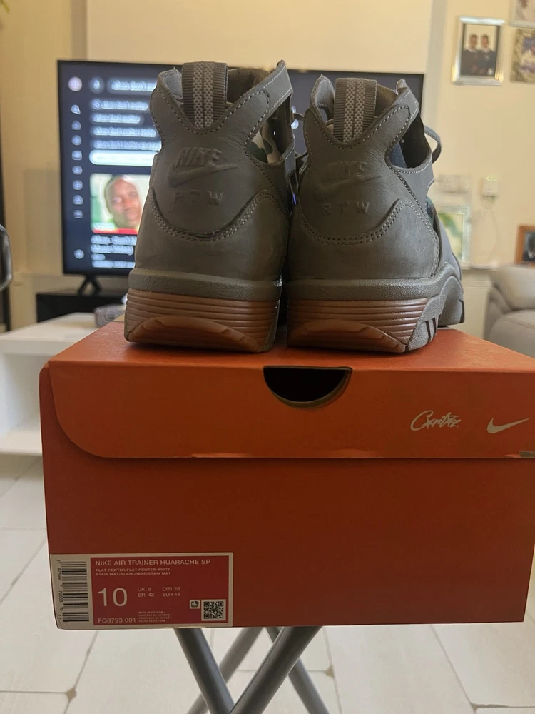 Elevate your sneaker collection with the Corteiz x Nike Air Trainer Huarache 'Gully Grey', a sublime blend of style and comfort. The understated Gully Grey colourway lends a versatile edge to these trainers, seamlessly complementing any outfit. With a UK size 9 fit, they're tailored for the perfect fusion of snug support and relaxed ease. Crafted with the iconic Nike Air cushioning, these trainers promise durability and a lightweight feel throughout the day. The distinct Grey Wolf character adds an artistic touch to the sleek design. Whether for casual wear or athletic pursuits, these sneakers from the renowned Nike Air product line are a steadfast choice for men who value quality and aesthetic.
