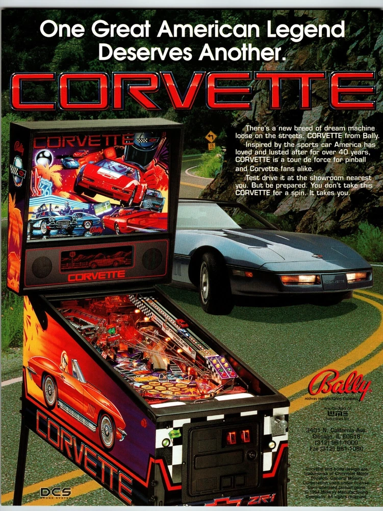 Corvette Pinball Flyer Artwork Sheet Original NOS Bally 1992 Chevrolet Chevy Original paper promo sales flyer. Single page double sided artwork sheet. Flyers are perfect for framing and make great wall art. A flyer is an paper promotional advertising art print sheet made for coin operated amusement arcade games. Also called a circular, brochure, pamphlet, or flier. Size is 8.5" X 11". Plastic protector included with each flyer sold. More pinball, jukebox, slot machine, and vintage arcade game items for sale in our store. SHIPPING Bundle and save by using cart and making single payment. International buyers are responsible for any import fees/taxes. ABOUT US Seller of vintage retro collectibles, pop culture, paper ephemera, new old stock advertising, artwork, original pinball flyers, vinyl records, Mr. Peanut, video arcade flyers, pinball machine parts, game manuals, pinball promo plastics, Mad magazines, antique Halloween and holiday postcards, Christmas items, super hero memorabilia, horror themed art, gifts. MORE RELATED ITEMS IN OUR STORE.