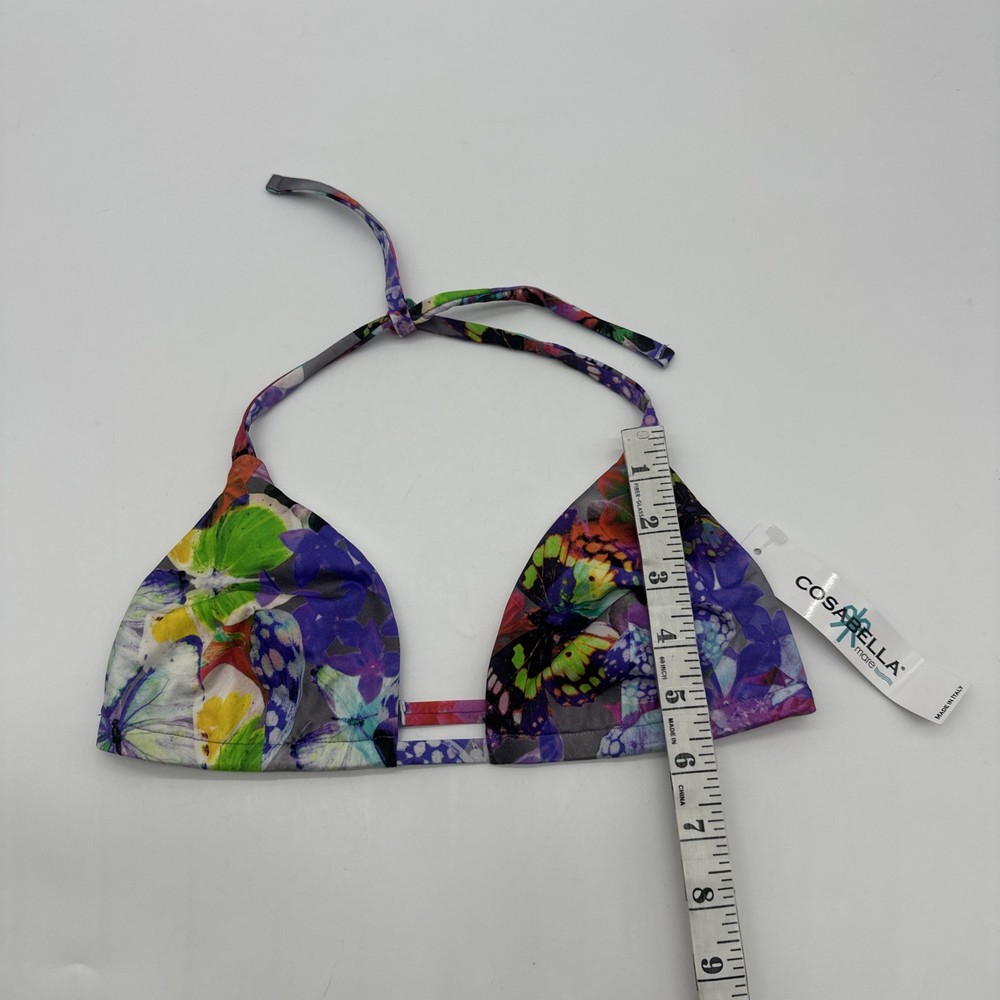 The Cosabella Mare Farfalla ADJ Tri Push Up Top is a stylish bikini top in a flattering push-up style. Made from a blend of spandex and polyamide, this top features a beautiful floral pattern in shades of gray. With delicate lace accents and a classic Italian theme, this top is perfect for beach days or lounging by the pool. Designed by the renowned brand Cosabella in Italy, this top is sure to make a statement in your swimwear collection. Check pictures for flaws and measurements
