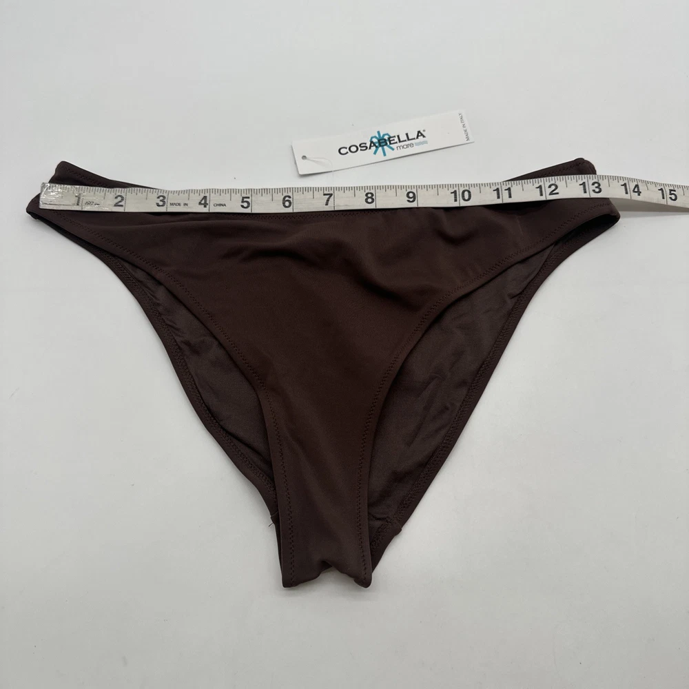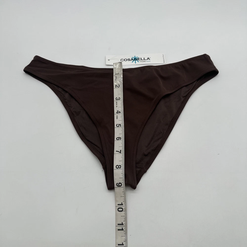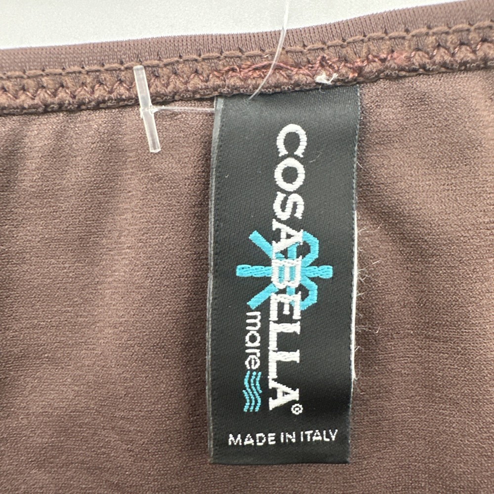 The Cosabella Mare Sunsh Braz LR Bikini is a stylish and comfortable swimwear option for women. Made in Italy with a blend of spandex and polyamide, this one-piece bikini features a solid brown color with a stretchy material for a comfortable fit. The athletic top style and bikini bottom style make it a versatile option for the beach or pool, while the Italian theme adds a touch of luxury to your summer wardrobe. Perfect for those looking for a colorful and unique swimwear option. Check pictures for flaws and measurements