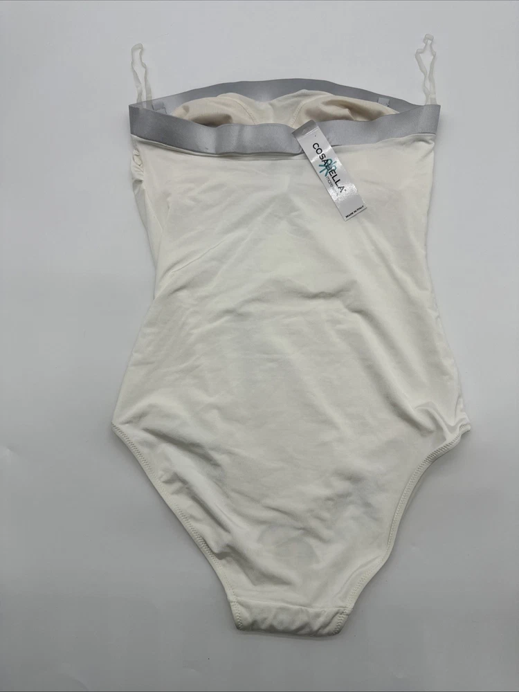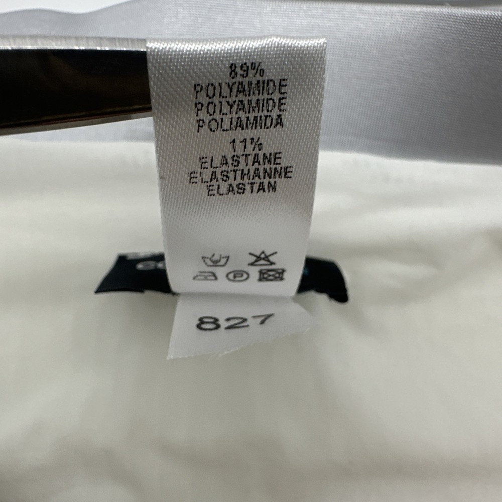The Cosabella Mare Tuxed222M Women's White Tuxedo One Piece Swim is a stylish and elegant swimwear piece designed in Italy. Made from a blend of spandex and polyamide, this one-piece swimsuit features a solid white color with a stretchy material that provides a comfortable fit. The tuxedo style adds a touch of sophistication, making it perfect for beach days or lounging by the pool. The Italian design and beach theme make this swimsuit a chic choice for women looking for a high-quality and fashionable swimwear option. Check pictures for flaws and measurements
