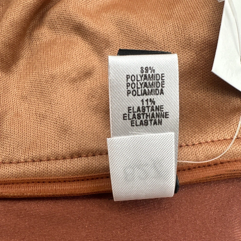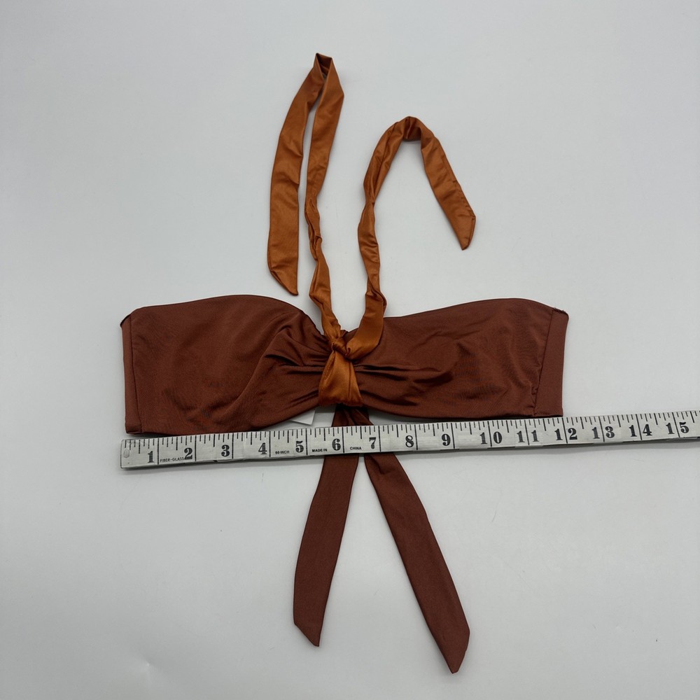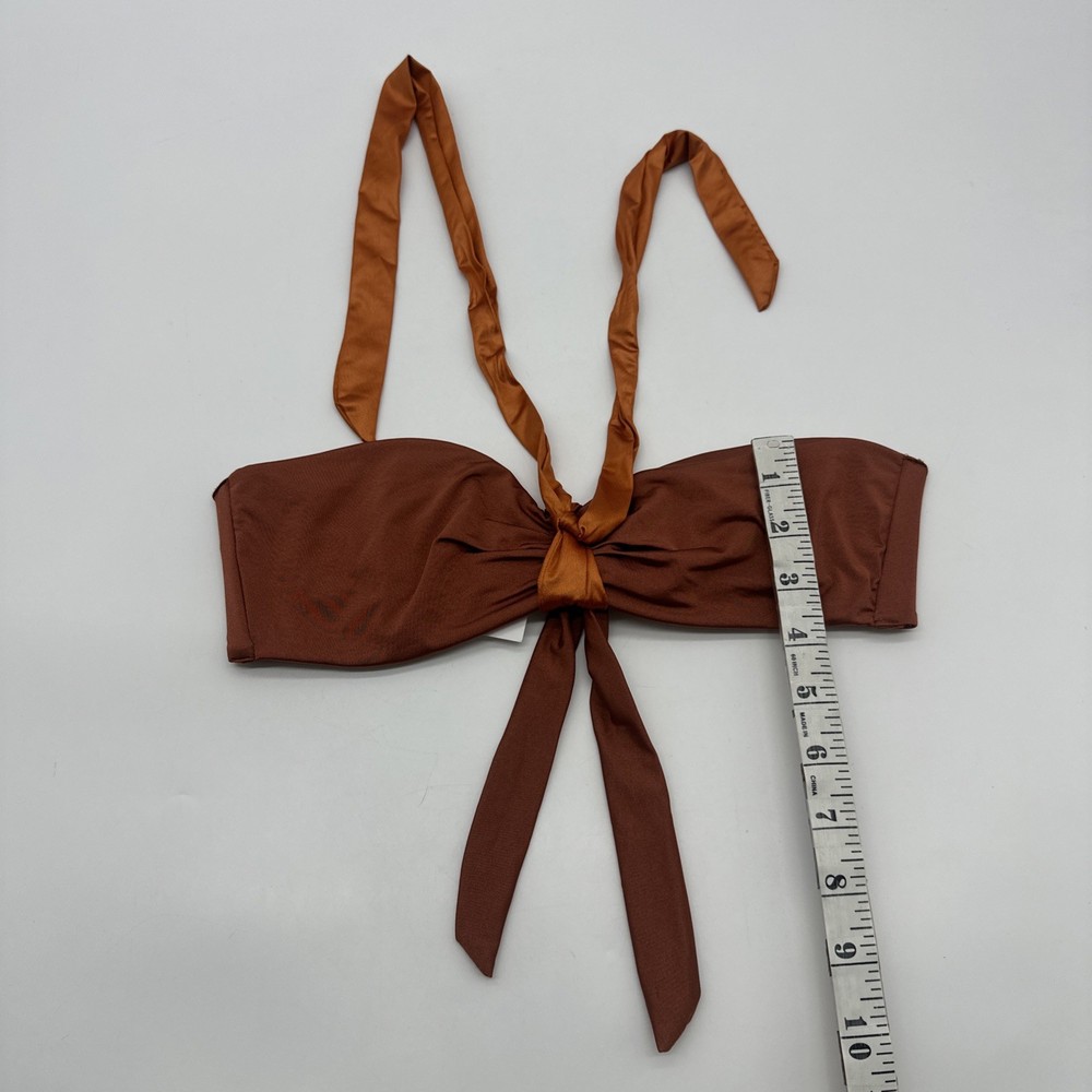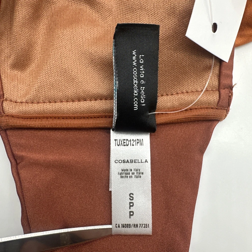 The Cosabella Mare Tuxedo Padded Bandeu Swim Top in Copper is a stylish and luxurious bikini top designed for women. Made in Italy with a blend of spandex and polyamide, this top features a solid brown color and a padded design for added comfort and support. With a flattering bandeau style and a size small fit, this Cosabella top exudes an Italian theme, making it a chic and fashionable choice for any beach or poolside look. Check pictures for flaws and measurements