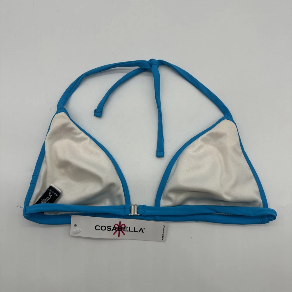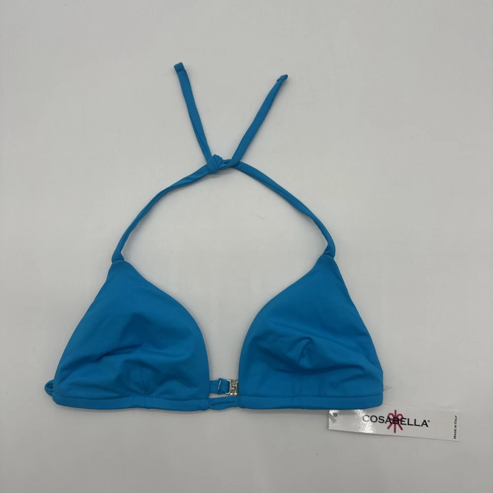 The Cosabella Turquoise Blue Sol Push Up Triangle Swim Top is a stylish and vibrant bikini top designed for women. Made with a blend of spandex and polyamide, this top offers a comfortable and supportive fit. The push-up feature enhances the bust, while the Italian theme adds a touch of elegance to your beach look. With its solid turquoise blue color and trendy design, this top is a perfect choice for any summer getaway or poolside relaxation. Check pictures for flaws and measurements