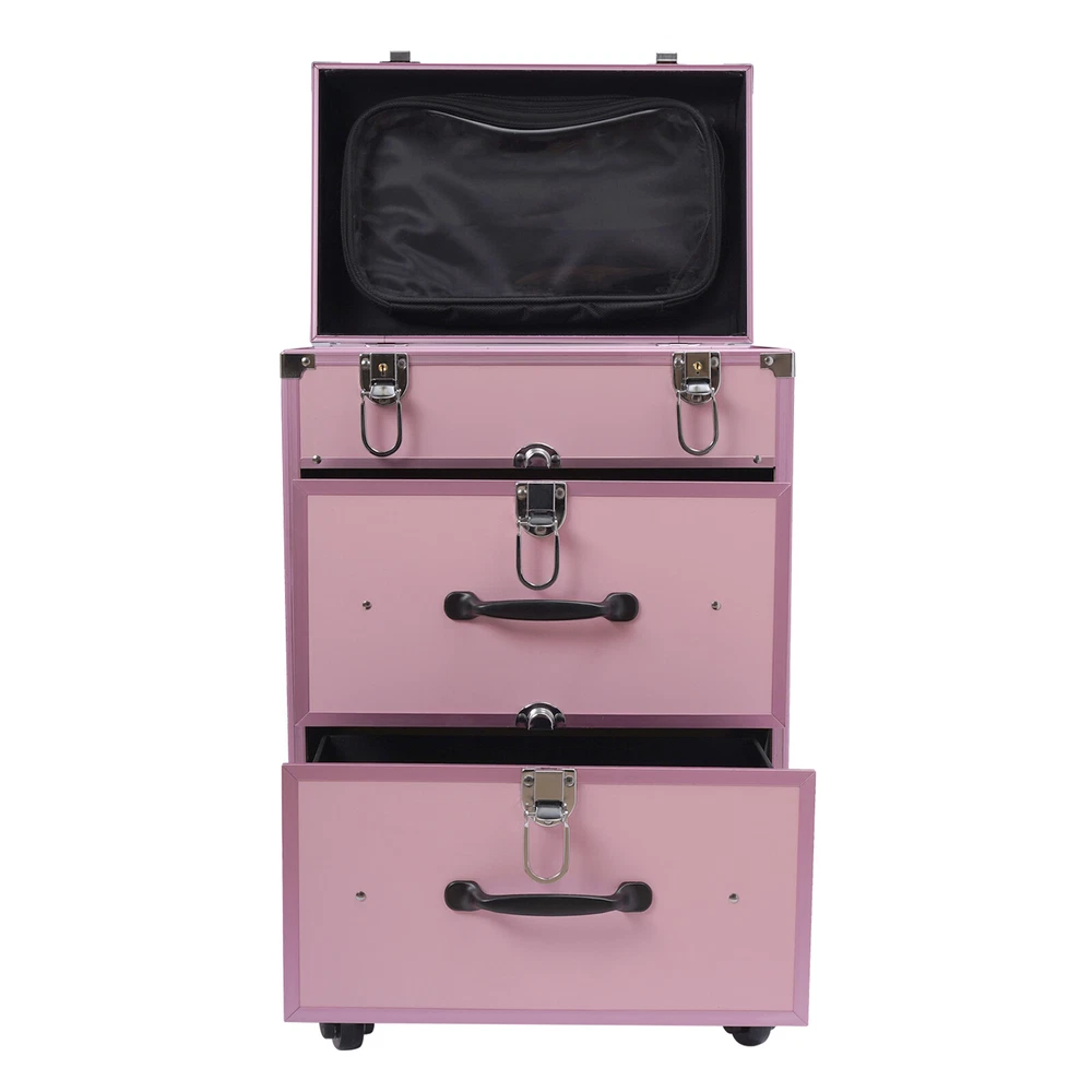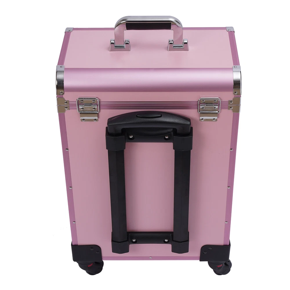 Description This is a movable multi-layered makeup case designed for professional beauty artists to make up anytime and anywhere. This rolling makeup case is constructed of high-quality aluminum alloy that is sturdy and durable. It has extra large capacity compartments and multi-layer drawers. This case is ideal for all people who love beauty or nail art. Key Features High-quality Materials: The frame of the makeup case is wrapped with high-quality aluminum alloy, which will not easily rust and fade. And the thicker, all-aluminum drawbar makes the case more stable, refusing to shake. Large Capacity: This makeup case has 3 layers, the top layer can store nail polish or lipstick; the bottom two drawers can store full-size cosmetics and beauty appliances, such as perms, manicure machines an Cosmetic Pro Rolling Makeup Train Case Aluminum Trolley Train Case Box Organizer Aluminum Pink Rolling Makeup Trolley Train Case Box Organizer Salon Cosmetic Description This is a movable multi-layered makeup case designed for professional beauty artists to make up anytime and anywhere. This rolling makeup case is constructed of high-quality aluminum alloy that is sturdy and durable. It has extra large capacity compartments and multi-layer drawers. This case is ideal for all people who love beauty or nail art. Key Features High-quality Materials: The frame of the makeup case is wrapped with high-quality aluminum alloy, which will not easily rust and fade. And the thicker, all-aluminum drawbar makes the case more stable, refusing to shake. Large Capacity: This makeup case has 3 layers, the top layer can store nail polish or lipstick; the bottom two drawers can store full-size cosmetics and beauty appliances, such as perms, manicure machines and light therapy supplies. This multifunctional product can meet your storage needs. Excellent Weight-bearing Capacity: The rectangular construction and aluminum alloy frame give the case a superb load-bearing capacity (up to 110.3 lbs). You can safely put all your hair and beauty tools on it. Sorted Storage: Beauty products with different functions and sizes are stored in the corresponding drawer and compartment, making the tools ranged orderly, so it is convenient for you to quickly find the tools you want. Easy to Move and Carry: The universal wheels are easy to move and very convenient, especially for nail salons and beauty salons that have a lot of tools and need to move frequently. And it comes with a telescopic pull bar (maximum length is 32.7inchs) and a top handle, which is easy to carry on trips and business trips. Stylish Appearance: This rolling make-up case gives a stylish and exquisite look with its simple construction and stylish pink. Such a retro make-up case will decorate your dressing room well and make a good impression when you are working outside. Secure & Reliable: The metal locks of the case protect the contents securely and the lockable design ensures security and privacy. Worry-free Service: We have been working hard to provide better service and quality for our customers, which is our goal. If there is any quality problem with our products. Please contact us in time. Details Transparent Storage Bag: The transparent storage bag on the inside of the lid allows for wet and dry storage, for example, you can store wet beauty eggs and powder puffs to avoid cross-contamination. Rounded Edges: The top of the cosmetic case has been designed with rounded corners rather than sharp edges to avoid scuffing. Reinforced Lock: Reinforced lock not only makes it convenient for you to open and close, but also does not affect the appearance, and solves the embarrassment of bursting when going out. Application This rolling make-up case is suitable for professional make-up artists, hairdressers, nail technicians, and beauticians in beauty centers, salons, private homes, parties, and other occasions. Specification Number of Layers: 3 Color: Pink Material: Aluminum Alloy Frame and Plastic Fireproof Board Panel Shape: Rectangular Processing Method: Frosted Rolling Wheel Style: Universal Wheel Carrying Parts: Retractable Handle Gross Weight: 9kg/ 19.8lbs Net Weight: 7.5kg/16.5lbs Package Size: 57*42*32cm/22.4*16.5*12.6inch Product Size: 36*23*58cm/14.2*9.1*22.8in Maximum Load:50kg/110.3lbs Package Included 1 x Makeup Case 4 x Universal Wheels 2 x Keys Notes Please allow the slight color difference caused by the shooting light and 1-3cm error due to manual measurement, and make sure you do not mind before you order. Payment Delivery details Terms of sales About us Contact us Payment We accept ebay payment 。 Fees such as import duties, taxes are not included in the item price or shipping costs. These charges are the buyer's responsibility. Delivery details Shipping: 2-9 working days to: USA Terms of sales We maintain high standards of excellence and strive for hundred percent customer satisfaction. Feedback is very important to us. We hope that you contact us immediately before you give neutral or negative feedback, so that we can address your concerns. It is impossible to address issues if we do not know about them! About us Your satis faction is our ultimate goal. We work hard to earn your trust and future business. Our certified technicians have tested each item before shipping. The unit comes with 1 year limited warranty on all manufacturing defects. a) If you receive a defective item, you may return it or ask for a discount. Please contact us within 14 days after you receive the package. b) What you returned must be intact and in its original packaging as re? u. Customer is responsible for shipping costs of the returned item. c) We will cover the cost of shipping back t with the shipping rate indicated in the registration page. We will send you a new unit or refund the full payment you paid. Thank you. Contact us Business Hour Business Hour: Monday To Friday: 8:30 AM to 5:00 PM (Beijing China time) Due to time zones, our reply to your questions may not be immedi