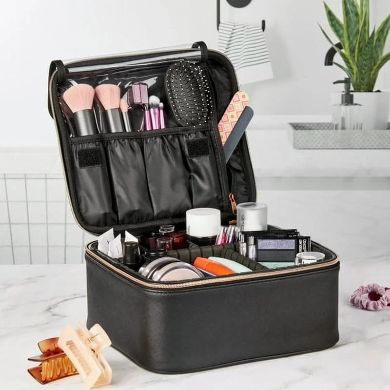 Cosmetic Train Case Organizer Adjustable Divider Waterproof Large Storage Travel