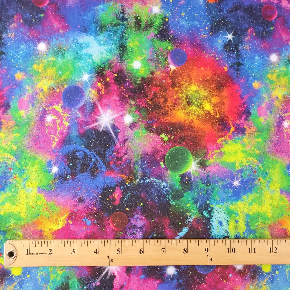 Cosmic Celestial Space 1 3/4 yards (63") Space Planet Rainbow Cottn Quilt Fabric