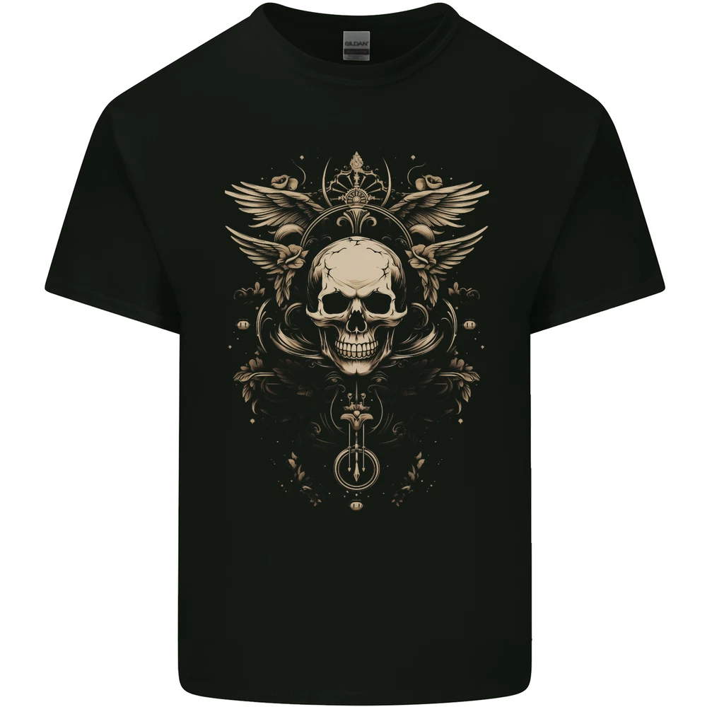 Cosmic Skull With Wings Mens Cotton T-Shirt Tee Top