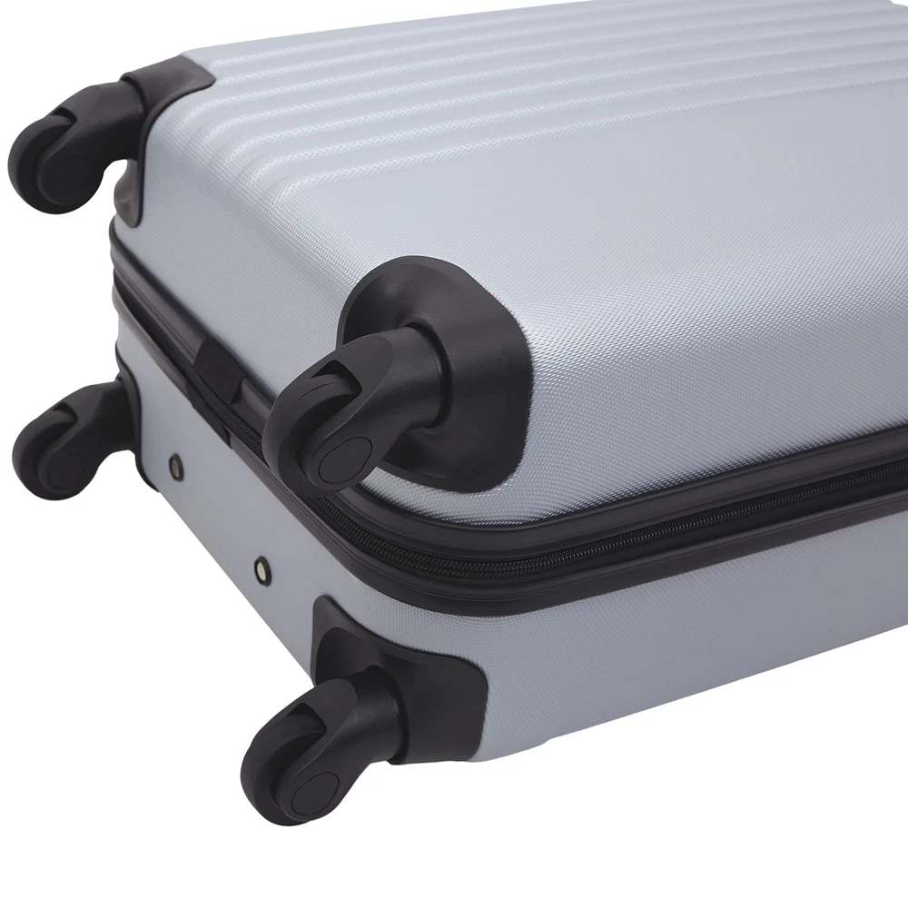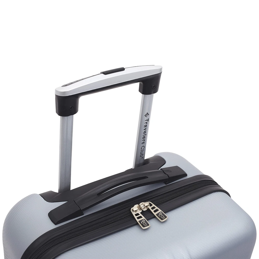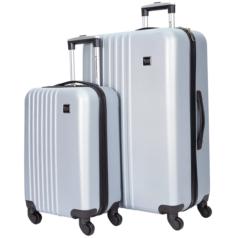 Description All Traveler's Club products - carry-on, suitcase, duffel, multiple piece set, backpack, briefcase, messenger bag, and other travel accessories. If you have any issues with your product, please us - The manufacturer - directly to receive help and assistance immediately. 2 Piece Set Includes 28" Check In Suitcase and 20" Carry On Luggage 28" Suitcase. Body (without wheels) Dimension: 27½ in. x 18½ in. x 11 in. Product Weight: 9 lbs. 20" 4 Wheel Spinner Carry-On Luggage. Body (without wheel) Dimensions: 19½ in. H x 13½ in. L x 8½ in. W. Product Weight: 6 lbs. Made of ABS: Durable and lightweight hard shell 4 Spinning Wheels for Smooth Mobility and Ease on Wrist for Travelers