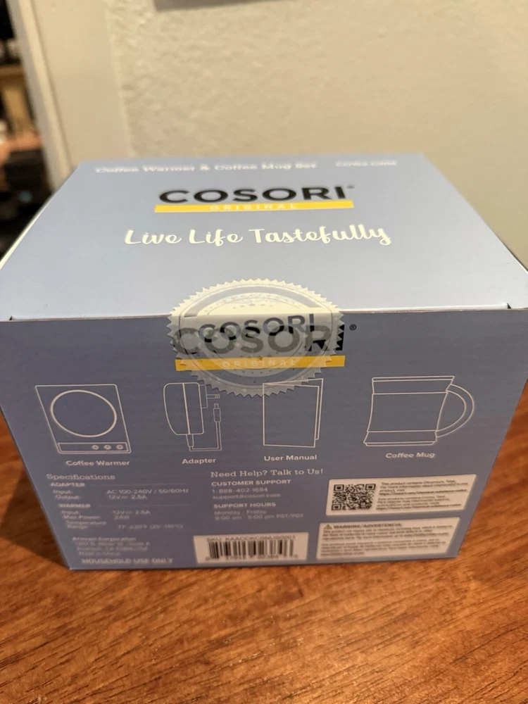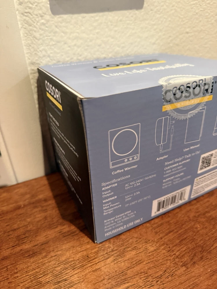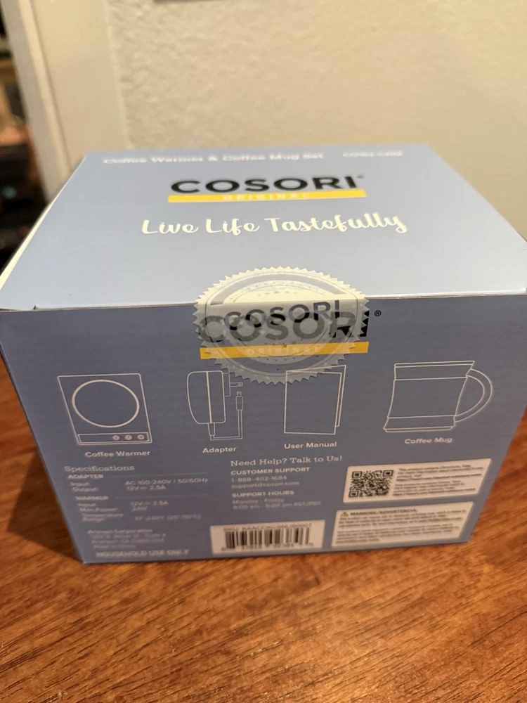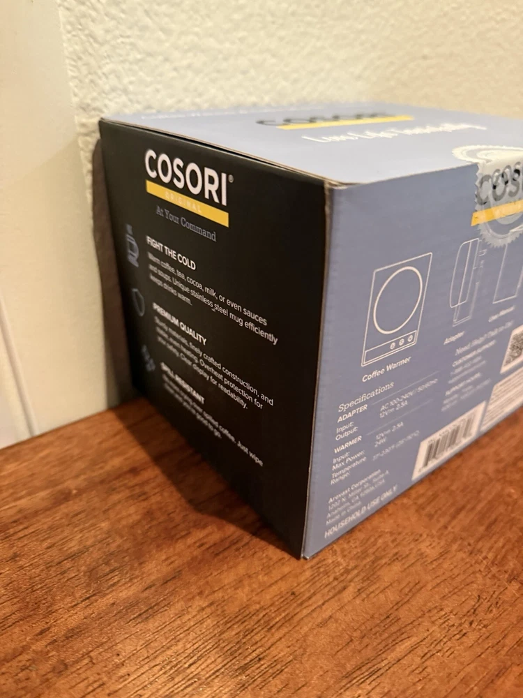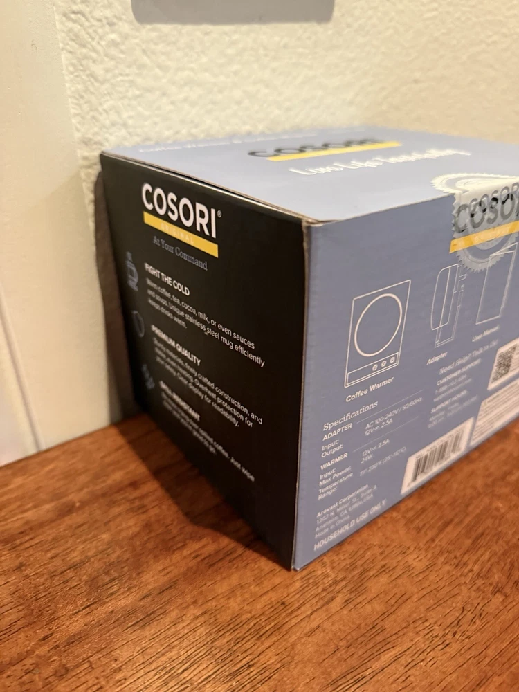 Cosori CO294-CW Coffee Mug Warmer Electric 24 Watt Beverage Cup Warmer, NIB!!!!. - Original automatic coffee mug warmer. - Compact and portable. Easily fit the the coffee warmer in a backpack or briefcase to take it to work or keep it on the kitchen counter. - Safety first. The coffee warmer won't turn on unless a mug is resting on it. After grabbing your mug, it'll maintain its temperature for 10 minutes before automatically turning off. - Spill-resistant. Enjoy added safey and durability with the spill-resistant coffee warmer. Its smooth surface also makes it easy to clean.