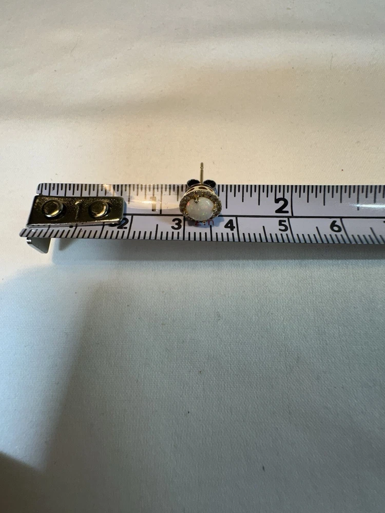 These stunning stud opal and diamond earrings come from Costco Wholesale. Crafted from 14k gold, these earrings feature a beautiful opal cabochon stone measuring approximately 5mm, surrounded by 16 round brilliant cut diamonds. The total diamond weight is 0.10cts. The diamond clarity is certified as VS-2 or better. The earrings come with a Costco Wholesale Article of Description. See the included certificate for more details on the stones and their specifications. These earrings currently retail for $369.99. Box shown not included *****