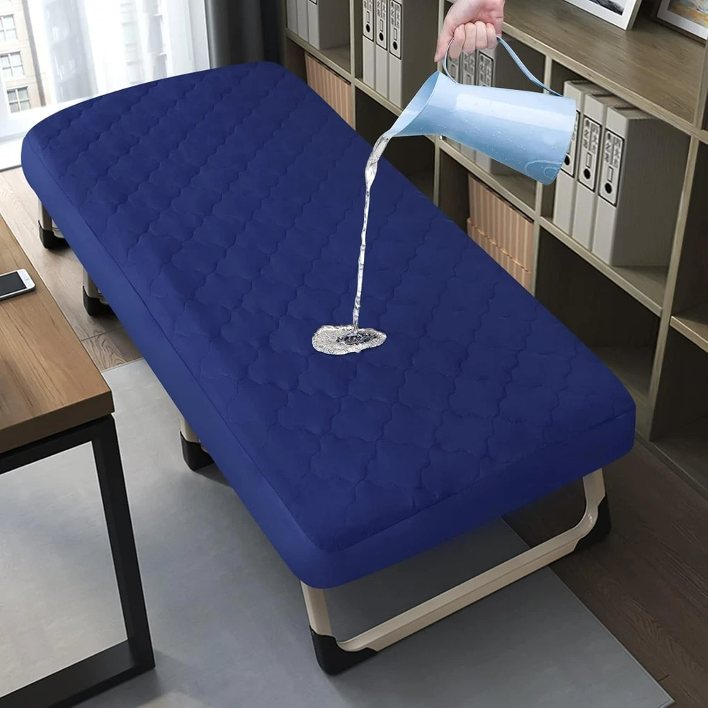 Product description Waterproof & Absorbent: Our cot mattress pad has added an unharmful TPU layer, which provides waterproof function. The top of the cot mattress cover is highly absorbent, to provide for a comfortable night's sleep, while protecting your cot mattress. Ultra Soft & Breathable: Our cot size mattress pad are thoughtfully designed using high-quality quilted microfiber, which is breathable, stretchy and silky soft, friendly to kid’s sensitive skin, providing your little ones a safe and comfy sleeping environment. Perfect Snug Fit: Measuring 30" x 75", our waterproof cot mattress pad fit up to kid’s sleepaway camp, camping cot and RV bunk beds. Deep pockets make sure the cot mattress pad cover universal fits up to 10 inch deep perfect for "Narrow Twin" size mattresses, compatible with Milliard Folding Mattress Cot Size. Stretchable: Each quilted cot mattress cover comes with an elastic band encased at the bottom ensures a tight, secure fit the cot mattress pad won’t ride up or move around in middle of the night, staying smooth and snug. Satisfaction Guarantee: We truly believe in our cot mattress pad protector and work hard to provide top notch customer service. If there is any problem with our cot mattress topper, please contact us and we can replace for you. Handling & Delivery We offer Free Shipping on all orders! Your order will be shipped within 2 working days after receiving payment. In an unlikely event that your order is lost or damaged in transit, it is eligible for full refund or replacement. We ship to continental US address ONLY, we are unable to ship to PO Boxes or APO/FPO addresses. Return Policy If you are not satisfied when you receive your item, please contact us for a replacement or money back. If the item is defective, we will send you a replacement without any extra charge, or offer a full refund after we receive the defective item, but return shipping should be paid by buyer. All items qualify for returns within 30 days of receipt. Returned packages must be the original package. Contact us We will respond emails within 24 hours, within 36 hours on weekend.