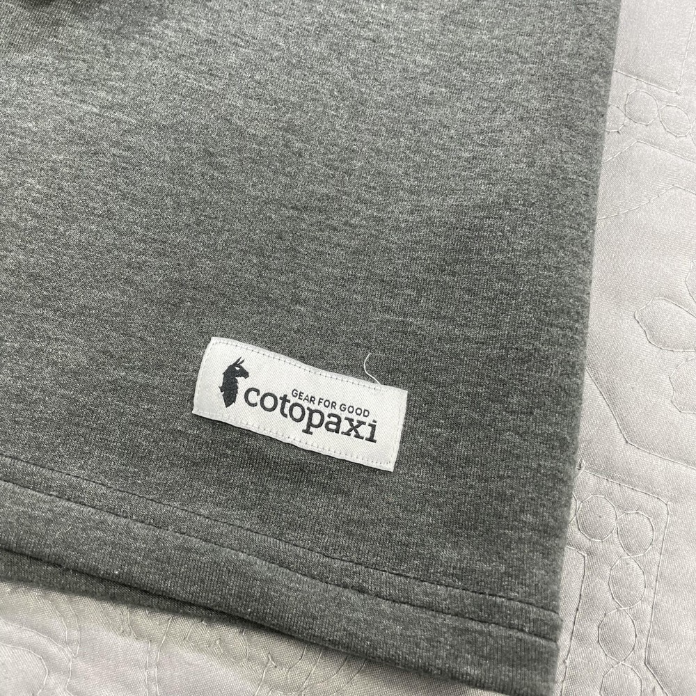Material: Polyester, Lyocell Closure: Zip Department: Men Features: 1/4 Zip Size: XL Style: Pullover Color: Gray Size Type: Regular Country of Origin: Cambodia Fabric Type: Fleece Brand: Cotopaxi Accents: Zipper, Logo Type: Sweatshirt Pattern: Solid