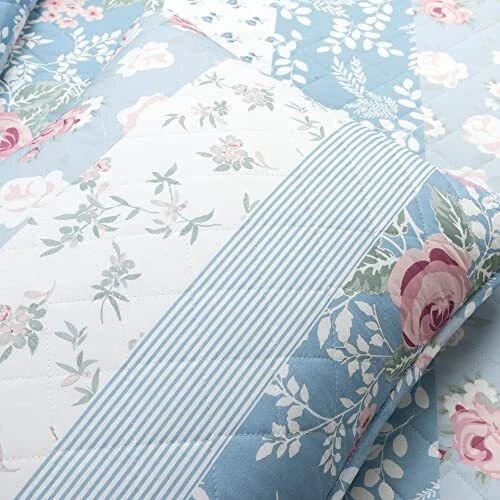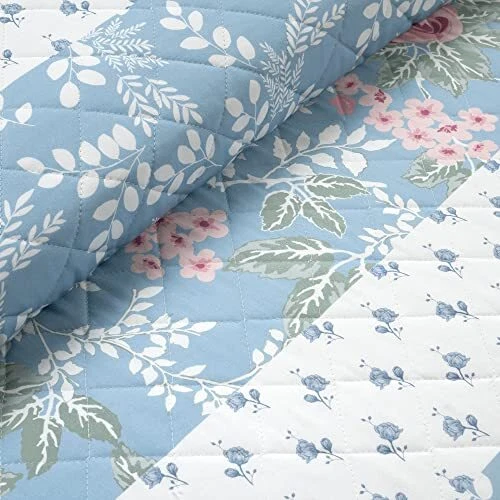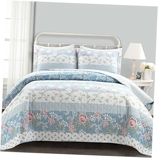 Return Policy Fast Delivery Trusted seller Cottage Core Flower Stripe Oversized Reversible 3 Piece Cotton Quilt Set, Full/Queen, Blue & Dusty Pink Product Description This romantic design will complete your cottagecore aesthetic with a pattern of lovely shades of stripes and florals. Oversized and reversible for your comfort and style, this three piece set embraces the nostalgic ambience of a cottage home. Sweet dreams are made of this. Cozy up your bedroom style with our dreamy cottagecore inspired quilt set. This oversized bedding is the ideal lightweight coverage for warm summer nights and for layering in the colder weather. Printed with a romantic floral design, it features a reversible pattern so you can switch up your look in an instant. This set includes one quilt and two matching shams. Full/Queen measures 92 inches long x 88 inches wide and King measures 92 inches wide x 108 inches long. Please refer to label for full care instructions. Shipping Returns Payment Shipping Shipping is FREE to all addresses other than APO/PO boxes in the lower 48 states. All our stock ships from US-based warehouses. Shipped via USPS or UPS (depending on location and package weight) Unless stated otherwise, all orders will ship within 24-72 hours of your payment being processed. Check our feedback to see the great reviews of FAST shipping we offer. Returns Seller does not accept returns Payment We currently accept payment via eBay managed payments only. Once payment is cleared, we will dispatch your shipment within 1-3 business days. Please refer to the "Shipping" tab for more information regarding shipping speed to your destination.