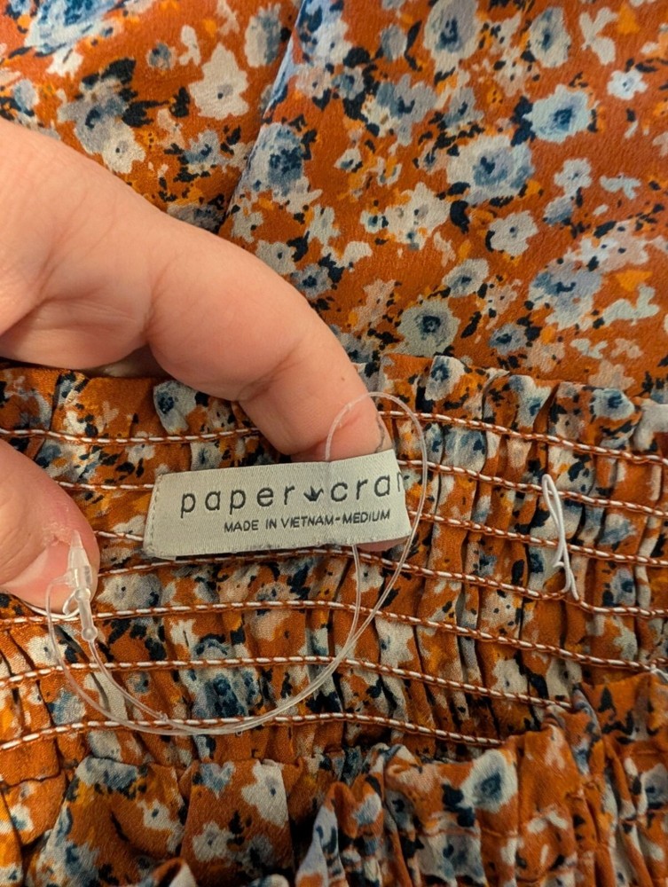 This lightweight, elastic-waist mini skirt features a charming floral print and tiered design. Its versatile and flowy style ensures all-day comfort. • Elastic waistband for comfort • Tiered design for added flair • Vibrant floral pattern • Lightweight and breathable material • Easy to care for with machine wash instructions Pre-Owned Condition (see pics for details) Measurements taken with garment laying flat Measurements are approximate: Waist: 26" Length: 16" 7-0257 .5