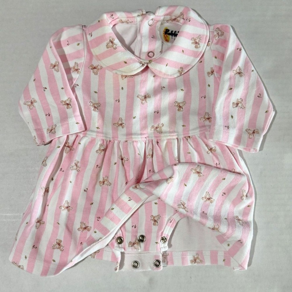 Brand: Adorable Cottage, Some Bunny Tag Size: 3m Color/ Pattern: pink, white, yellow, pastel Details: 2 pc lot includes snap onesie, long sleeve pink and white stripe dress with bear pattern and footie jumpsuit romper in yellow with puff sleeve, snap closure and floral motif. Condition: Excellent, used (see photos for any general wear) with no major flaws or damage Please message me with any questions! vintage, 2000s, floral, teddy bear, peter pan collar, candy stripes, Spring, embroidery, casual, easy-wear, baby, infant, kid's, children, toddler