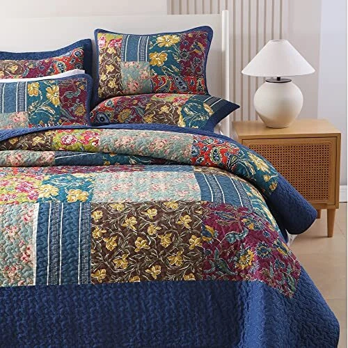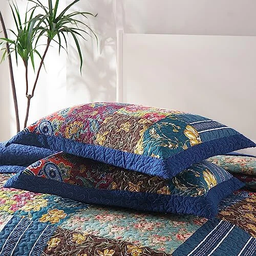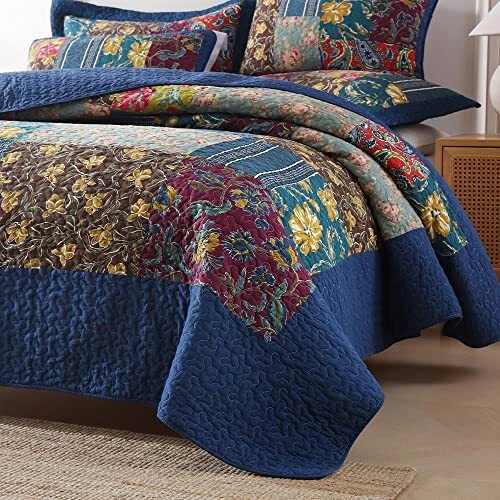 Return Policy Fast Delivery Trusted seller Cotton Bedspread Quilt Sets Reversible Bedding Coverlet Sets,3 Pieces Patchwork Blue Vintage Floral Paisley Bedspread, Queen Size Product Description Cotton Bedspread: 100% cotton fabric both in covers and fillings, soft and cozy. Real patchwork: Special splicing handmade craft with intense stitching process making the real patchwork bedspread more durable and comfortable. Rustic vintage design: European classical paisley floral pattern making your room more elegant and charming, creating a wonderful bedroom space. Reversible quilt sets: This quilt has vintage rustic floral pattern in the front and pure blue color in the back, which is reversible to use. 3 pieces quilt sets: 1 queen size bedspread (90 by96 Inch) with 2 Pillowcase (20 by27 Inch). Machine washable: Wash separately in cold water. Tumble dry at low heat. Shipping Returns Payment Shipping Shipping is FREE to all addresses other than APO/PO boxes in the lower 48 states. All our stock ships from US-based warehouses. Shipped via USPS or UPS (depending on location and package weight) Unless stated otherwise, all orders will ship within 24-72 hours of your payment being processed. Check our feedback to see the great reviews of FAST shipping we offer. Returns Seller does not accept returns Payment We currently accept payment via eBay managed payments only. Once payment is cleared, we will dispatch your shipment within 1-3 business days. Please refer to the "Shipping" tab for more information regarding shipping speed to your destination.