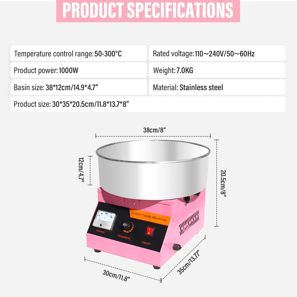 Store category Sign Up Now ! You may also like Product Description Improved Performance: Hosting an event has never been easier with our commercial cotton candy maker. Boasting a large candy bowl, it can produce fluffier and healthier cones per minute, while containing less sugar and calories. Plus, the spinning head ensures even melting and spinning of sugar using the powerful 1000w heating element. Precise Temperature Control: This cotton candy machine features a digital voltage display and temperature control knob, allowing you to easily adjust the temperature according to your preference. Enjoy fluffy and delicious cotton candy at home or in your business. Use Simply: Set your desired temperature, wait 2-3 mins to warm up, and effortlessly make delicious cotton candy by pouring sugar into the rotating head, using the included skewers. This Cotton Candy Machine Commercial is easy to operate and clean. Must-Choice Christmas Gift: This commercial cotton candy machine is the perfect solution for busy event hosts. Lightweight and compact, it's an excellent gift for planning a birthday party or wedding reception. Mount it on any desktop and enjoy delicious fluffy cotton candy in minutes: without the stress. Stable and Cool: This cotton candy machine features cooling vents for optimal cooling and performance, and is designed with non-slip feet to provide a sturdy foundation for any table. Enjoy homemade fluffy and delicious marshmallows with our powerful 1000w heating element Marshmallow Machine. Featuring a digital voltage display and temperature control knob, pour sugar into the rotating head to create the perfect treat. This machine also has cooling vents for optimal performance and makes an gift . Specification: Create unique and delicious marshmallow flavors using any type of sugar you like, such as traditional floss candies, milk candies, fruit chunks or hard candies. It's great for experimenting with combinations and customizing the perfect treat. Our cotton candy machine is perfect for any who likes to make sweet treats at home! It's incredibly easy to operate, so you can start using it right away. Simply turn on the power, set the temperature, and preheat the machine for 2-3 minutes. Then, pour the sugar into the rotating head and watch as the machine produces fluffy, delicious marshmallows. To collect your snacks, simply use the skewers we provide. Specification Voltage: 110V Power: 1000W Material: stainless steel Product size: 12.6 * 15.5 * 8.3 inches Plug specification: U.S. gauge Packing list: Cotton Candy Machine Commercial X1 Payment Delivery details Terms of sales About us Feedback & DSRs Payment Before you palce an order, please kindly make sure that you have a paypal account. We accept PAYPAL payment only. Payment should be completed within 2 days after auction closed, or unpaid dispute will be filed for an closing auction. An unpaid case will be filled after 4 days. Delivery details We ship to your eBay address. Each package will be shipped to US by UPS Regular Parcel with tracking number. Please check your shipping address carefully before checkout, it can't be changed if order completed. All items will be shipped within 1-2 business day upon receipt of payment.Orders placed on weekend will be shipped within 3 days. If you do not receive your item in 7-10 business days.please contact us immediately for further assistance. We will be responsible for any damages or losses incurred in the shipping process. About us We maintain high standards of excellence FIVE STAR and strive for 100% customer satisfaction! Positive Feedback is very important to us. We hope that you contact us immediately Before you give us neutral or negative feedback, so that we can satisfactorily address your concerns. We promise to offer the lowest price and high quality produce. Our working time: From Monday to Friday(9:30 am to 18:00pm), we don't working on holidays ,hope you can understand and know that , thank you. Please always talk to us via ebay Message. We appreciate your business and look forward to growing our e-Bay sales with satisfied customers. Feedback Contact us If you have any questions, please feel free to contact with us by ebay Message during our business hours ( 9:30a.m. to 5:30 p.m.), or email us through eBay, we will try our best to help you to resolve it. For any presale or after-sale questions,please do feel free to email us! Due to the time difference, each email will be replied within 1 working day,and weekend will be delayed a bit. Feedback