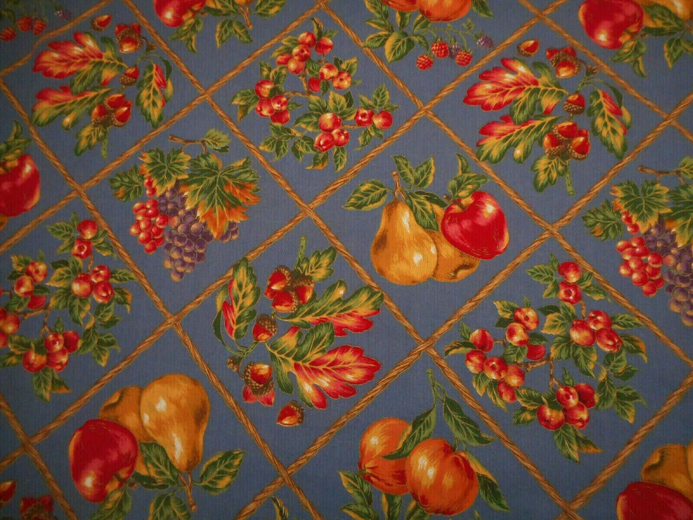 This is a very nice fabric that is 100% cotton. This fabric is 57" wide & is out of print. It has purple & red grapes, gold pears, red apples, & acorns, etc. with green & gold leaves all outlined with metallic gold on a dark dusty blue background that has twisted brown looking "rope or twine" separating them. READ: Because computer monitors show colors & shades differently, the fabric colors can vary from the photos. If you have any questions regarding this, please contact me before purchasing the item. I have been a quilter for 30 years & am an accomplished seamstress & would be happy to answer any questions you might have. This is for 1 Yard of fabric. If you purchase more than 1 Yard, I will give you one continuous cut. If you have a problem with anything you purchase from me, please contact me before leaving neutral or negative feedback and I will work it out with you. Payment is due within 48 hours. If payment isn't received within 5 days, it will automatically go to Ebay's resolution center for non-payment. INSTRUCTIONS FOR COMBINED SHIPPING: I Do combine shipping. You must put your items into your shopping cart and request an invoice from me using the request total button before completing the payment process. IF YOU'RE UNABLE TO COMBINE YOUR SHIPPING, PLEASE CONTACT ME. Payment is due upon receipt of your invoice. Thank you for looking and God bless you and your family. IF THERE IS A PROBLEM WITH ANY PURCHASE, PLEASE CONTACT ME, THE SELLER, VIA EBAY'S MESSAGING SYSTEM PRIOR TO OPENING A CASE--OPENING A CASE, EVEN IF RESOLVED SMOOTHLY, CAN HURT THE SELLER'S RATINGS. THANK YOU