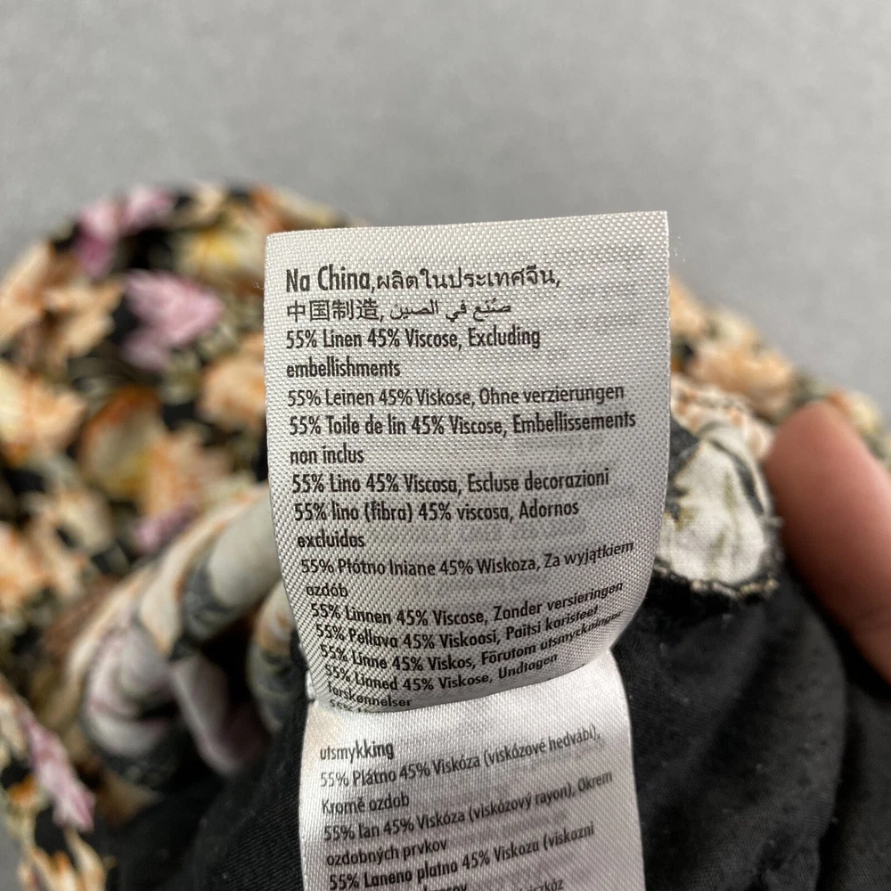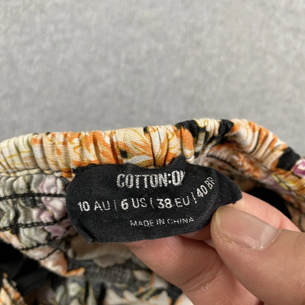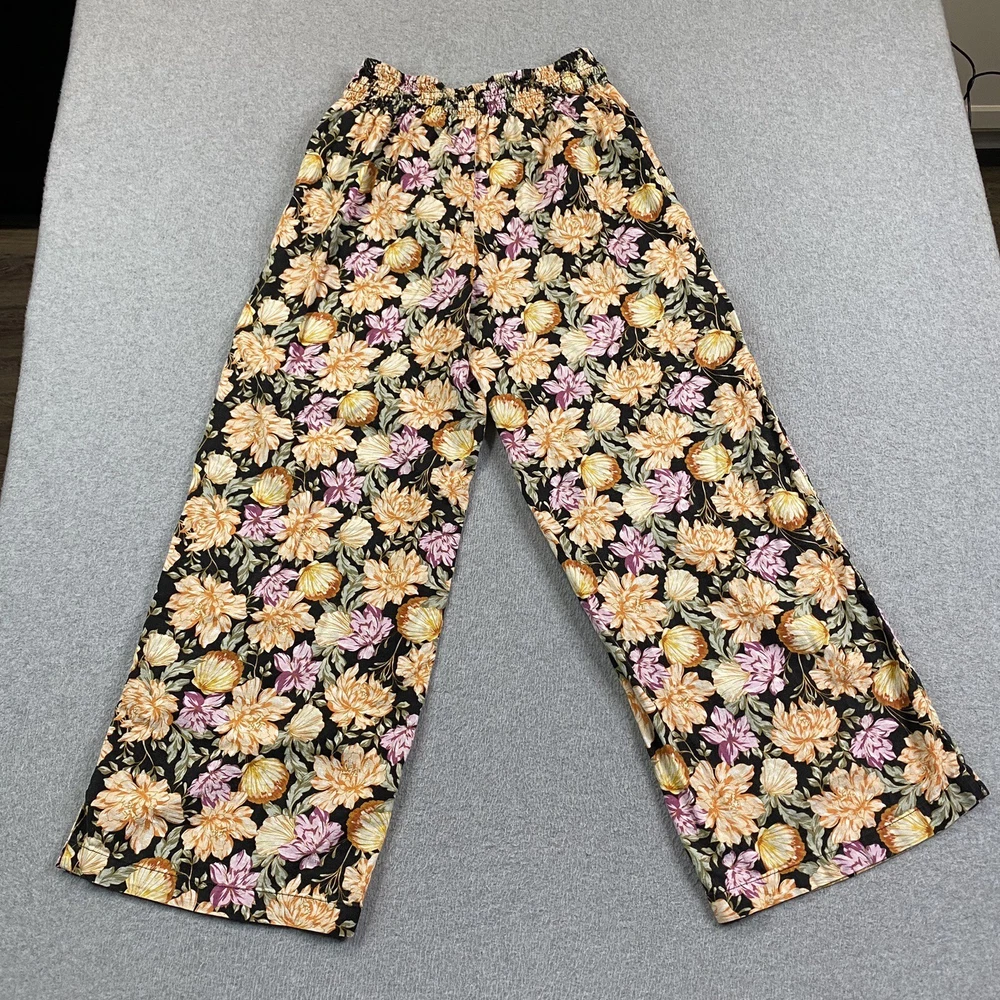 Cotton On Pants Women 6 Linen Blend Floral Wide Leg Baggy Straight Elastic Waist