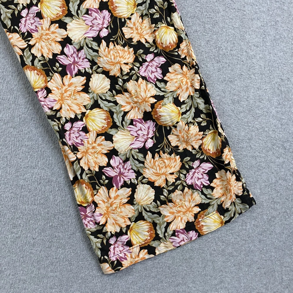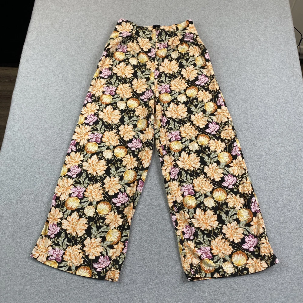 Style: Harem Department: Women Pattern: Floral Size: 6 Color: Black Front Type: Pleated Seller Notes: “Item is in used condition with no holes or stains.” Rise: High (Greater than 10.5 in) Fabric Type: Woven Accents: Pleated Brand: Cotton On Inseam: 27 in Waist Size: 26 in Size Type: Regular Leg Style: Wide-Leg Theme: Beach, Bohemian, City, Preppy, Boho, Casual, Ladies, fashion, style, outdoor, new york, flowers Closure: Pull On Features: Elastic Waist Country/Region of Manufacture: China Material: Linen, Viscose Occasion: Travel, Party/Cocktail, Casual Type: Pants Fit: Relaxed