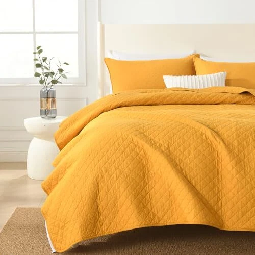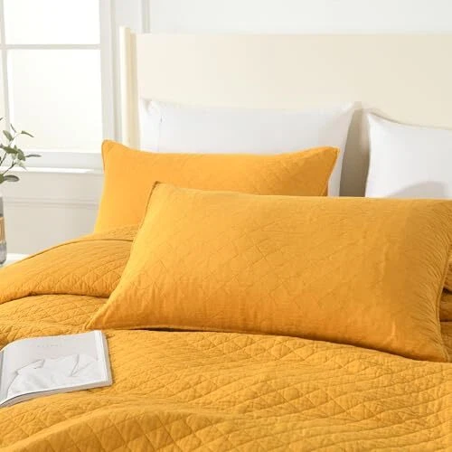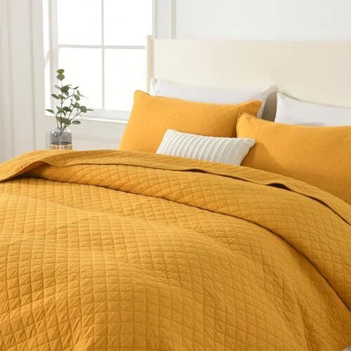 Return Policy Fast Delivery Trusted seller Cotton Quilt Bedding Sets Queen Size, 3 Pieces Reversible Lightweight Coverlets Comforters Bedspreads for All Seasons,Geometric Stitched Pattern,Yellow Product Description Durable soft Cotton Bedspread: 100% pure cotton, more durable, soft, lightweight and environmentally friendly, which helps you to enjoy a great sleeping environment every night for all seasons. Package includes: This Quilt set Queen includes 1 reversible quilt Queen (90x98inch) and 2 pillow shams (20x 27inch), perfect for queen size beds. Nice Decor: We put more attention on the ability of our 3-piece quilt sets’ design and workmanship. Special elegant solid geometric pattern coupling with a wide range of color options. T's always a color to match your home's style. All Season use bedding sets: This quilt set is suitable for year-round use. Super lightweight as a quilt for summer nights and delivers essential supplementary warmth as a bedspread during cold winter days. Easy care: Machine wash separately in cold water, won't wrinkle or shrink even after washing. Tumble dry on low and do not bleach. Shipping Returns Payment Shipping Shipping is FREE to all addresses other than APO/PO boxes in the lower 48 states. All our stock ships from US-based warehouses. Shipped via USPS or UPS (depending on location and package weight) Unless stated otherwise, all orders will ship within 24-72 hours of your payment being processed. Check our feedback to see the great reviews of FAST shipping we offer. Returns Seller does not accept returns Payment We currently accept payment via eBay managed payments only. Once payment is cleared, we will dispatch your shipment within 1-3 business days. Please refer to the "Shipping" tab for more information regarding shipping speed to your destination.