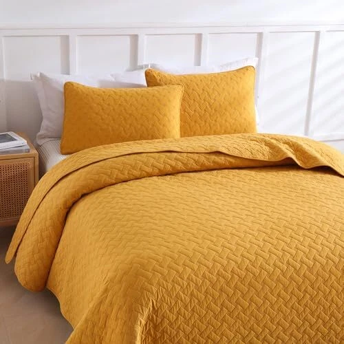 Return Policy Fast Delivery Trusted seller Cotton Quilt Bedding Sets Queen Size, 3 Pieces Reversible Lightweight Coverlets Comforters Bedspreads for All Seasons,Weave Stitching Pattern,Yellow Product Description Durable soft Cotton Bedspread: 100% pure cotton, more durable, soft, lightweight and environmentally friendly, which helps you to enjoy a great sleeping environment every night for all seasons. Package includes: This Quilt set Queen includes 1 reversible quilt Queen (90x98inch) and 2 pillow shams (20x 27inch), perfect for queen size beds Nice Decor: We put more attention on the ability of our 3-piece quilt sets’ design and workmanship. Special elegant basket weave stiching pattern coupling with a wide range of color options. T's always a color to match your home's style. All Season use bedding sets: This quilt set is suitable for year-round use. Super lightweight as a quilt for summer nights and delivers essential supplementary warmth as a bedspread during cold winter days. Easy care: Machine wash separately in cold water, won't wrinkle or shrink even after washing. Tumble dry on low and do not bleach. Shipping Returns Payment Shipping Shipping is FREE to all addresses other than APO/PO boxes in the lower 48 states. All our stock ships from US-based warehouses. Shipped via USPS or UPS (depending on location and package weight) Unless stated otherwise, all orders will ship within 24-72 hours of your payment being processed. Check our feedback to see the great reviews of FAST shipping we offer. Returns Seller does not accept returns Payment We currently accept payment via eBay managed payments only. Once payment is cleared, we will dispatch your shipment within 1-3 business days. Please refer to the "Shipping" tab for more information regarding shipping speed to your destination.