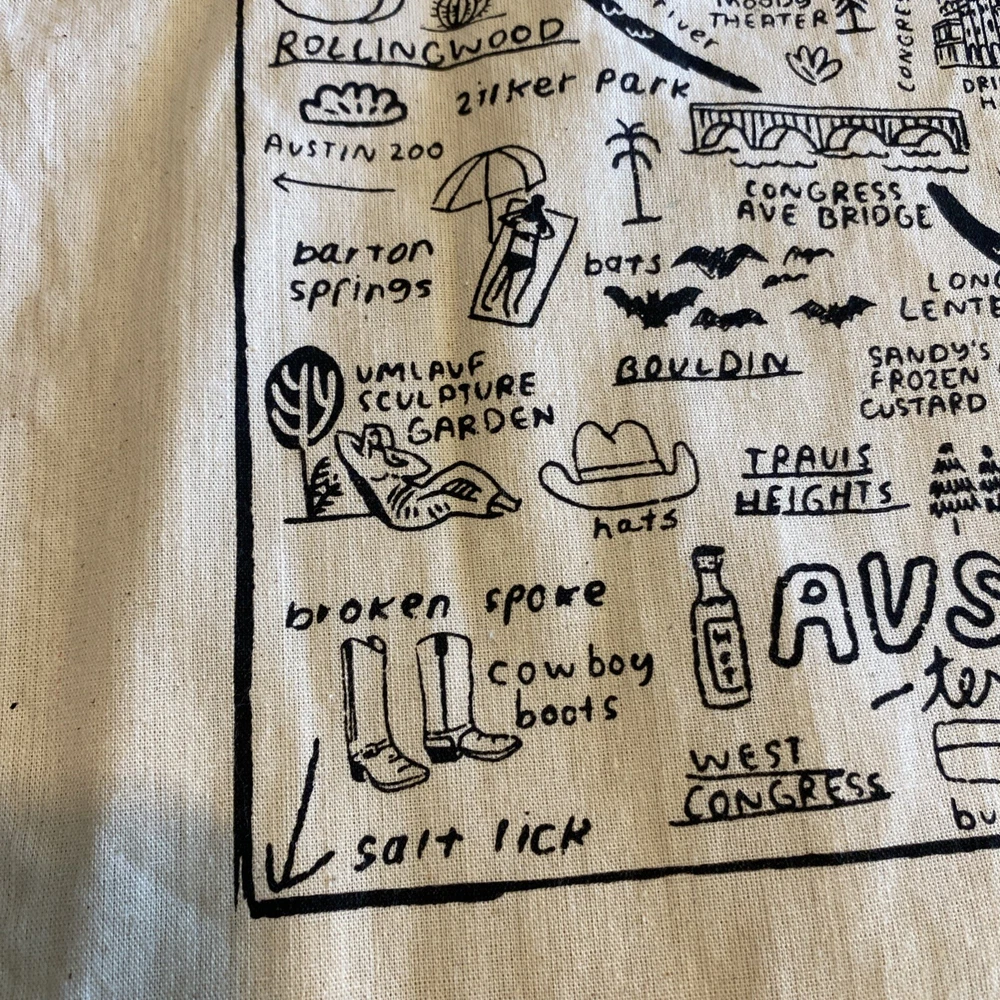 Cotton Tote Bag Austin Texas Canvas Beige Local Landmarks Printed
