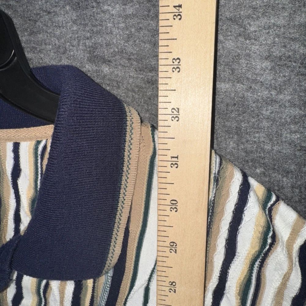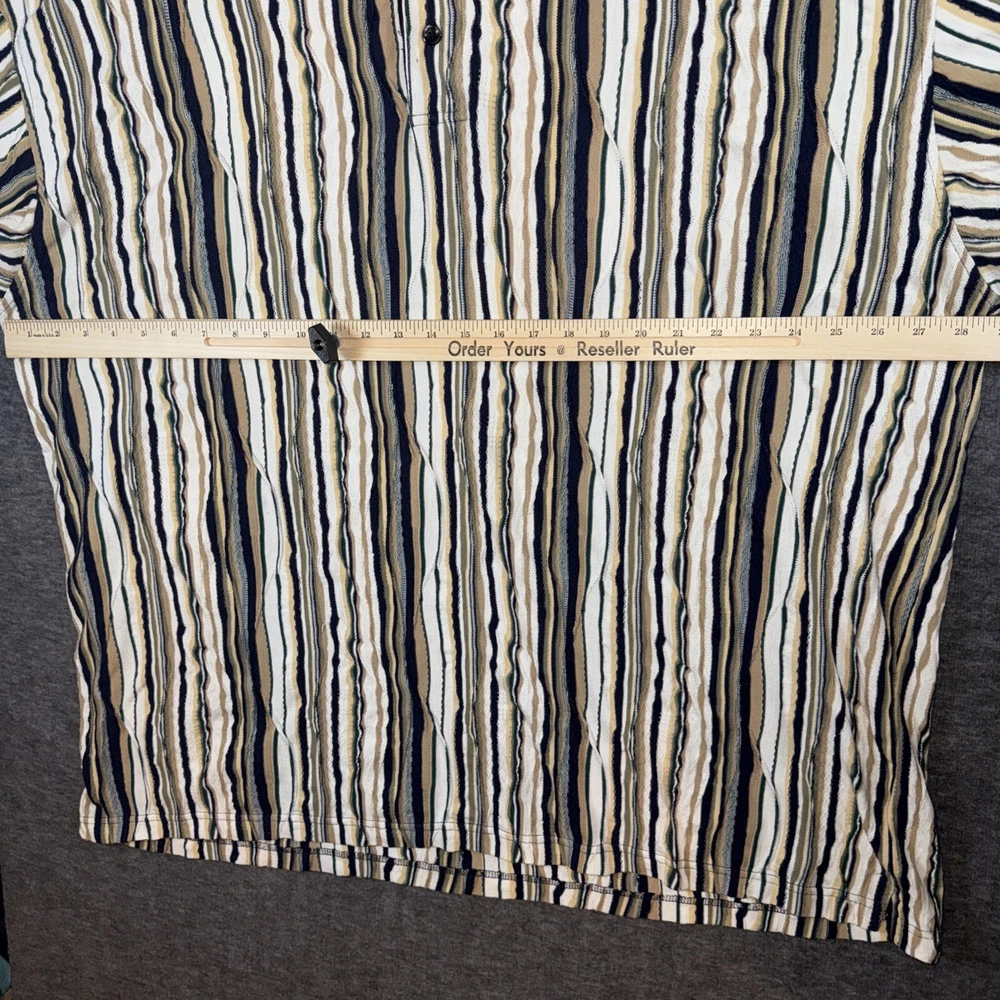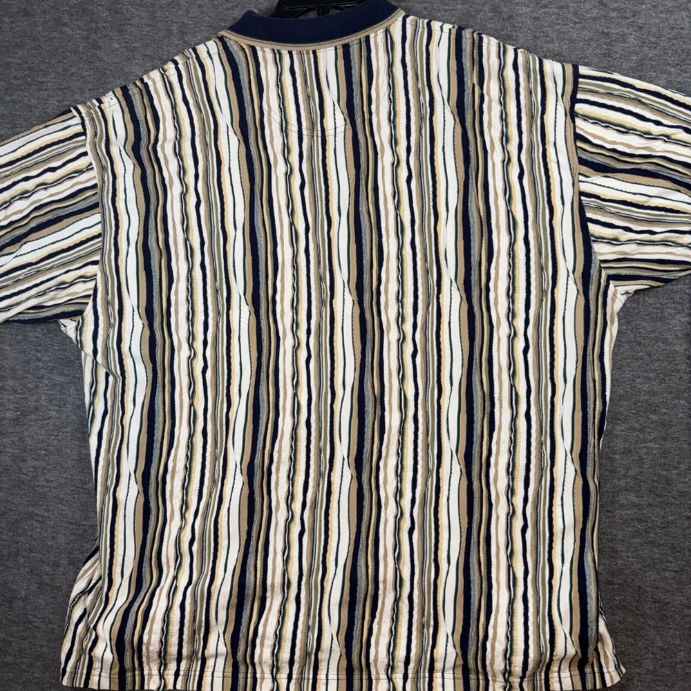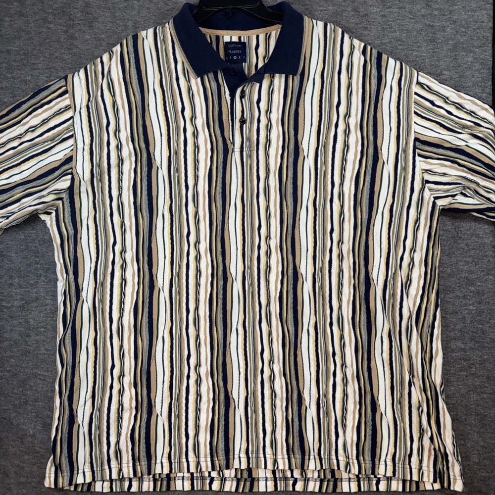 Crafted for comfort and style, this Cotton Traders polo shirt combines a classic striped pattern with a modern 3D knit texture that gives it a vintage appeal. Ideal for casual wear or hitting the links, the shirt comes in a versatile beige that pairs easily with your favorite jeans or chinos. The shirt is thoughtfully designed with a cotton blend fabric that ensures breathability and easy care, being machine washable. Its short sleeves and standard 2XL fit cater to a relaxed look without sacrificing a sense of style, perfect for the man on the go.