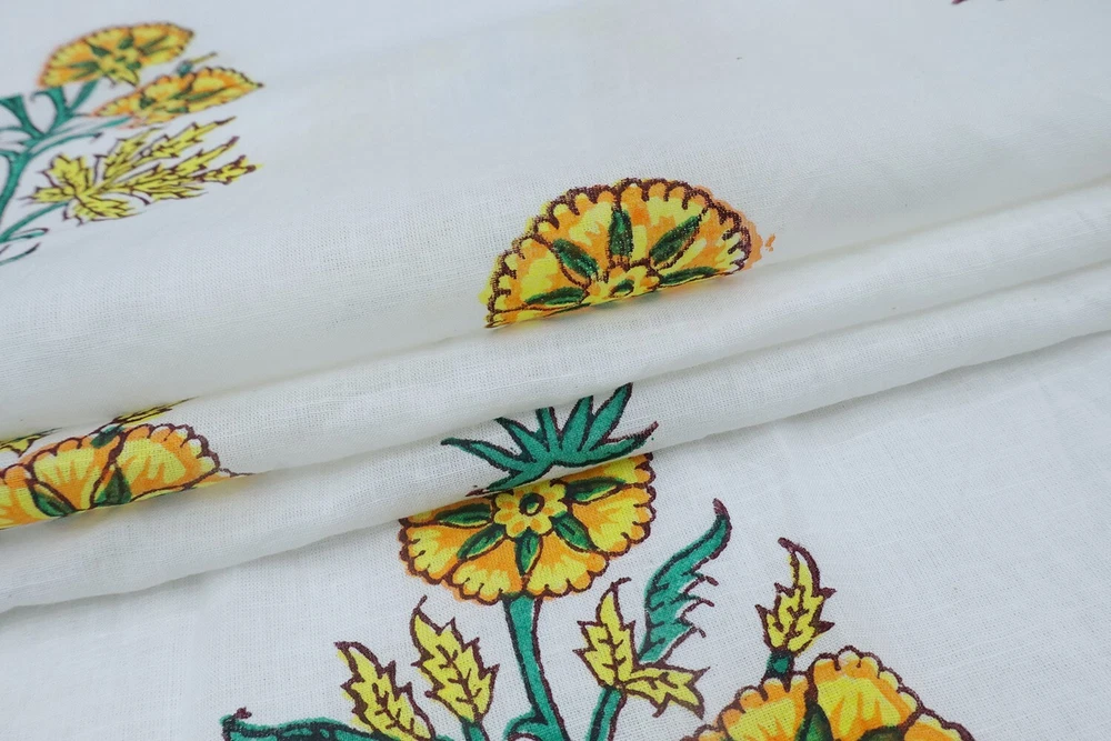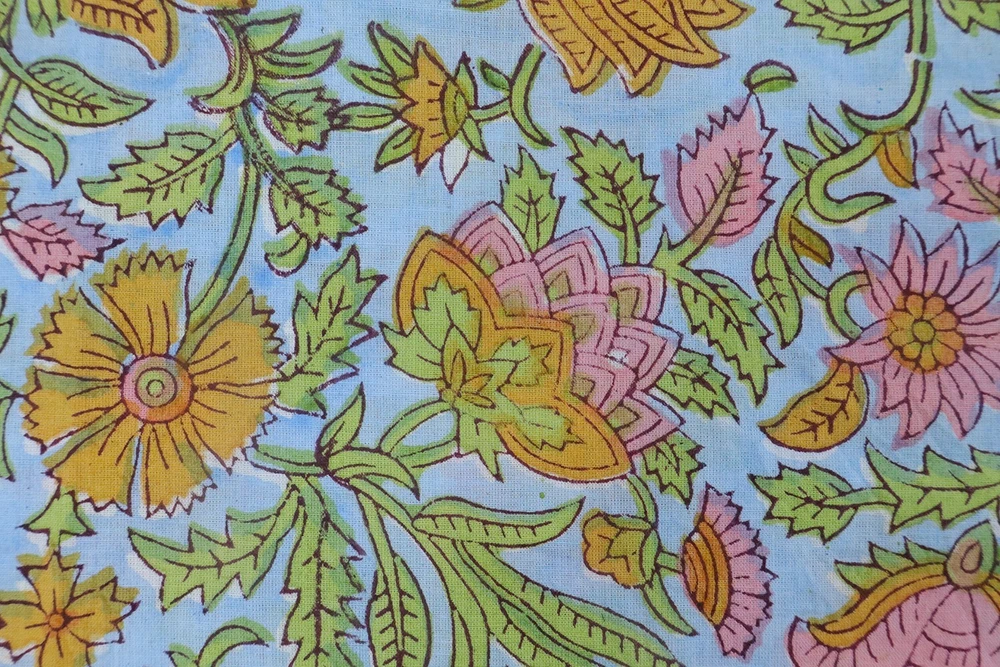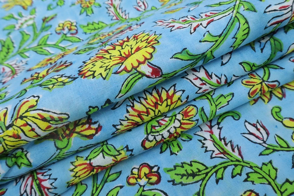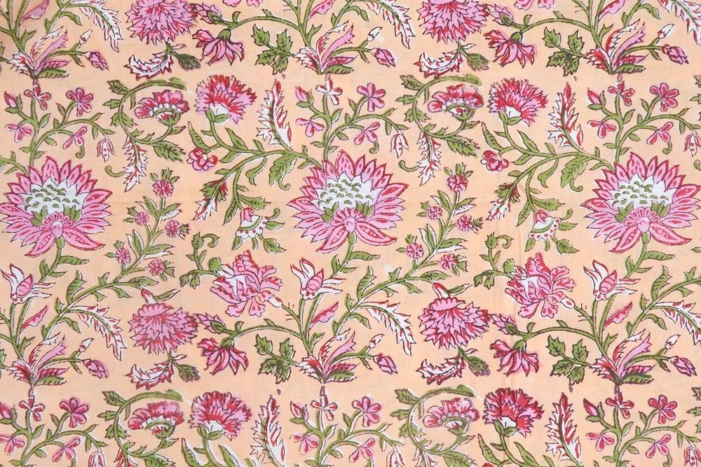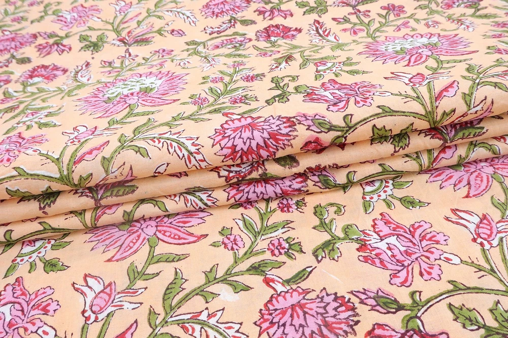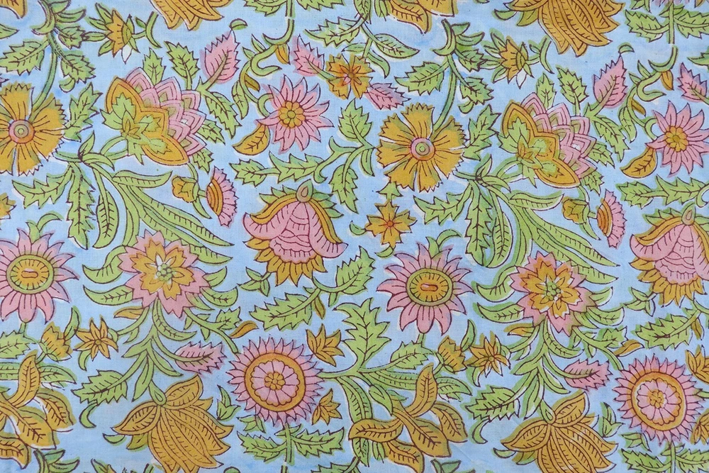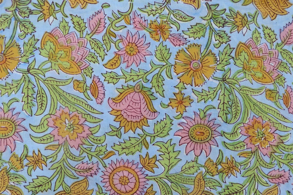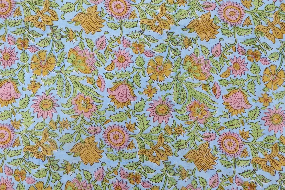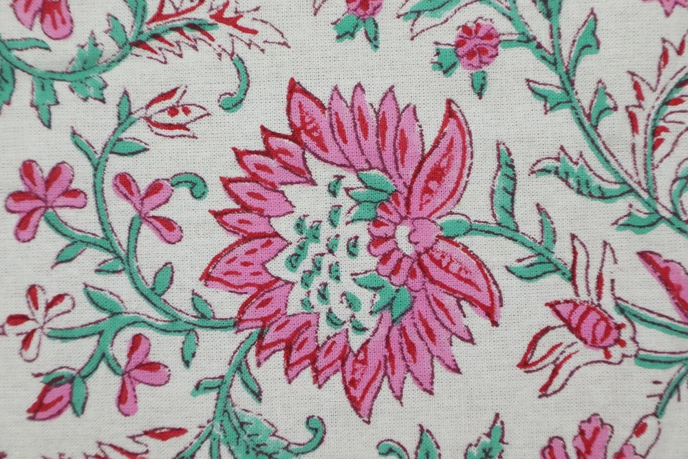Craft your next project with Bella Pinks' Cotton Floral Hand Block Print Fabric, a true testament to traditional Indian craftsmanship. Each yard is adorned with a vibrant, multicolored floral pattern that brings a touch of nature's charm to your creation. Whether you're designing apparel, from blazers to dresses, or adding a festive touch to your home with holiday-themed crafts, this versatile fabric is an excellent choice. The fabric is light-weight, made from premium cotton, and features a hand-dyed, colorfast finish ensuring your piece maintains its allure through time and washing. With a width up to 45 inches, it's perfect for a variety of applications. Proudly handmade in India, this fabric supports an antique/vintage aesthetic that adds a timeless elegance to any project.