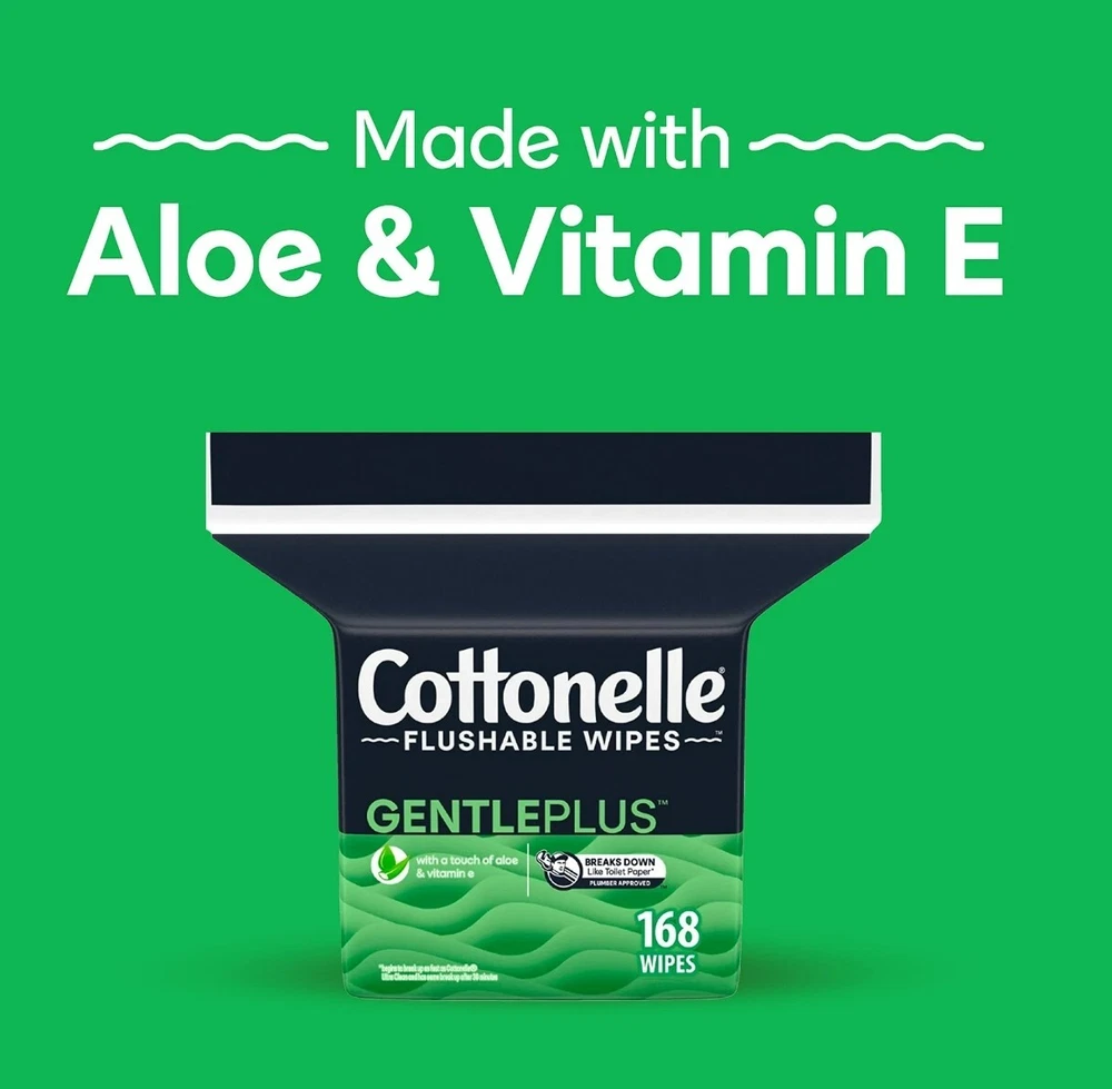 Cottonelle GentlePlus Flushable Wet Wipes with Aloe & Vitamin E Disheveled Pack