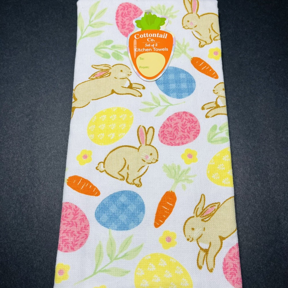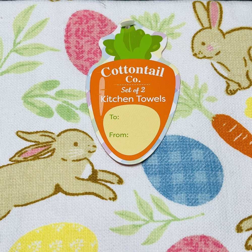 Cottontail 2 Pack Kitchen Hand Towels Easter Springtime Eggs Hopping Carrots NEW