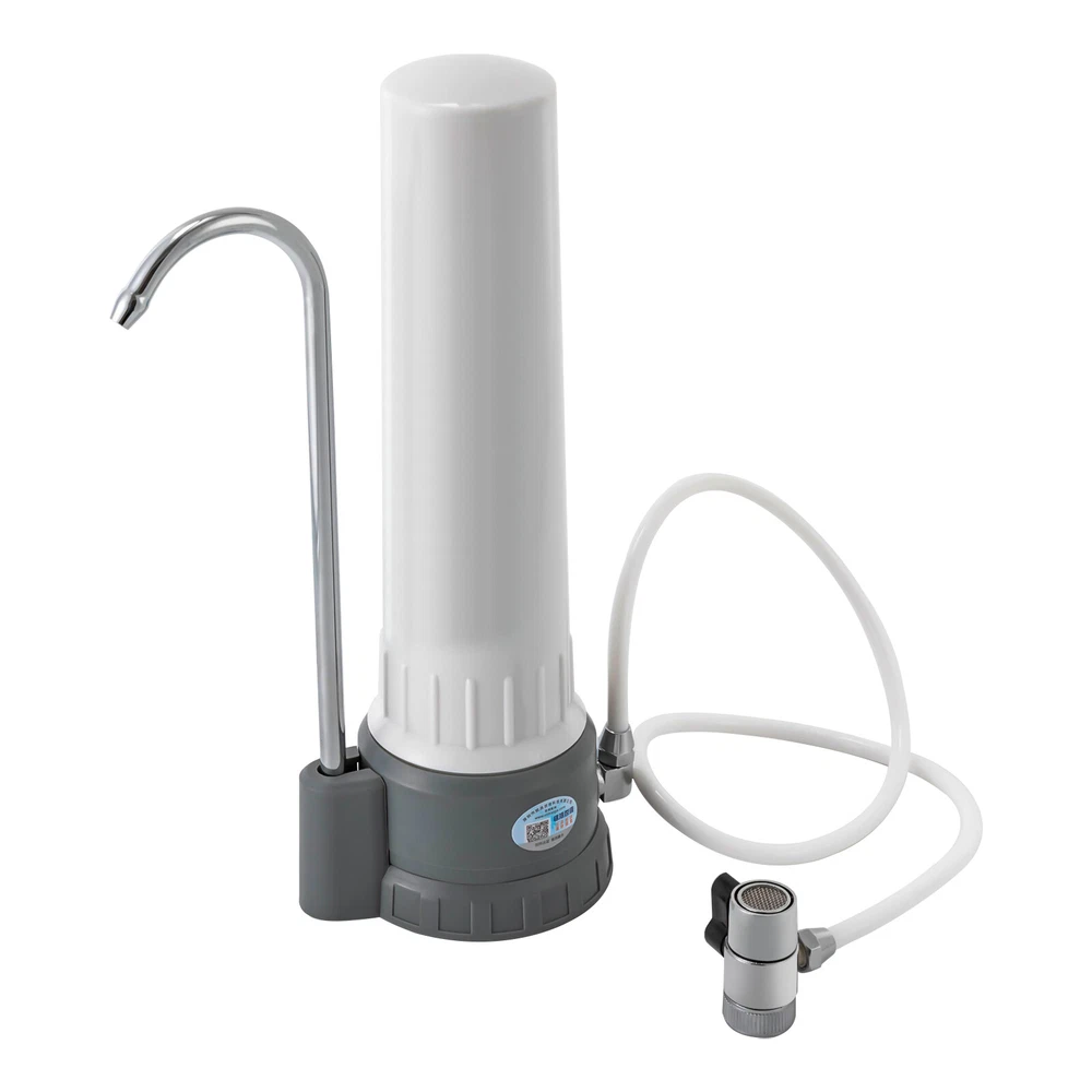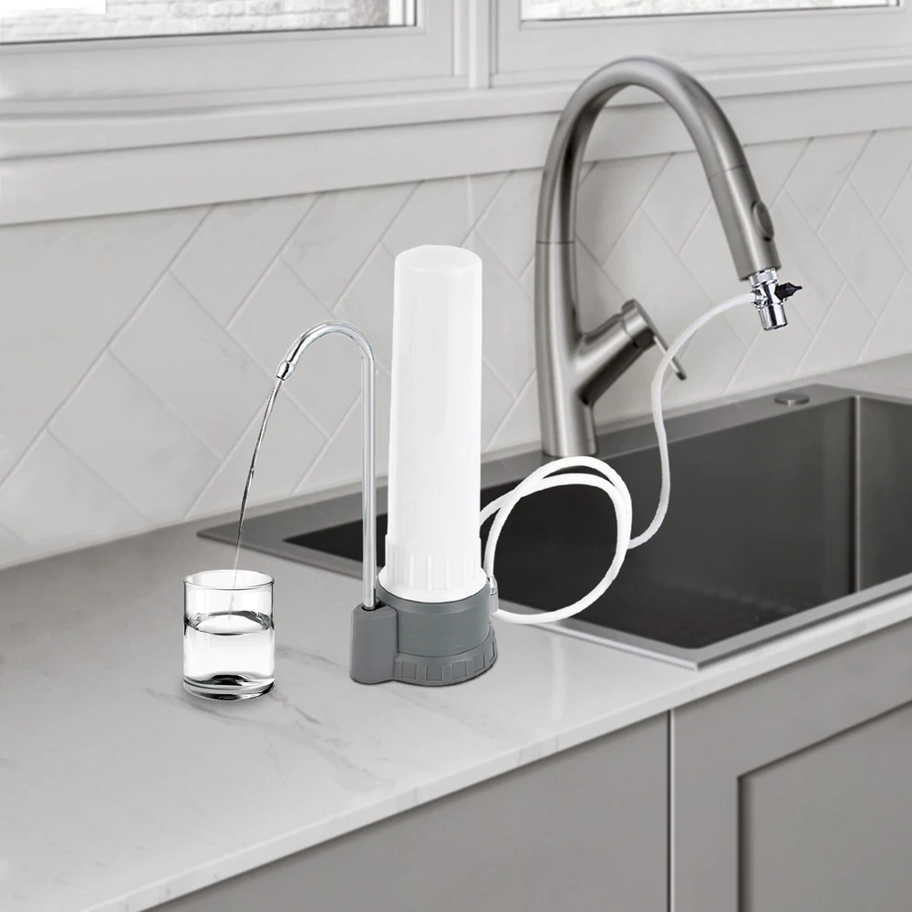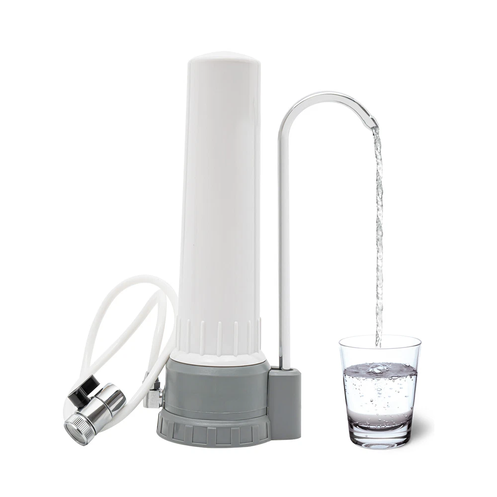 Countertop Water Filter Kitchen Bathroomr White Ceramic Water Filtration System Description Say goodbye to the hassle of bulky water dispensers and the constant need for bottled water. With our innovative countertop ceramic water filtration system, you can enjoy the luxury of fresh, filtered water directly from your tap. Its elegant design seamlessly blends with any kitchen decor, becoming a centerpiece of practicality and sophistication. Specifications Model No: UF320-A1/A2 Material: ABS, Stainless Steel, PP, PVC Color: White Shape: Columnar Water Flow Rate: ≤150L/39.6gal/H Filtration Precision: 0.1 Micron Applicable Water Pressure: 0.2-0.4MPA Applicable Water Source: Municipal Water Working Temperature: 5-40℃/41°F-104°F Installation Type: Countertop Power Source: Without Electricity Filter Cartridge: Sintered Carbon Ceramic Cartridge Gross Weight: 1.2kg/2.6 lbs Net Weight: 1.02kg/2.2 lbs Product Size(D*H): 12×31.5cm/4.72×12.4in Package Size: 34×14×14cm/13×5.5×5.5in Package Included 1* Countertop Water Filter 1* Colorimetric Card for Residual Chlorine 1* Chinese Manual All Accessories of Installation Key Features Multiple Filtration: It first adopts diatomaceous earth ceramic filter core to pre-treat the sediments, suspended solids, rust, red worms, colloids, and impurities in the water, and then further deeply filters the residual chemical pollutants in the water through high-quality activated carbon sintered charcoal rods, which effectively filters residual chlorine and odors in the tap water, and improves the taste of the water, making it sweet. Fashionable Appearance: The product adopts a white color with a simple and fashionable style. The smooth and simple lines can make it match well with any kind of room decoration. Good for Your Health: With the double-layer filtration, it not only makes you feel more at ease to drink, but also maintains calcium, magnesium, potassium and other minerals during the filtration process, which is good for your health. Energy-saving& Environmental-friendly : It can be used without plugging in and also reduces the use of plastic bottles, which not only saves you money but also contributes to environmental protection. Washable Cartridge: Washable cartridge not only avoids secondary pollution caused by the accumulation of impurities for a long time, but also saves money on consumables. Ideal Gift: Designed to revolutionize drinking water experience and keep healthy, this compact and stylish machine is a great choice as a gift for your friends and family. Build to Last: The stainless steel faucet is safe to use, corrosion and rust resistant , and the PVC inlet pipe has the advantage of low fluid friction resistance to withstand long periods of time. Easy Installation: It can be installed without drilling holes or hiring a plumber. Simple twist-on installation makes it easy to set up. Also, it connects easily to most standard kitchen taps and faucets. By twisting the switch, tap water and filtered water can be switched quickly. Guaranteed Customer Service: Our friendly customer service team would be happy to solve your issues with our landscape spotlights. If you have any issues, feel free to reach out to us. Details Clear Marking: The surface of the product comes with a sticker that clearly identifies the name and function of the cartridge, making it easy for you to replace and purchase the cartridge in the future. Stable ABS Base: The ABS base with a diameter of 4.2 inch allows for stable placement of the product. Application It is suitable for being installed in kitchens, bathrooms, caravans or offices y for cooking, drinking, cleaning and skin care. Also, it is suitable for countertop water filtration system. How to Install the Cartridge Step 1: Take the cartridge out and remove the protective film. Step 2: Remove the filter bottle by unscrewing it with a wrench. Step 3: Install the filter cartridge at the water purifier base. Step 4: Install the filter bottle onto the water purifier base and tighten it with the wrench again Step 5: Plug the water tap into the hole of the water elbow, the initial installation of the water purifier is complete! Notes When cleaning, please rotate out of the cartridge and then gently scrub the surface of the cartridge with sandpaper to clean the impurities, do not use detergent, chemical cleaning fluid, or wire ball to clean. Cleaning the filter cartridge normally can reduce secondary pollution and prolong the service life of the filter cartridge. Before use, please release 3-5 gallons of water to rinse the filter, which will better enhance the drinking experience If the faucet has an aerator, you need to remove the aerator to install the faucet water filter. Please allow the slight color difference caused by the shooting light and 1-3cm error due to manual measurement, and make sure you do not mind before you order. Payment Delivery details Terms of sales About us Contact us Payment We accept ebay payment 。 Fees such as import duties, taxes are not included in the item price or shipping costs. These charges are the buyer's responsibility. Delivery details Shipping: 2-9 working days to: USA Terms of sales We maintain high standards of excellence and strive for hundred percent customer satisfaction. Feedback is very important to us. We hope that you contact us immediately before you give neutral or negative feedback, so that we can address your concerns. It is impossible to address issues if we do not know about them! About us Your satis faction is our ultimate goal. We work hard to earn your trust and future business. Our certified technicians have tested each item before shipping. The unit comes with 1 year limited warranty on all manufacturing defects. a) If you receive a defective item, you may return it or ask for a discount. Please contact us within 14 days after you receive the package. b) What you returned must be intact and in its original packaging as re? u. Customer is responsible for shipping cos