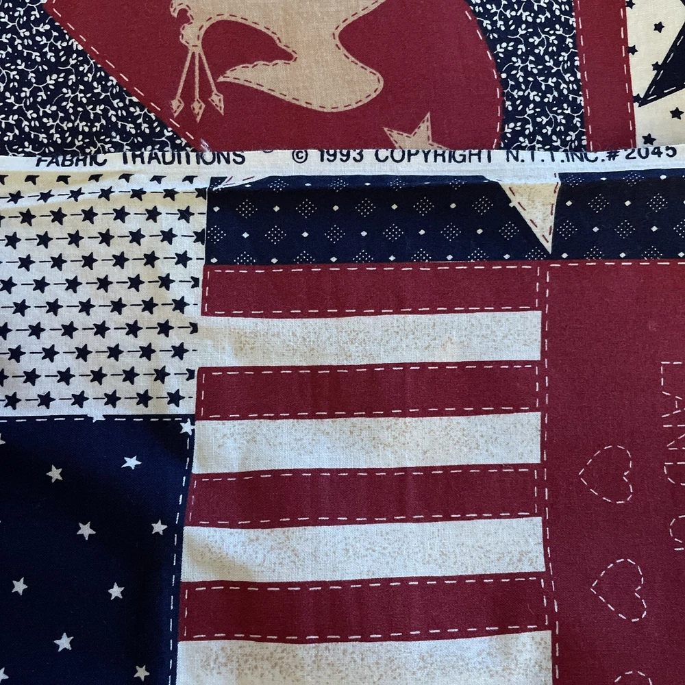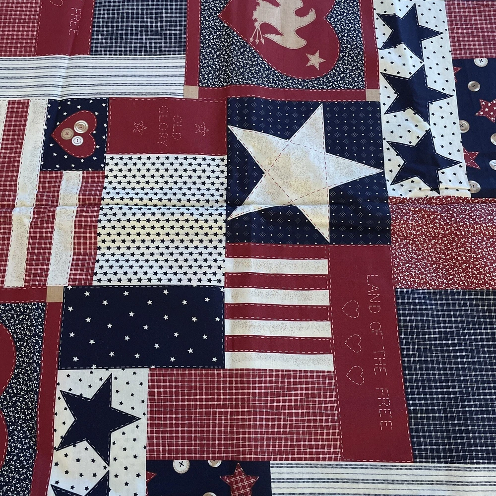 Country Americana Flag Stars Stripes Hearts Patchwork Fabric Traditions 1.5 Yard