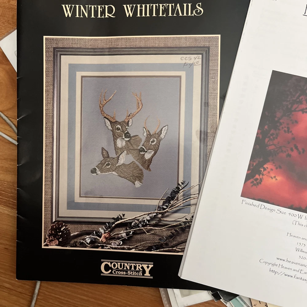 Country Cross Stitch Pattern Needlework Set of 3 Deer Trio 1) Heaven and Earth Designs-Natures Mourning Chart No HAEJUF 1244 Artwork by Julie Fainb 2009 (24 pages) 2) Winter Whitetails Country Cross Stitch Book 42 1987 Leaflet 3) Magazine Deer Afghan1994 2 pages