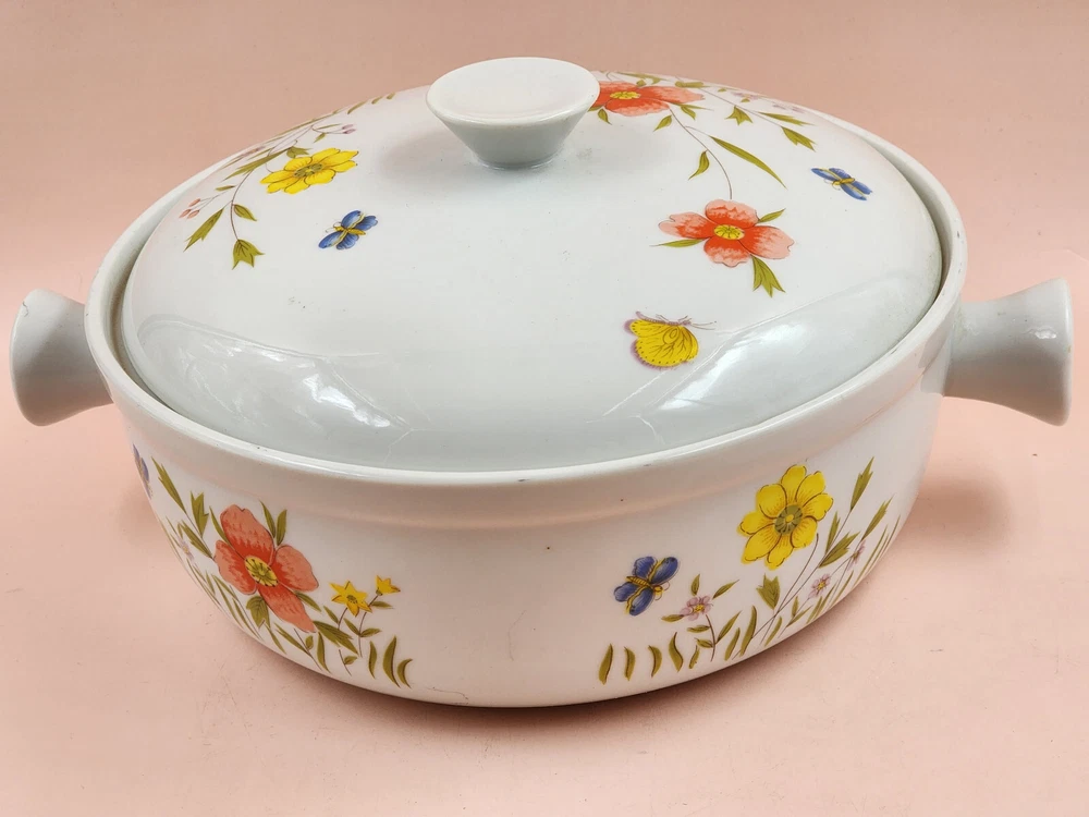 Country Flower Fine Seyei China 1 Qt Covered Casserole Oven to Table Cookware Good pre-owned oven to table 1 Qt casserole dish with lid. Use marks. No chips, cracks or breaks noted. See photos for condition detail. Beautiful addition to your table. Approximate measurements: Handle to handle: 9" Diameter: 7½" Height: 4"