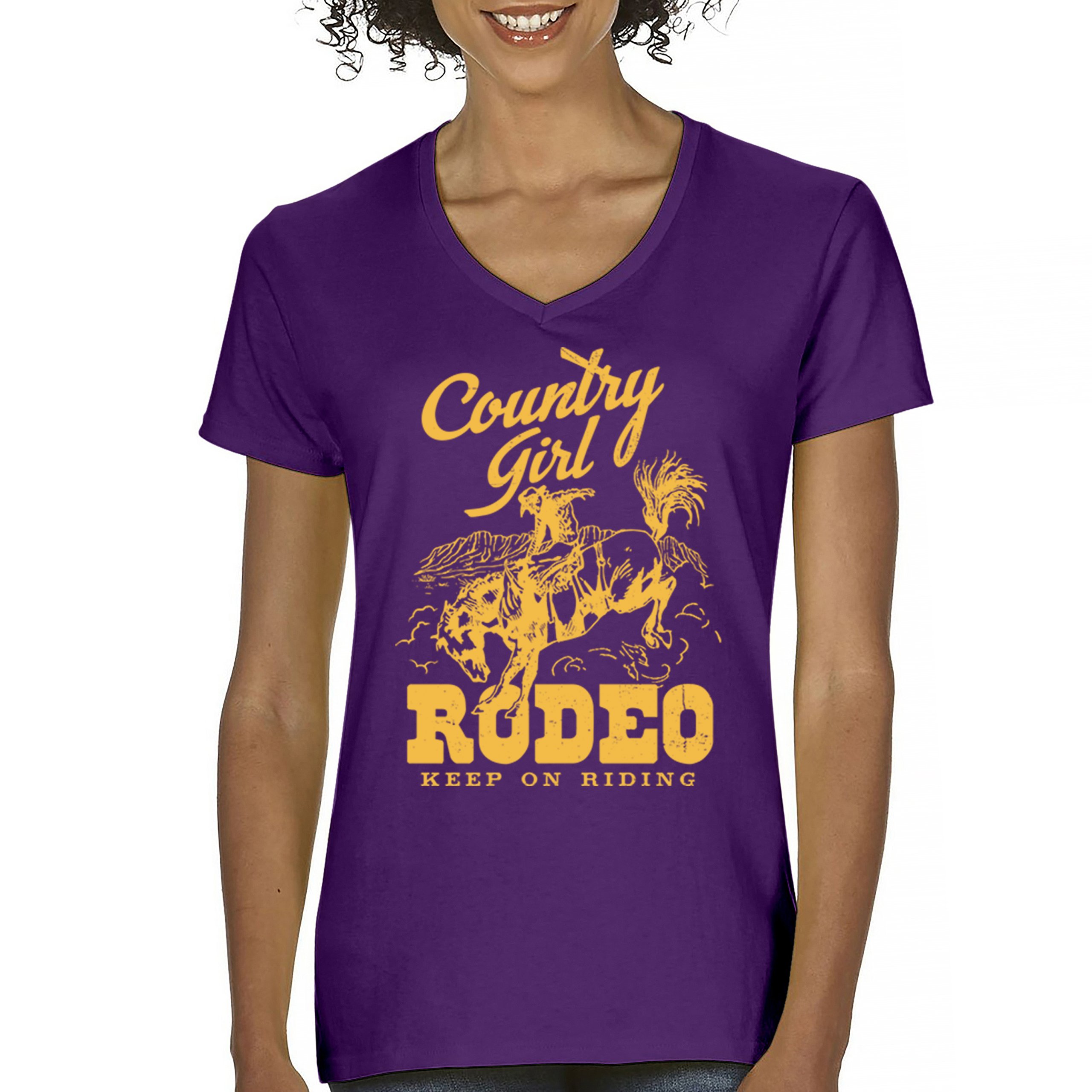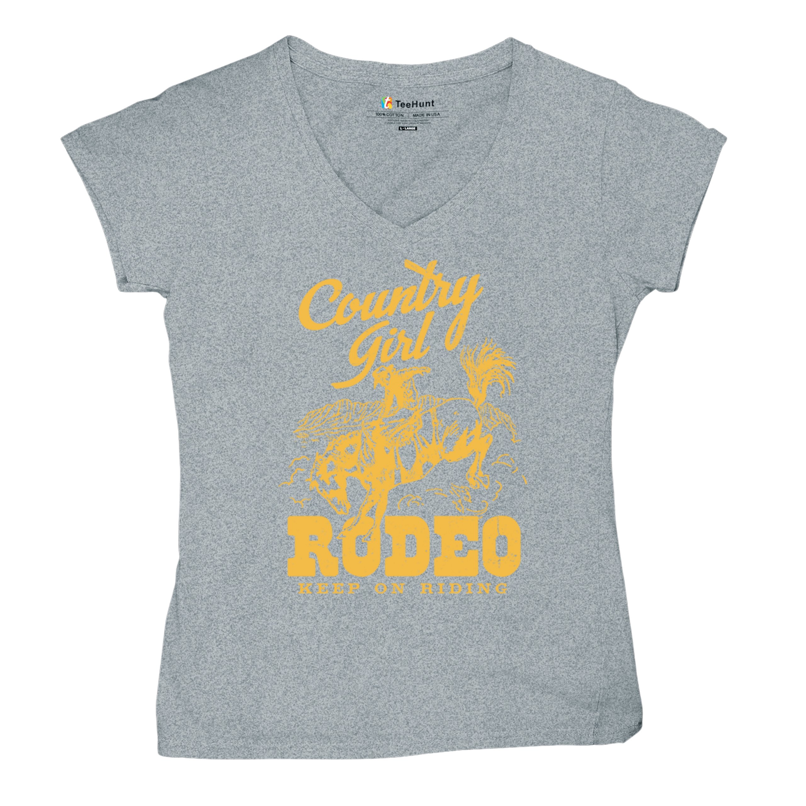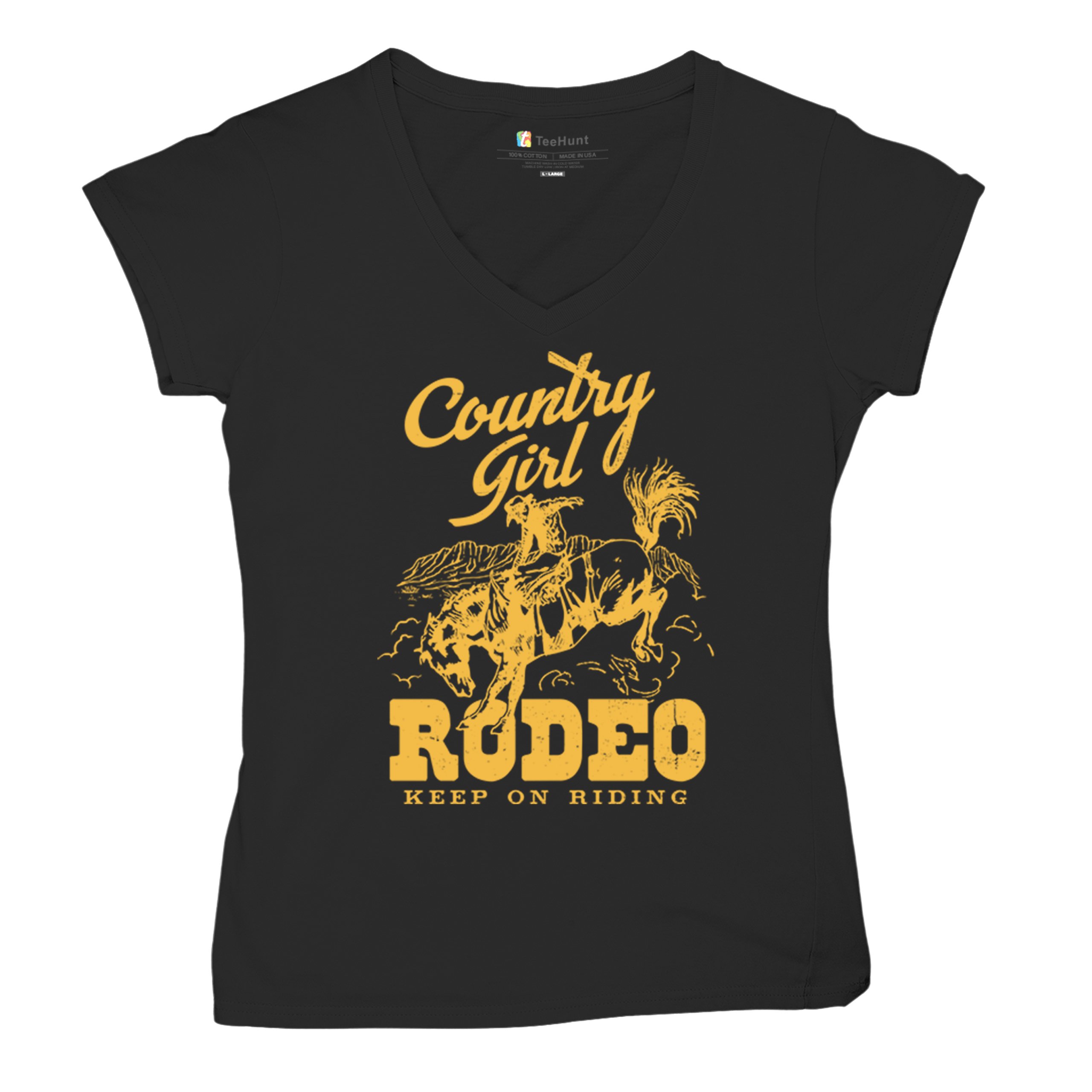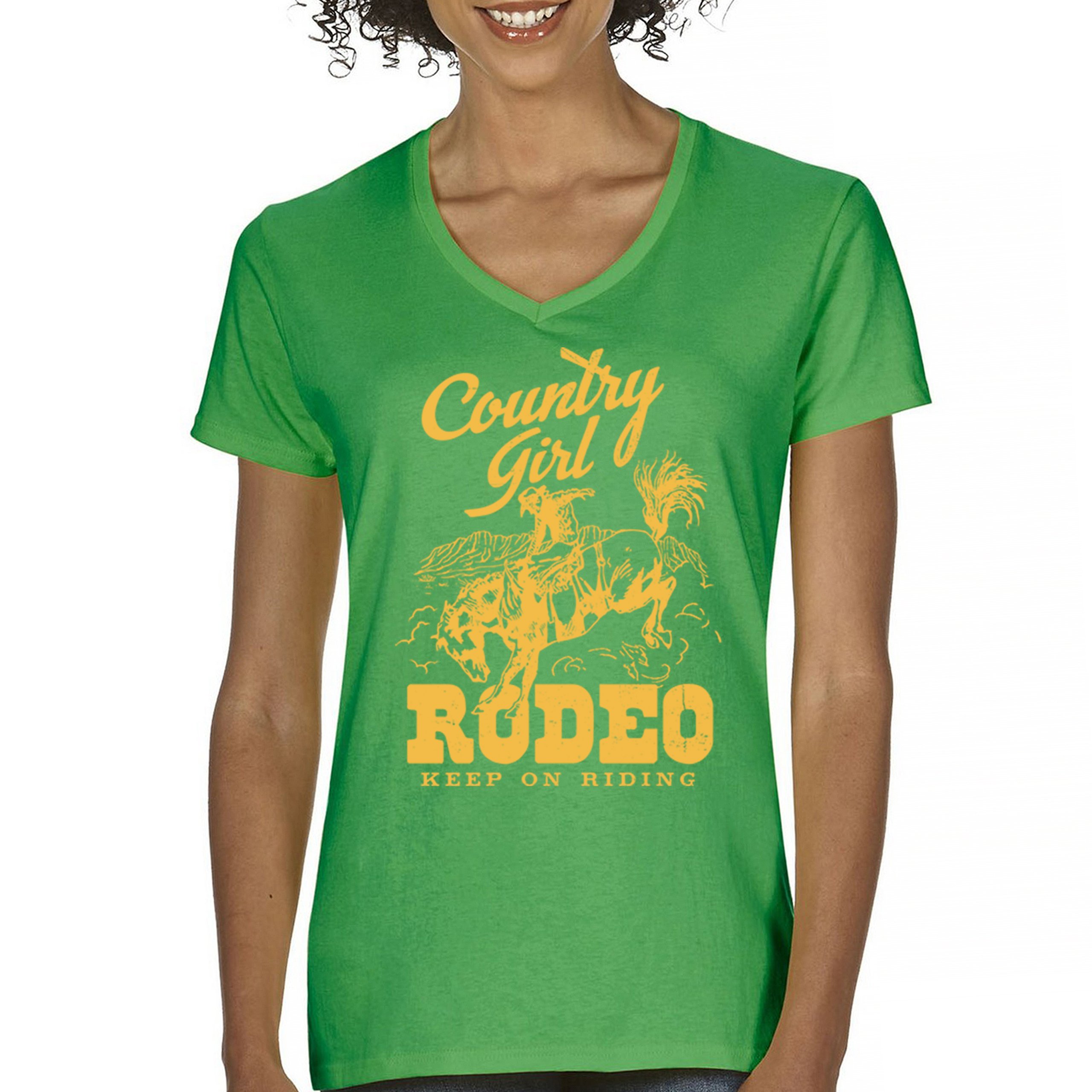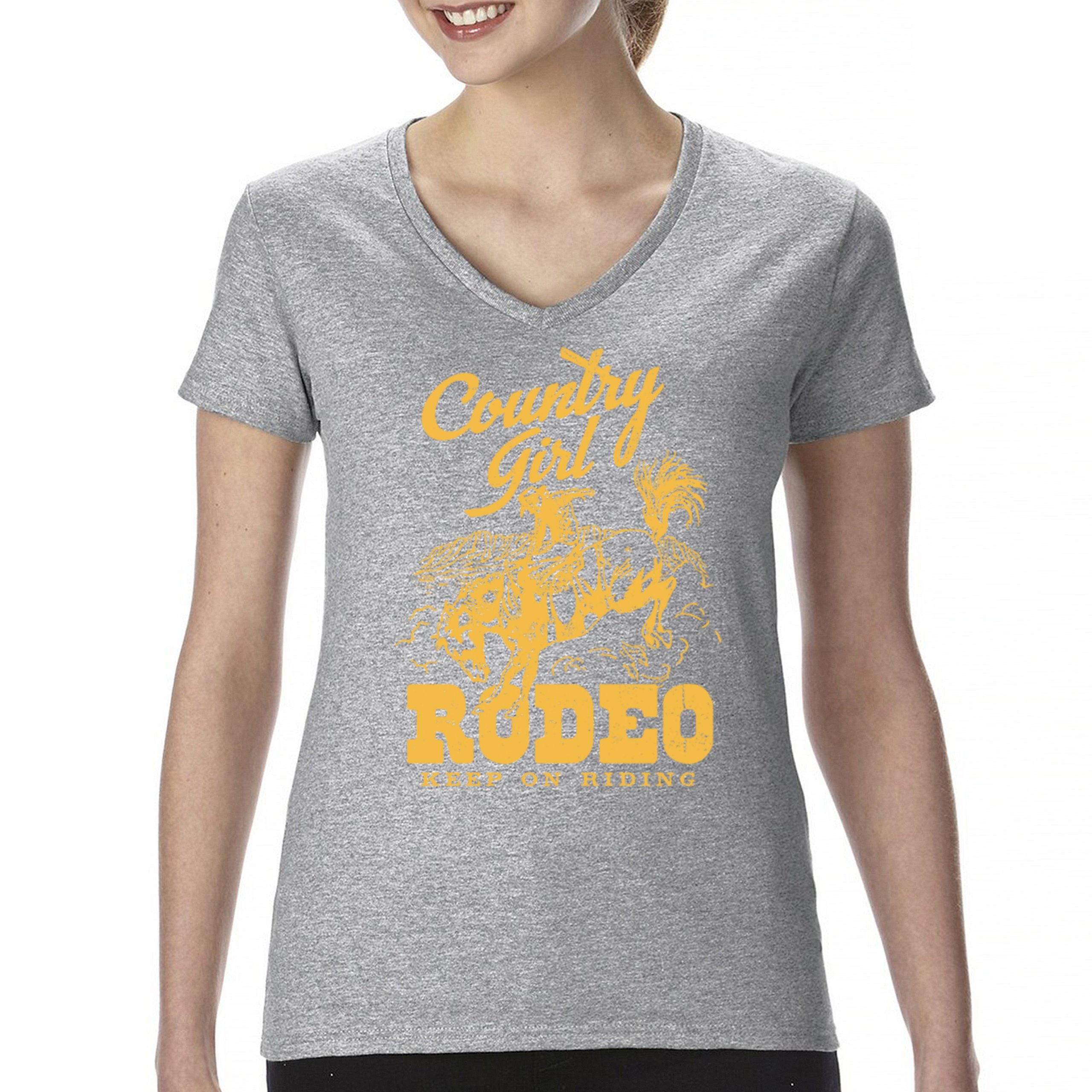 Fast & Free Shipping HIGH QUALITY 1 DAY HANDLING Country Girl Rodeo Women's V-Neck T-shirt Keep On Riding Western Cowgirl ITEM DESCRIPTION Brand New Ladies V-Neck T-Shirt High Quality Print Semi-fitted Contoured Silhouette 100% Pre-Shrunk Cotton Sport Grey : 90/10 cotton/polyester 1/2"" Mitered V-neck Collar Printed in the USA Also Available In WASHING INSTRUCTIONS: turn inside out and wash in cold water on a delicate cycle of your washing machine. Try to avoid dryer or set it on low heat. To minimize shrinkage we recommend to air dry. PLEASE NOTE: The print may appear smaller on larger sizes. Due to the many variations in monitors and browsers, actual colors may vary slightly from what appears online. PAYMENTS: We accept the following payment methods: Paypal, All Major Credit Cards (processed through eBay's Payment System, no account necessary). We do not ship package until the payment is cleared. if you have a problem with payment, please contact us. SHIPPING: We offer FREE domestic shipping within the continental US! Your order will be shipped within 1 business day of receiving payment (Monday-Friday) Shipping services we offer: Domestic Orders: USPS First Class Mail, Priority Mail and Express options. International Orders: USPS First Class Mail, Priority Mail and Express options. We are NOT responsible for any foreign customs duties or taxes. We do not refund postage for unclaimed, undeliverable or refused packages. If a package is returned as undeliverable unclaimed or refused, it is the customers responsibility to follow up with the postal carrier. In the very unlikely event that your item is lost or damaged during post, then WE are responsible and will issue either a full refund or replacement. RETURNS: If you are not completely satisfied with your purchase, you can return the item within 30 days and get a full refund if the item is defective, damaged, or an error is made on our end. If you would like to exchange the item, please contact us through eBay Messages. All returns must be initiated through eBay Returns System. If 30 days have gone by since your purchase, unfortunately we can’t offer you a refund or exchange. And returned item can be shipped back to customer at customers expense, or will be disposed within 7 days. To be eligible for a return, your item must be unused, unwashed and in the same condition that you received it. Custom made items (including custom images, writing or other customization requested by customer) are not eligible for a refund or exchange. Once your return is received and inspected, we will notify you of the approval or rejection of your refund. If approved, your refund will be processed, and a credit will automatically be applied to original method of payment, within 3-4 days. All payments and refunds are processed by eBay's Payment system. If a refund has been issued, but you do not see the funds in your account within 3-4 days, please contact eBay Support. You will be responsible for paying for your own shipping costs for returning your item. Shipping costs are non-refundable. if you receive a refund, the cost of return shipping will be deducted from your refund. Depending on where you live, the time it may take for your exchanged product to reach you, may vary. You should consider using a trackable shipping service or purchasing shipping insurance. We don’t guarantee that we will receive your returned item. Visit our ebay store to see more amazing items T-Shirts Sweatshirts Tank Tops
