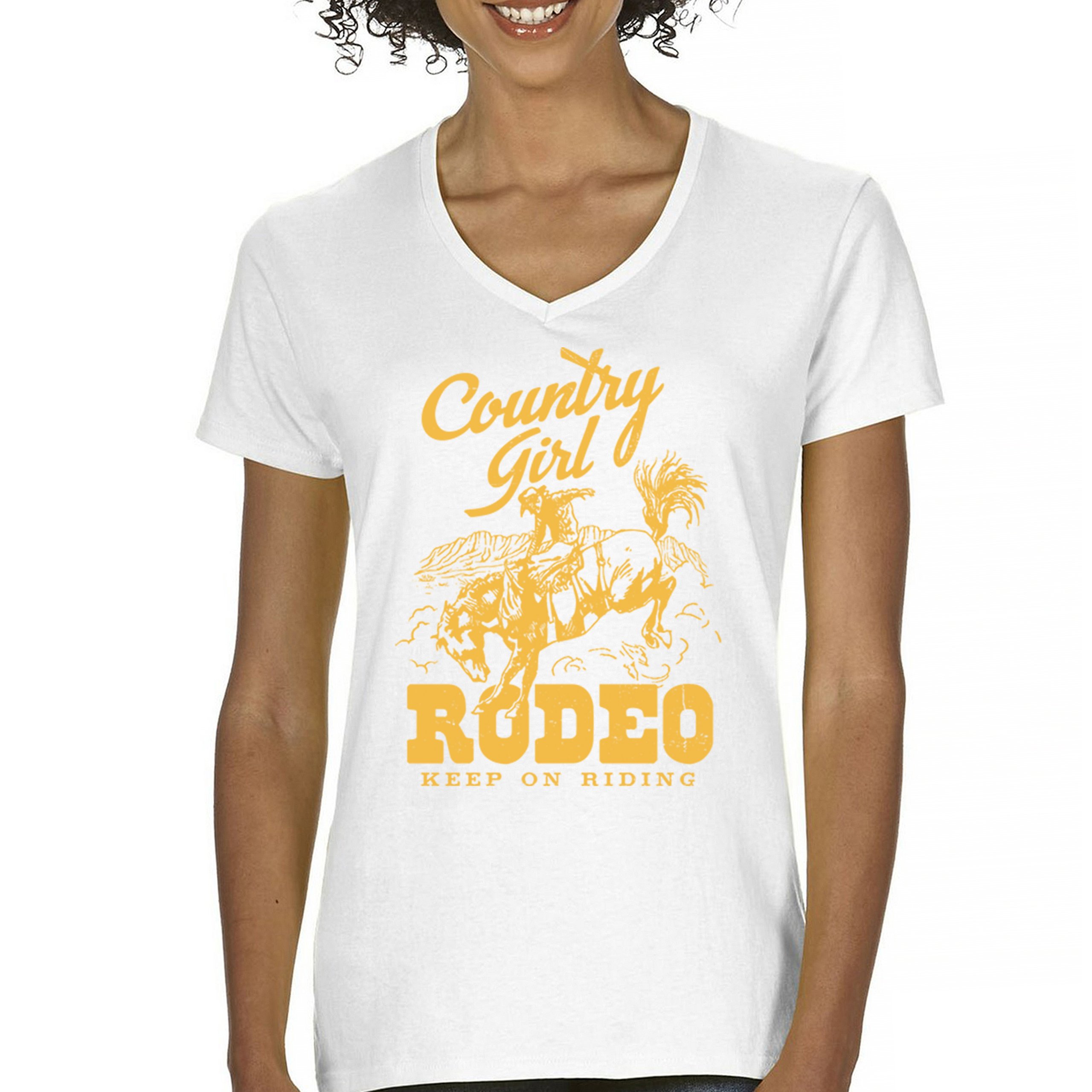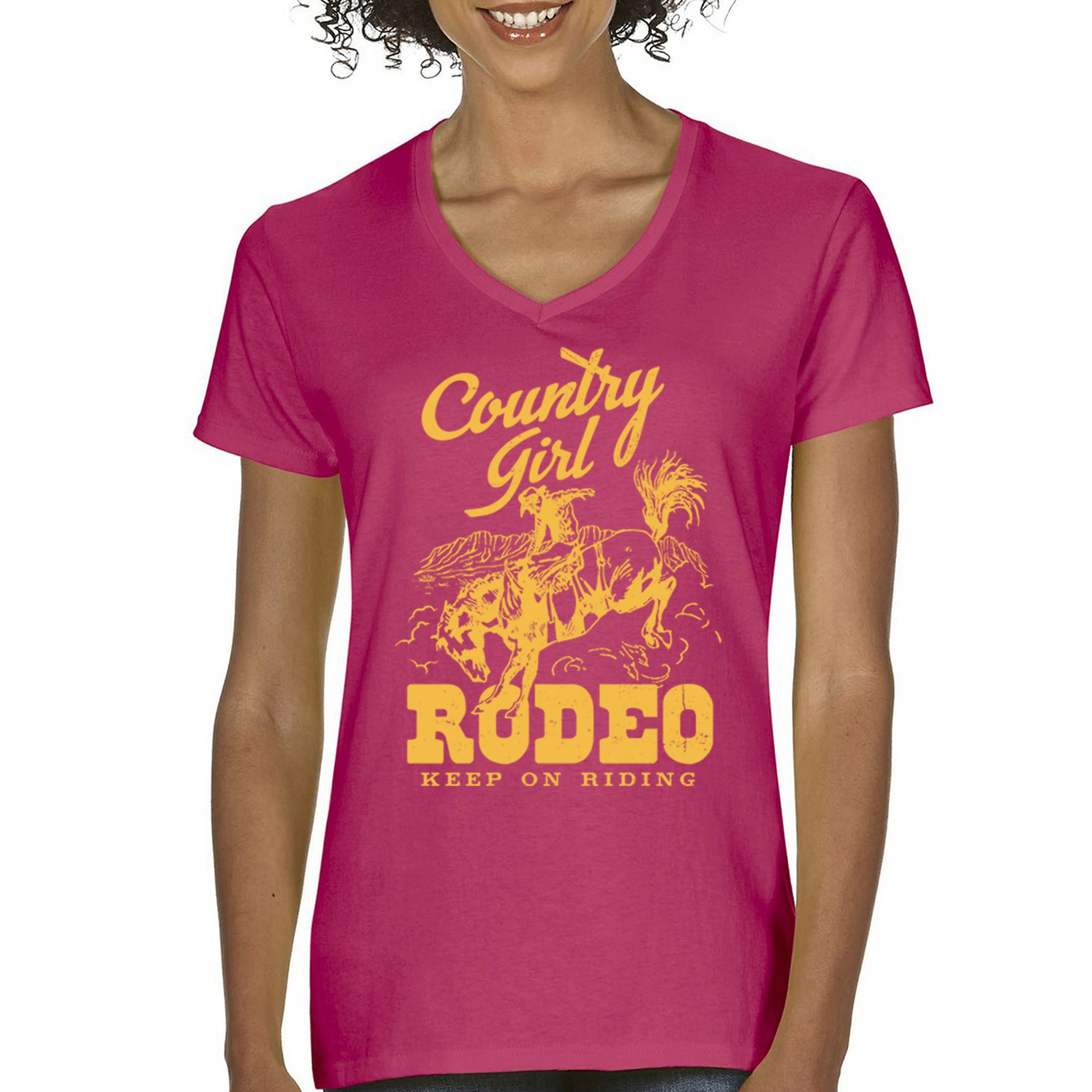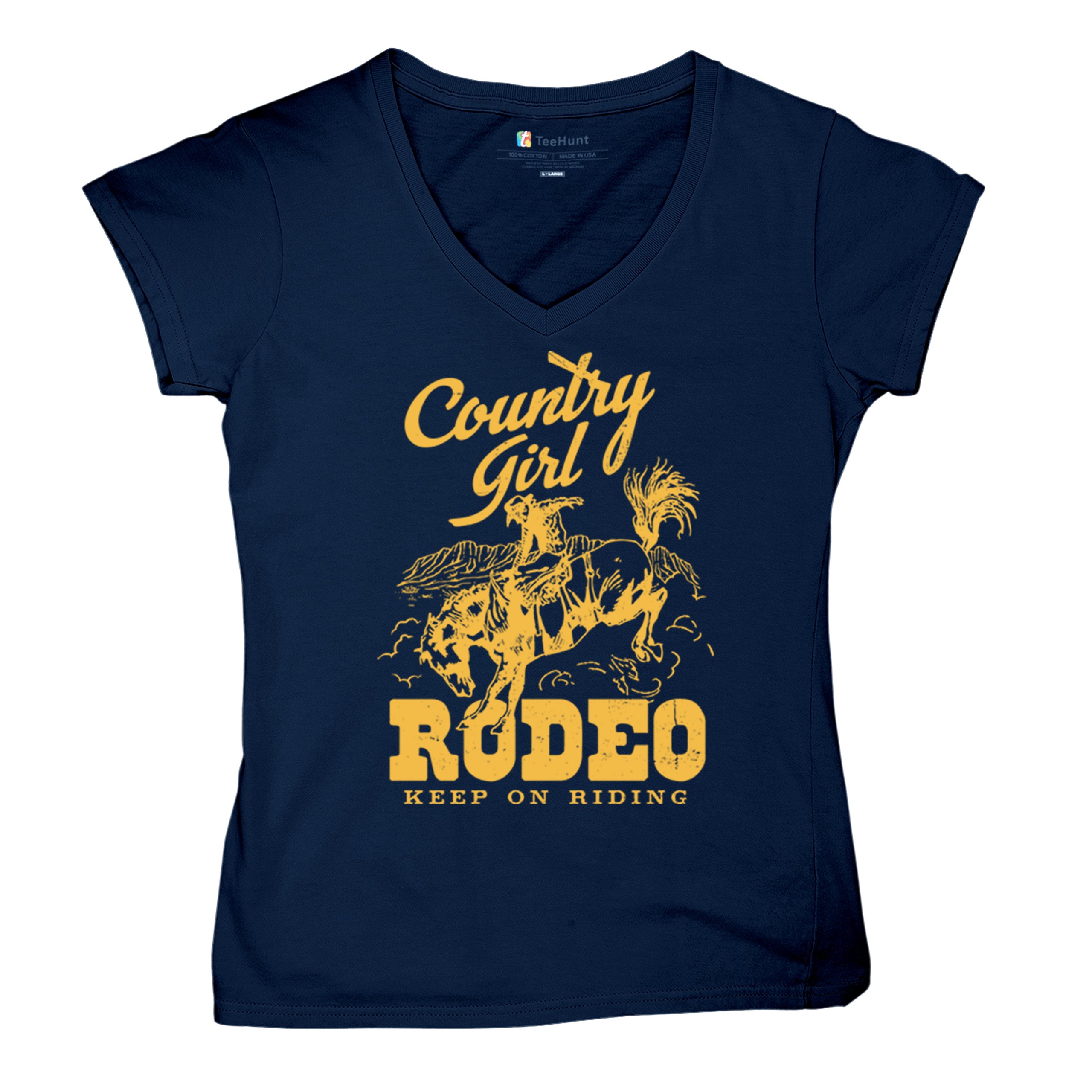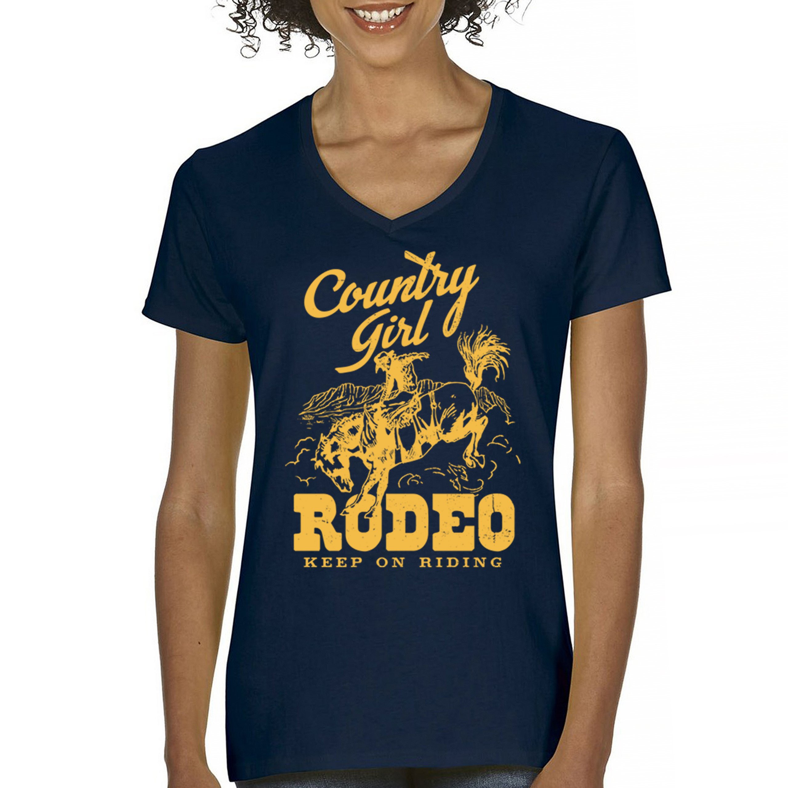 Fast & Free Shipping HIGH QUALITY 1 DAY HANDLING Country Girl Rodeo Women's V-Neck T-shirt Keep On Riding Western Cowgirl ITEM DESCRIPTION Brand New Ladies V-Neck T-Shirt High Quality Print Semi-fitted Contoured Silhouette 100% Pre-Shrunk Cotton Sport Grey : 90/10 cotton/polyester 1/2"" Mitered V-neck Collar Printed in the USA Also Available In WASHING INSTRUCTIONS: turn inside out and wash in cold water on a delicate cycle of your washing machine. Try to avoid dryer or set it on low heat. To minimize shrinkage we recommend to air dry. PLEASE NOTE: The print may appear smaller on larger sizes. Due to the many variations in monitors and browsers, actual colors may vary slightly from what appears online. PAYMENTS: We accept the following payment methods: Paypal, All Major Credit Cards (processed through eBay's Payment System, no account necessary). We do not ship package until the payment is cleared. if you have a problem with payment, please contact us. SHIPPING: We offer FREE domestic shipping within the continental US! Your order will be shipped within 1 business day of receiving payment (Monday-Friday) Shipping services we offer: Domestic Orders: USPS First Class Mail, Priority Mail and Express options. International Orders: USPS First Class Mail, Priority Mail and Express options. We are NOT responsible for any foreign customs duties or taxes. We do not refund postage for unclaimed, undeliverable or refused packages. If a package is returned as undeliverable unclaimed or refused, it is the customers responsibility to follow up with the postal carrier. In the very unlikely event that your item is lost or damaged during post, then WE are responsible and will issue either a full refund or replacement. RETURNS: If you are not completely satisfied with your purchase, you can return the item within 30 days and get a full refund if the item is defective, damaged, or an error is made on our end. If you would like to exchange the item, please contact us through eBay Messages. All returns must be initiated through eBay Returns System. If 30 days have gone by since your purchase, unfortunately we can’t offer you a refund or exchange. And returned item can be shipped back to customer at customers expense, or will be disposed within 7 days. To be eligible for a return, your item must be unused, unwashed and in the same condition that you received it. Custom made items (including custom images, writing or other customization requested by customer) are not eligible for a refund or exchange. Once your return is received and inspected, we will notify you of the approval or rejection of your refund. If approved, your refund will be processed, and a credit will automatically be applied to original method of payment, within 3-4 days. All payments and refunds are processed by eBay's Payment system. If a refund has been issued, but you do not see the funds in your account within 3-4 days, please contact eBay Support. You will be responsible for paying for your own shipping costs for returning your item. Shipping costs are non-refundable. if you receive a refund, the cost of return shipping will be deducted from your refund. Depending on where you live, the time it may take for your exchanged product to reach you, may vary. You should consider using a trackable shipping service or purchasing shipping insurance. We don’t guarantee that we will receive your returned item. Visit our ebay store to see more amazing items T-Shirts Sweatshirts Tank Tops
