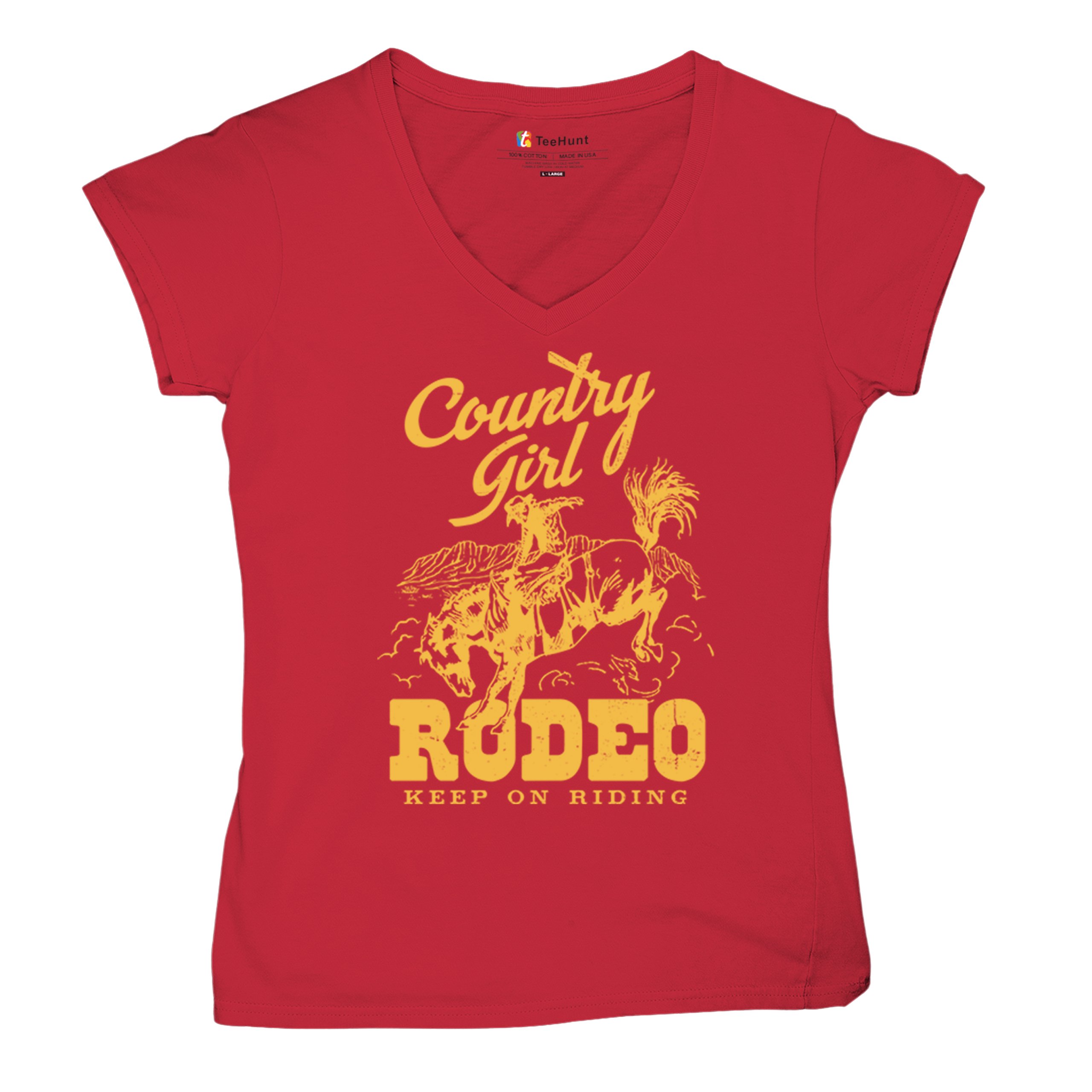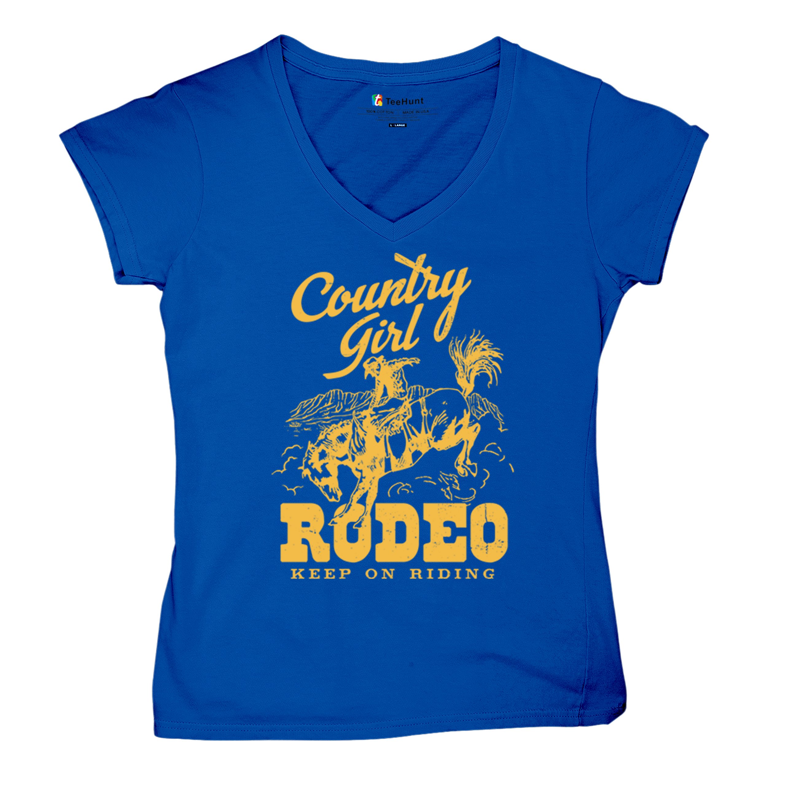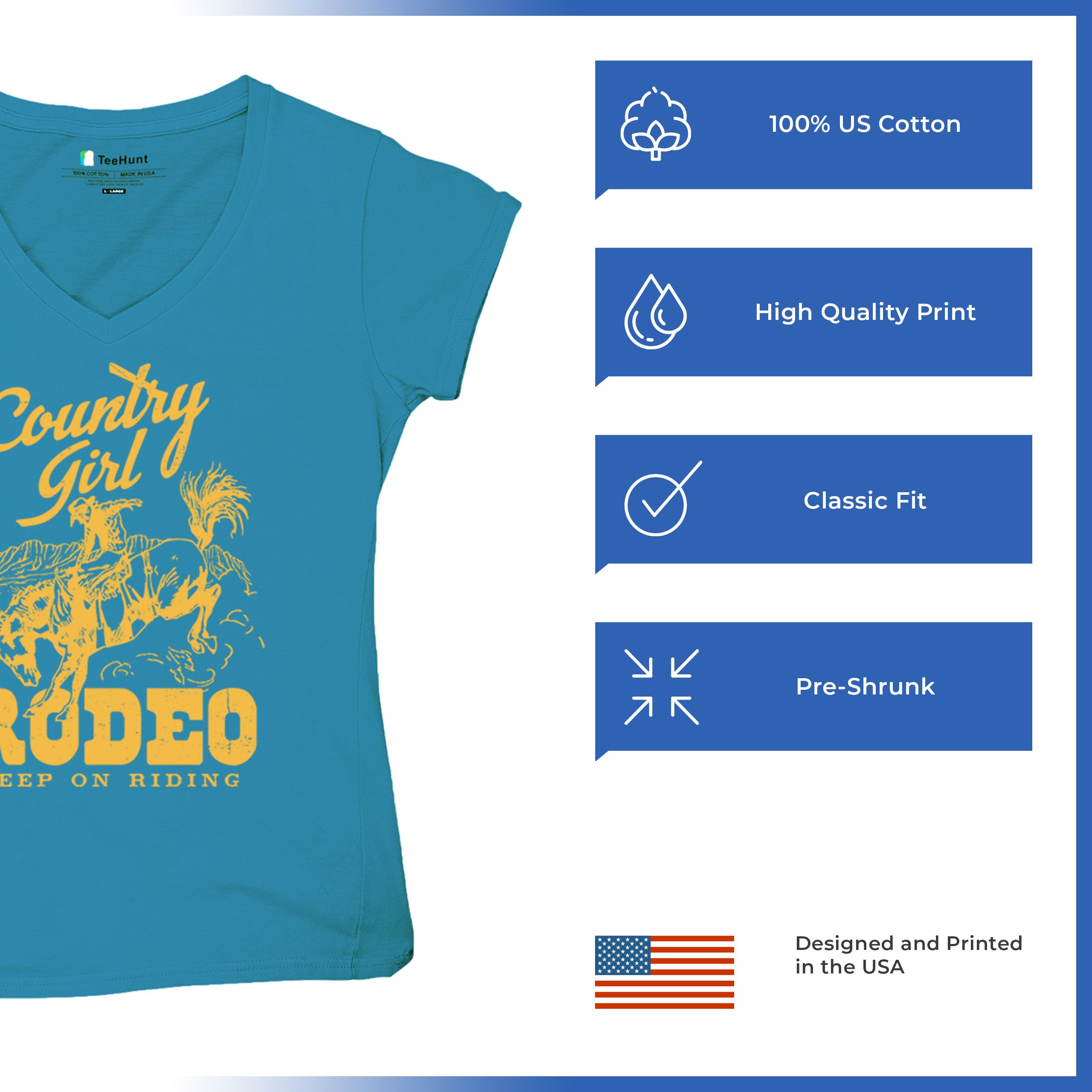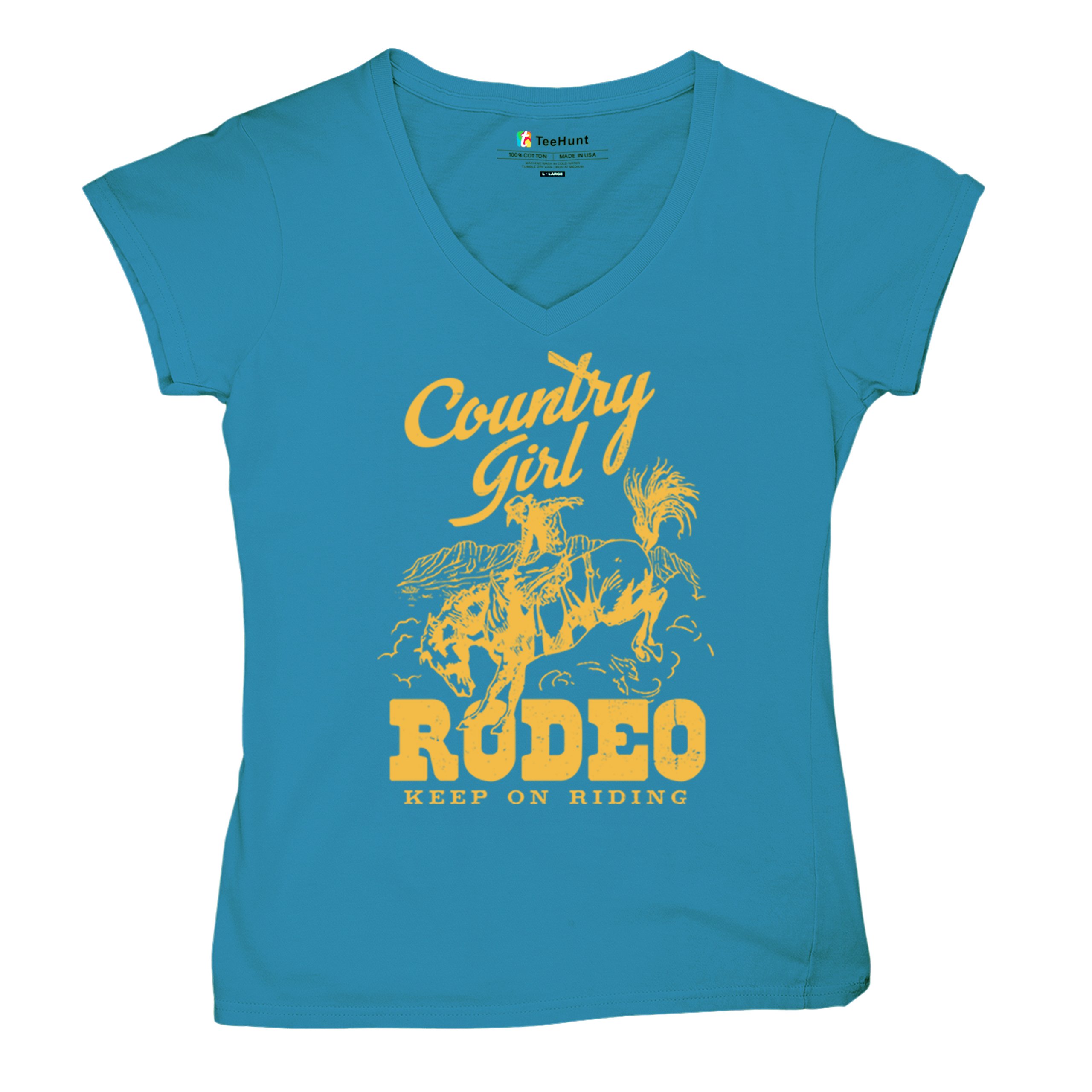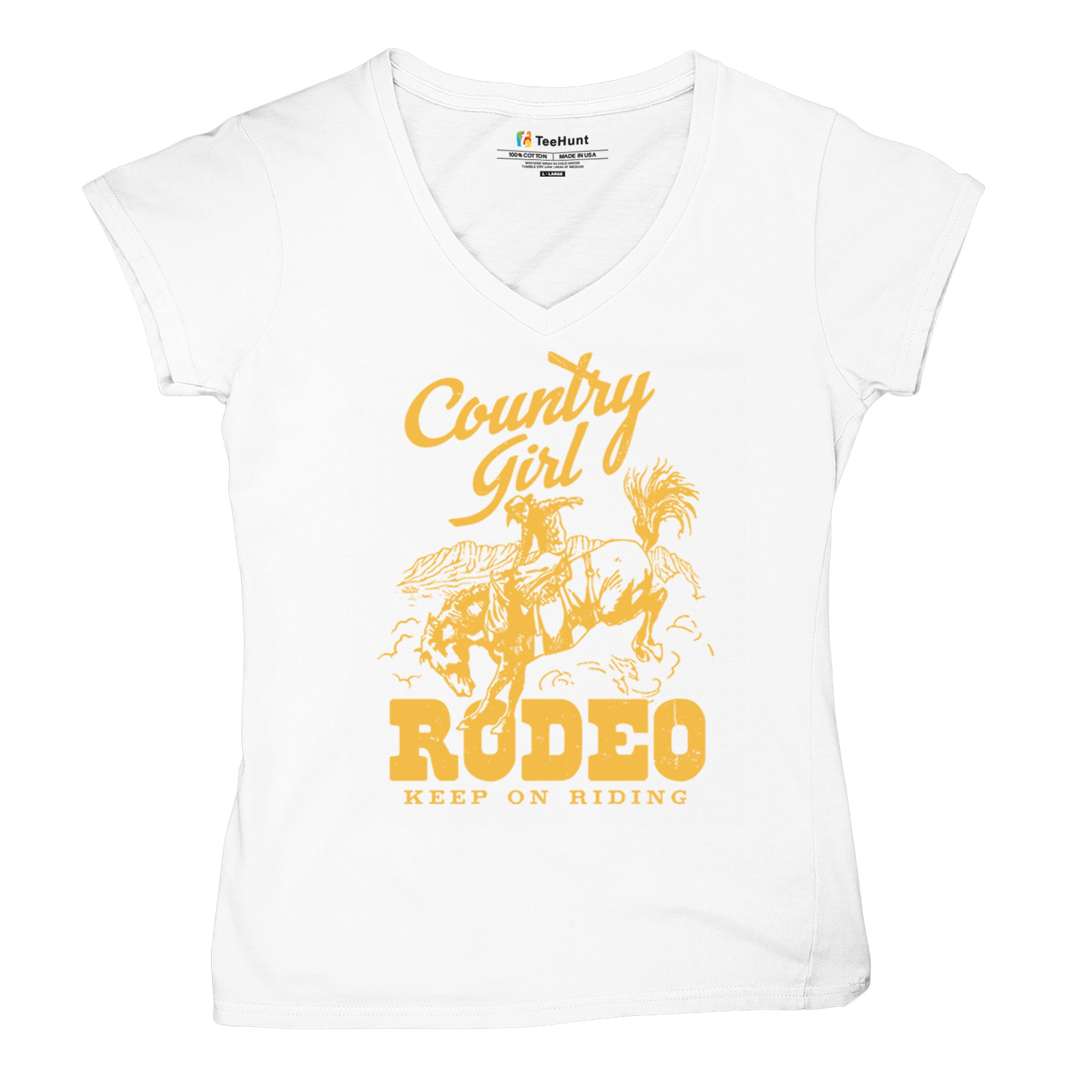 Fast & Free Shipping HIGH QUALITY 1 DAY HANDLING Country Girl Rodeo Women's V-Neck T-shirt Keep On Riding Western Cowgirl ITEM DESCRIPTION Brand New Ladies V-Neck T-Shirt High Quality Print Semi-fitted Contoured Silhouette 100% Pre-Shrunk Cotton Sport Grey : 90/10 cotton/polyester 1/2"" Mitered V-neck Collar Printed in the USA Also Available In WASHING INSTRUCTIONS: turn inside out and wash in cold water on a delicate cycle of your washing machine. Try to avoid dryer or set it on low heat. To minimize shrinkage we recommend to air dry. PLEASE NOTE: The print may appear smaller on larger sizes. Due to the many variations in monitors and browsers, actual colors may vary slightly from what appears online. PAYMENTS: We accept the following payment methods: Paypal, All Major Credit Cards (processed through eBay's Payment System, no account necessary). We do not ship package until the payment is cleared. if you have a problem with payment, please contact us. SHIPPING: We offer FREE domestic shipping within the continental US! Your order will be shipped within 1 business day of receiving payment (Monday-Friday) Shipping services we offer: Domestic Orders: USPS First Class Mail, Priority Mail and Express options. International Orders: USPS First Class Mail, Priority Mail and Express options. We are NOT responsible for any foreign customs duties or taxes. We do not refund postage for unclaimed, undeliverable or refused packages. If a package is returned as undeliverable unclaimed or refused, it is the customers responsibility to follow up with the postal carrier. In the very unlikely event that your item is lost or damaged during post, then WE are responsible and will issue either a full refund or replacement. RETURNS: If you are not completely satisfied with your purchase, you can return the item within 30 days and get a full refund if the item is defective, damaged, or an error is made on our end. If you would like to exchange the item, please contact us through eBay Messages. All returns must be initiated through eBay Returns System. If 30 days have gone by since your purchase, unfortunately we can’t offer you a refund or exchange. And returned item can be shipped back to customer at customers expense, or will be disposed within 7 days. To be eligible for a return, your item must be unused, unwashed and in the same condition that you received it. Custom made items (including custom images, writing or other customization requested by customer) are not eligible for a refund or exchange. Once your return is received and inspected, we will notify you of the approval or rejection of your refund. If approved, your refund will be processed, and a credit will automatically be applied to original method of payment, within 3-4 days. All payments and refunds are processed by eBay's Payment system. If a refund has been issued, but you do not see the funds in your account within 3-4 days, please contact eBay Support. You will be responsible for paying for your own shipping costs for returning your item. Shipping costs are non-refundable. if you receive a refund, the cost of return shipping will be deducted from your refund. Depending on where you live, the time it may take for your exchanged product to reach you, may vary. You should consider using a trackable shipping service or purchasing shipping insurance. We don’t guarantee that we will receive your returned item. Visit our ebay store to see more amazing items T-Shirts Sweatshirts Tank Tops