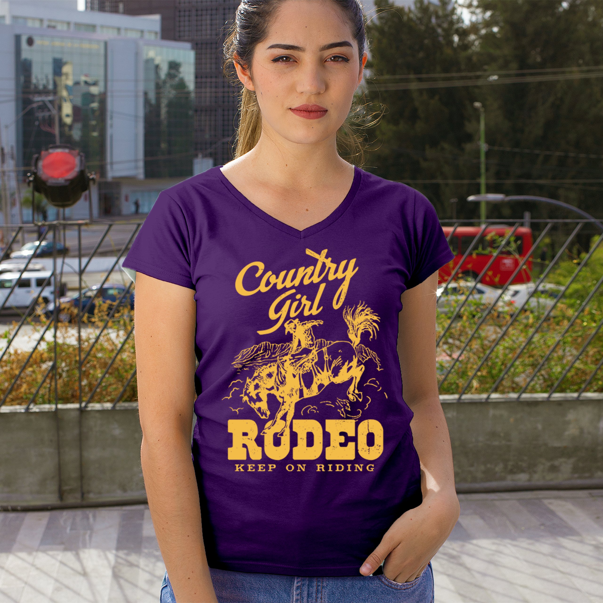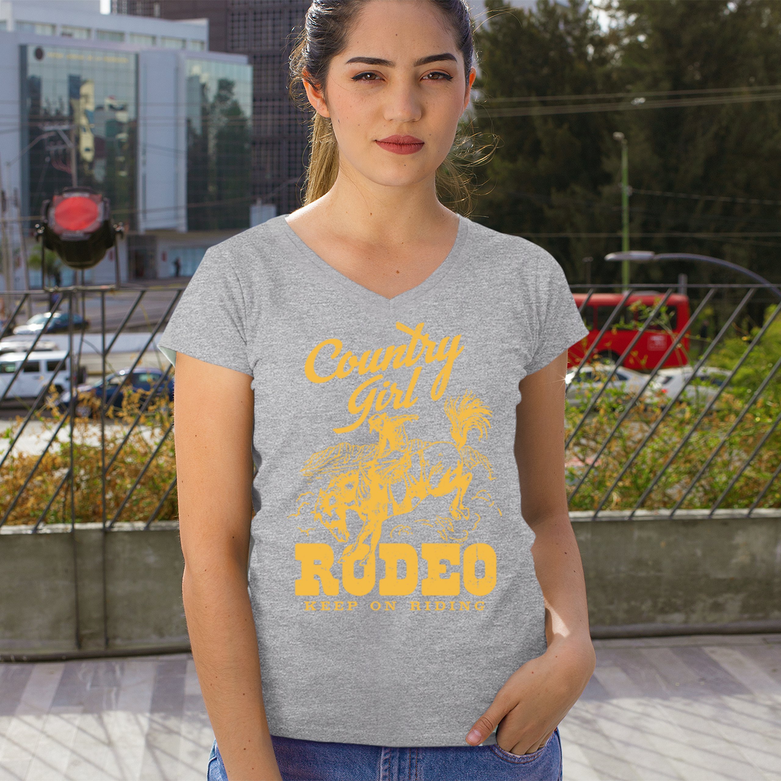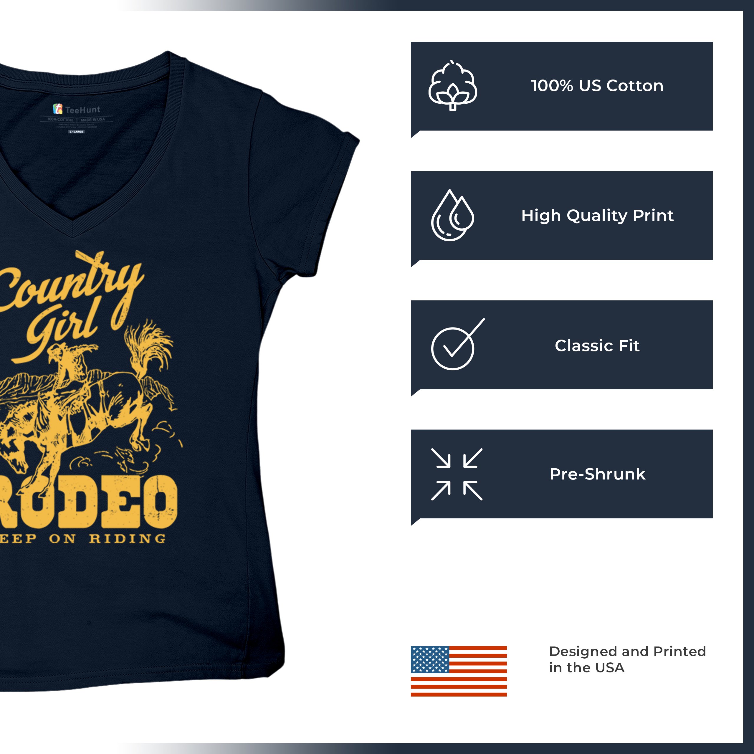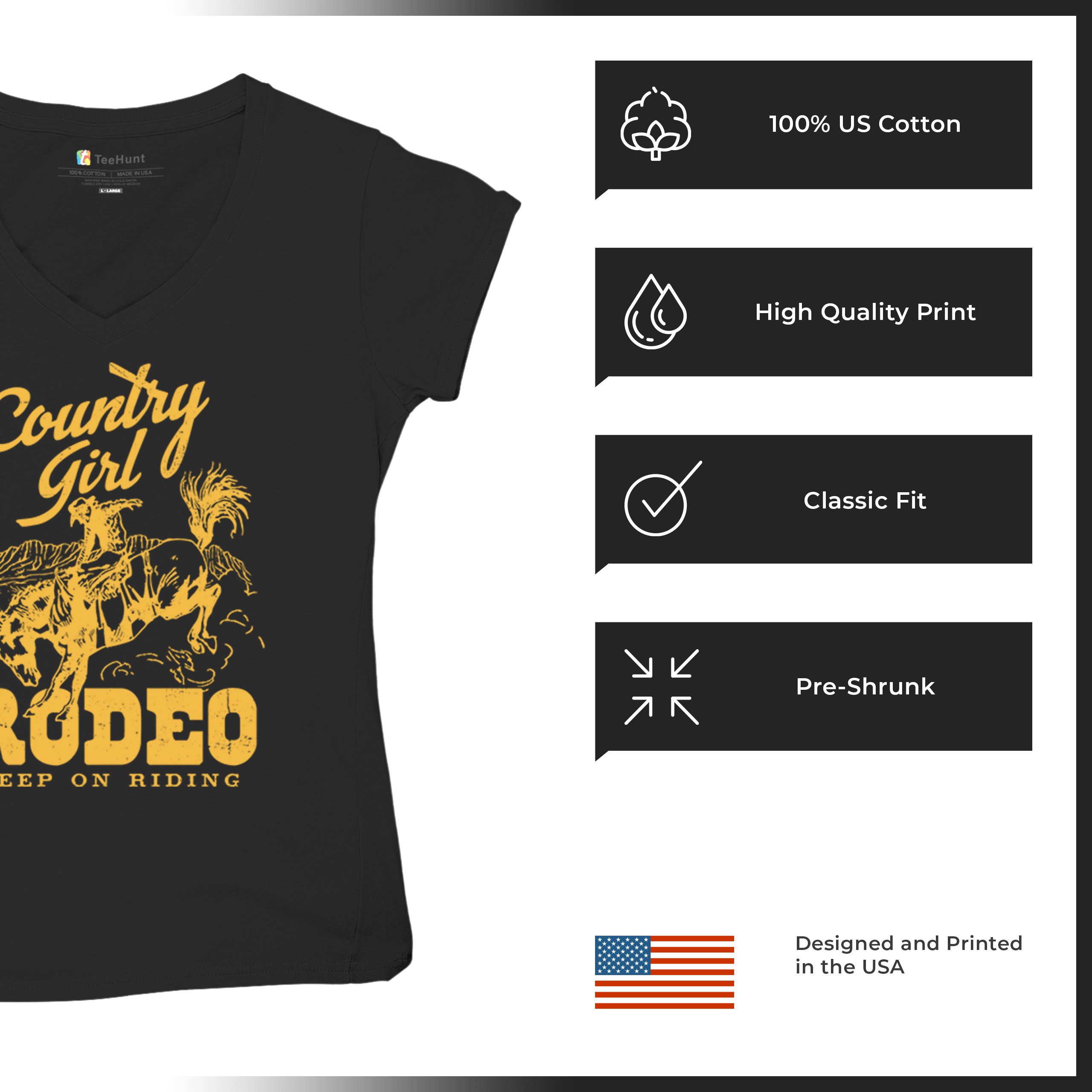 Fast & Free Shipping HIGH QUALITY 1 DAY HANDLING Country Girl Rodeo Women's V-Neck T-shirt Keep On Riding Western Cowgirl ITEM DESCRIPTION Brand New Ladies V-Neck T-Shirt High Quality Print Semi-fitted Contoured Silhouette 100% Pre-Shrunk Cotton Sport Grey : 90/10 cotton/polyester 1/2"" Mitered V-neck Collar Printed in the USA Also Available In WASHING INSTRUCTIONS: turn inside out and wash in cold water on a delicate cycle of your washing machine. Try to avoid dryer or set it on low heat. To minimize shrinkage we recommend to air dry. PLEASE NOTE: The print may appear smaller on larger sizes. Due to the many variations in monitors and browsers, actual colors may vary slightly from what appears online. PAYMENTS: We accept the following payment methods: Paypal, All Major Credit Cards (processed through eBay's Payment System, no account necessary). We do not ship package until the payment is cleared. if you have a problem with payment, please contact us. SHIPPING: We offer FREE domestic shipping within the continental US! Your order will be shipped within 1 business day of receiving payment (Monday-Friday) Shipping services we offer: Domestic Orders: USPS First Class Mail, Priority Mail and Express options. International Orders: USPS First Class Mail, Priority Mail and Express options. We are NOT responsible for any foreign customs duties or taxes. We do not refund postage for unclaimed, undeliverable or refused packages. If a package is returned as undeliverable unclaimed or refused, it is the customers responsibility to follow up with the postal carrier. In the very unlikely event that your item is lost or damaged during post, then WE are responsible and will issue either a full refund or replacement. RETURNS: If you are not completely satisfied with your purchase, you can return the item within 30 days and get a full refund if the item is defective, damaged, or an error is made on our end. If you would like to exchange the item, please contact us through eBay Messages. All returns must be initiated through eBay Returns System. If 30 days have gone by since your purchase, unfortunately we can’t offer you a refund or exchange. And returned item can be shipped back to customer at customers expense, or will be disposed within 7 days. To be eligible for a return, your item must be unused, unwashed and in the same condition that you received it. Custom made items (including custom images, writing or other customization requested by customer) are not eligible for a refund or exchange. Once your return is received and inspected, we will notify you of the approval or rejection of your refund. If approved, your refund will be processed, and a credit will automatically be applied to original method of payment, within 3-4 days. All payments and refunds are processed by eBay's Payment system. If a refund has been issued, but you do not see the funds in your account within 3-4 days, please contact eBay Support. You will be responsible for paying for your own shipping costs for returning your item. Shipping costs are non-refundable. if you receive a refund, the cost of return shipping will be deducted from your refund. Depending on where you live, the time it may take for your exchanged product to reach you, may vary. You should consider using a trackable shipping service or purchasing shipping insurance. We don’t guarantee that we will receive your returned item. Visit our ebay store to see more amazing items T-Shirts Sweatshirts Tank Tops