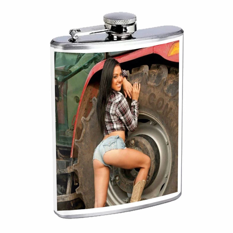 Country Pin Up Girls D1 Flask 8oz Stainless Steel Hip Drinking Whiskey