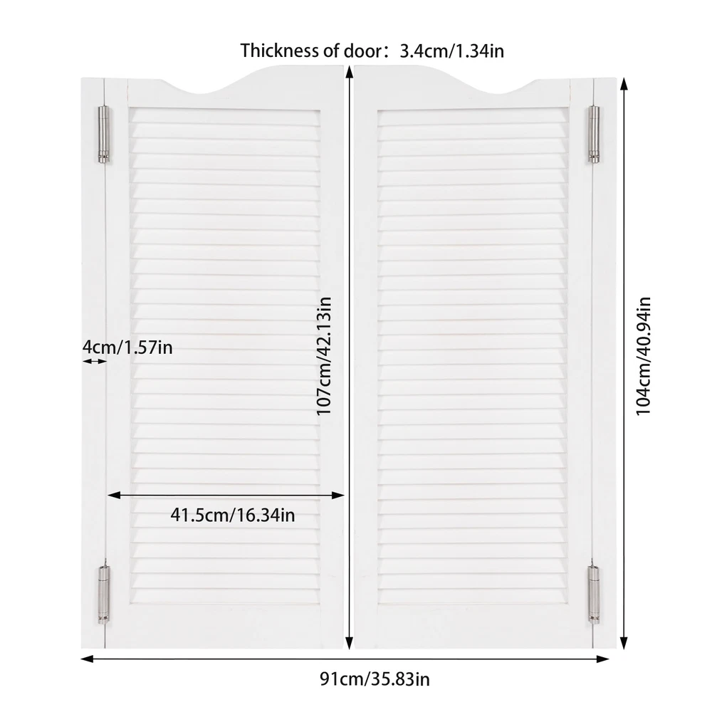 Countryside Double Half Door Double-hinged Café Door With Hinges Welcom to yybshop06 Description Entering an extraordinary space, the magic of space is brought by our double-door . Our product combines aesthetics and practical functionality to help you easily plan your room layout. The product uses high-quality materials to provide you with a safe and healthy environment. Rural style design can adapt to various decoration styles and enhance the overall style. Upgrade now and enjoy a high-quality life! Key Features Sturdy and Reliable: The product is mainly made of high-quality pine wood, which is high-strength, wear-resistant, and long-lasting and does not release harmful substances, allowing you and your family to use it with assurance. User-friendly Design: The design of the double door can open and close 180 degrees without rebounding, bringing more convenience to use. In addition, the smooth hinges do not make too much noise, providing you with a quiet working or resting environment. Useful Assistant: It is an entrance door to provide privacy for your bar counters, corridors, gardens, etc., isolating them from outside disturbances. It can also be used to divide the space into different functional areas, making the layout logical and practical. Aesthetic Appearance: The pleasing white color and louver patterns give it a comfortable and aesthetic visual experience, adding a natural atmosphere to the indoor space. Simple Installation: Simple construction and complete accessories allow you to complete the installation and start using it in a short time. Easy Clean-Up : The surface of the product is smooth and the structure is simple. You can easily use a soft cloth to wipe it clean. Ideal Gift: With a fresh appearance and complete functions, this item can be regarded as a holiday or housewarming gift for parents, friends, and lovers so that they can enjoy a more convenient life. Customer Service: We aim to provide quality products and services. If you have problems, please feel free to contact us. We will reply and solve the problem for you as soon as possible. Details Solid Doorposts: It is convenient for you to install and can also prevent damage to the wall. Reserved Grooves: They can help you quickly determine the hinge position and ensure a stable installation. Application This product can be widely used in corridors, kitchens, clubs, libraries, checkout counters, offices, cafes, shopping malls, bars, reception rooms, clubs, living rooms, balconies, terraces, and other scenarios. Installation Steps for Hinges 1. Hands-on the doorpost to make holes in the wall and install expansion bolts. 2. Fasten the hinges to the doorpost and the door. 3. Insert an Allen key into the adjustment hole to each hinge, and insert the pin. 4. Adjust the bottom hinge in the same way. 5. All hinges must be installed at the same time. Specification Color: White Style: Countryside Material: Pine Wood, Aluminum Alloy Process: Polishing, Painting Indoor/Outdoor Use: Indoor Installation Required: Yes Mount Type: Wall-Mounted Each Doorpost Size: 4*3.4*104cm/1.57*1.34*40.94in Total Width: 91cm/35.83in Each Door Size: 41.5*3.4*107cm/16.34*1.34*42.13in Package Size: 108*50*8cm/42.52*19.69*3.15in Gross Weight: 15kg/33.07lbs Net Weight: 14kg/30.86lbs Package Included 4 * Hinges Other Accessories for Installation Notes Please measure your door opening and select the door size closest to your opening width. For ease of installation, the size of the door opening needs to be slightly larger than the overall width of the product. Please do not expose the product to sunlight or soak it in water for a long time. Please allow the slight color difference caused by the shooting light and 1-3cm error due to manual measurement, and make sure you do not mind before ordering. Payment Delivery details Terms of sales About us Contact us Payment We accept ebay payment 。 Fees such as import duties, taxes are not included in the item price or shipping costs. These charges are the buyer's responsibility. Delivery details Shipping: 2-9 working days to: USA Terms of sales We maintain high standards of excellence and strive for hundred percent customer satisfaction. Feedback is very important to us. We hope that you contact us immediately before you give neutral or negative feedback, so that we can address your concerns. It is impossible to address issues if we do not know about them! About us Your satis faction is our ultimate goal. We work hard to earn your trust and future business. Our certified technicians have tested each item before shipping. The unit comes with 1 year limited warranty on all manufacturing defects. a) If you receive a defective item, you may return it or ask for a discount. Please contact us within 14 days after you receive the package. b) What you returned must be intact and in its original packaging as re? u. Customer is responsible for shipping costs of the returned item. c) We will cover the cost of shipping back t with the shipping rate indicated in the registration page. We will send you a new unit or refund the full payment you paid. Thank you. Contact us Business Hour Business Hour: Monday To Friday: 8:30 AM to 5:00 PM (Beijing China time) Due to time zones, our reply to your questions may not be immediately. But within above working time, we will reply your email within 24 hours. If it's non-workdays, please kindly be patient and wait till Monday. Please contact us with ebay message. Please feel free to contact us if you have any questions. Monday To Friday: 8:30 AM to 5:00 PM (Beijing China time) Due to time zones, our reply to your questions may not be immediately. But within above working time, we will reply your email within 24 hours. If it's non-workdays, please kindly be patient and wait till Monday. Please contact us with ebay message. Please feel free to contact us if you have any questions. Features ★Nice and Practical, High Quality Packaging★ Brand Unbranded Color White Style Countryside M