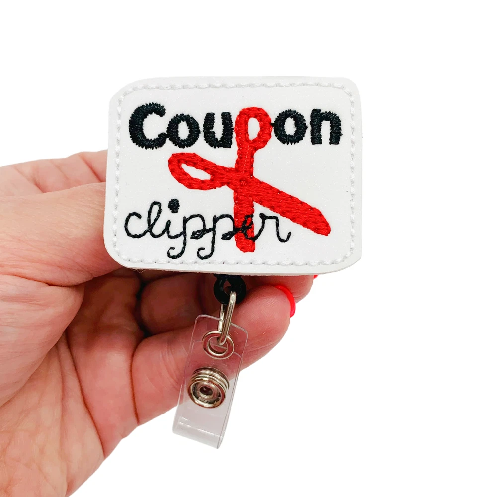 This cute badge reel is the perfect accessory for you work ID. The 2" x 1.5" design is embroidered on high quality sparkle vinyl and permanently attached to a retractable badge reel. You choose the clip style that works perfectly for you. Alligator Swivel Clip- Features a rotating spring clip that allows for smooth pulling in any direction. Full 360 degree rotation. Retractable 34" nylon cord. Clear strap for your ID. Belt Clip- Easily slides onto your belt or pocket for quick and convenient access to your badges at any time. Retractable 34" nylon cord. Clear strap for your ID. Stationary clip that does not rotate. Lanyard with Badge Reel- The convenience of a retractable badge reel with the functionality of a lanyard, all in one. The lanyard is comfortable to wear and has a soft spongy feel. 36" total circumference, hangs center chest. Retractable 34" nylon cord. Clear strap for your ID. Carabiner- Securely latches to belt loop. 36" retractable nylon cord. No twist design keeps your badge facing forward at all times. Clear strap for your ID. No matter which option you choose, you can't go wrong with these stylish badge reels. Decorated badge reels are a fun way to brighten your work day! Each badge reel is made to order with great attention to detail.