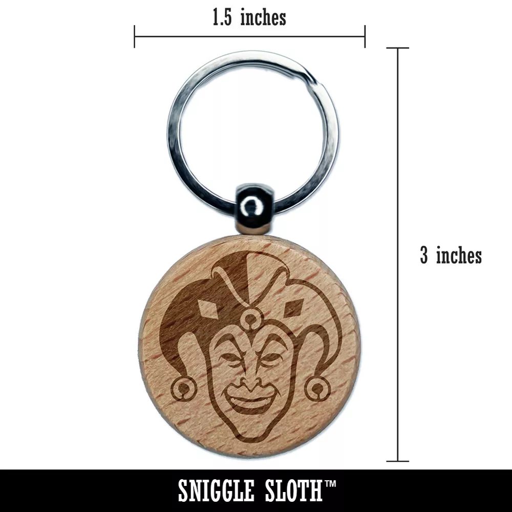 Court Jester Joker Harlequin Engraved Wood Round Keychain Tag Charm