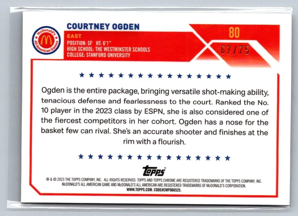Courtney Ogden 2023 Topps Cromo McDonalds REFRACTOR DIAMANTE AMARILLO Novato/75