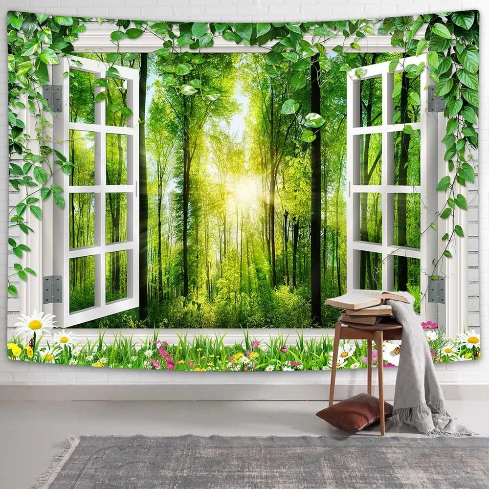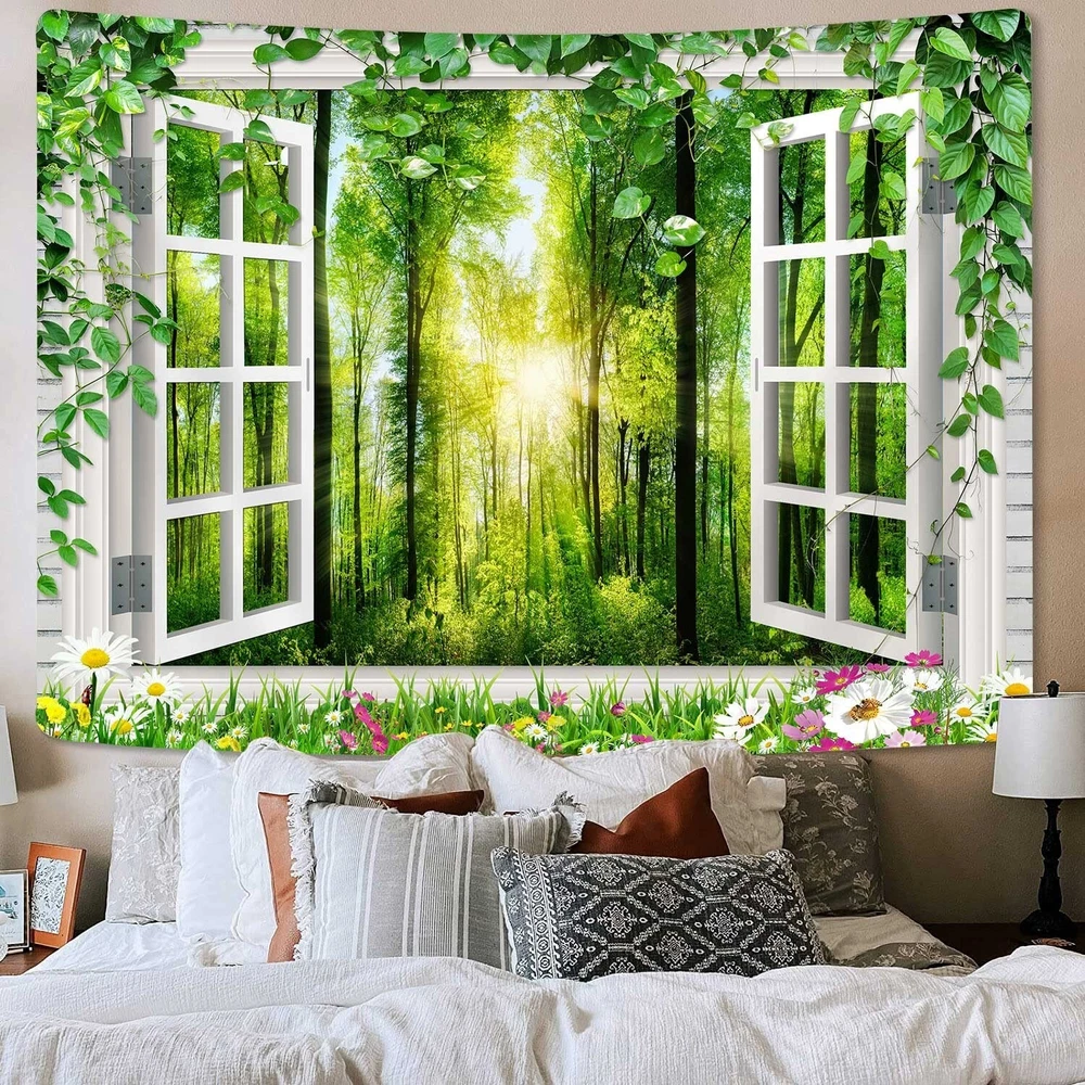 Coveimes Sunshine Forest Tapestry Wall Hanging, Nature Green Forest Trees Floral Bloom Spring Woodland Grasses Window Scenery Tapestries, Virgin Forest Wall Tapestry Decor for Living Room Bedroom Product Details Product Dimensions: 60 x 40 x 0.2 inches Item Weight: 6.1 ounces Manufacturer: Coveimes Date First Available: March 8, 2023 Tapestry Size - 60 x 40 inches with 8 seamless nail. This wall art size is suitable for most bedrooms living room or dormitories Fabric Material - 100% polyester fabric soft, sagging good, suitable for hanging on the Wall. This conventional piece of art will make a complete makeover of your wall or room or bed High Quality HD Print -This colorful tapestry uses digital printing technology to ensure that the pattern is highly clear without worrying about fading. Bright colors, clear lines make your room look new, no color difference Multifunctional - It's not just a Wall Hanging, it can also be used as Bed Cover, Table Cloth, Bedspread, Curtain, Beach Throw, Beach Wrap-around, etc. Bring home a lot of aesthetic effects from multiple usage. As a gift for your friends and family Money Back or Replacement Guarantee - Please do not hesitate to contact us if you have any questions. We will respond to all your e-mails within 24 hours with friendly customer service Thank you for choosing Coveimes tapestry! This boho decor tapestry with clear pattern design will let your room go for a dramatic makeover as wall art and home decor during all years. This dorm decor tapestry will make a complete makeover of your wall or ceiling or your bed or home decoration for another space. provide you with a colorful living environment, which will help transform your room into your private paradise. It is also a good choice as a gift for relatives and friends during the holiday season. Features This tapestry had printing with a beautiful picture and vivid colors and clear pattern design soft and comfortable, skin-friendly and safe. quality durable material, easy hanging and storage, no fading, no strange odor, toxic free and safe, can be cleaned and reused many times. Package Include 1 x Tapestry 8 x Nails Tips Hand wash or machine wash under a gentle cycle. Please use mild detergent with cold water. Do not scrub it hard and prevent sharp things and insolation. Wrinkles caused by folding can be removed by washing or steam ironing. Due to the difference between the display and the light, please allow a slight color deviation